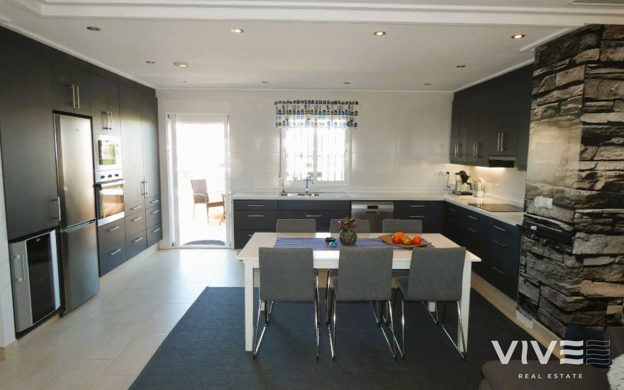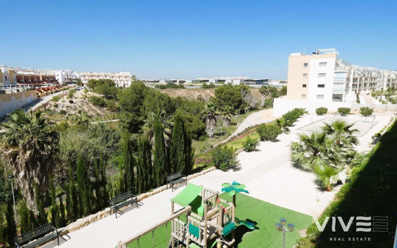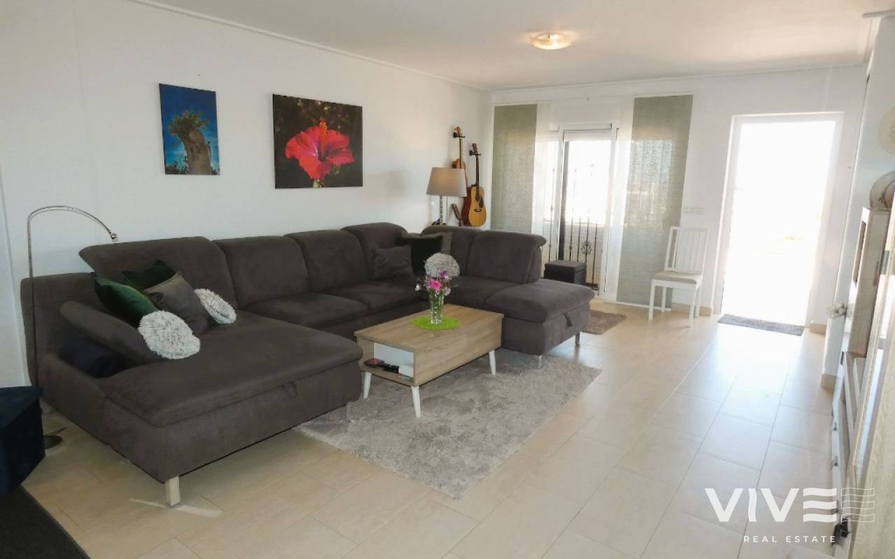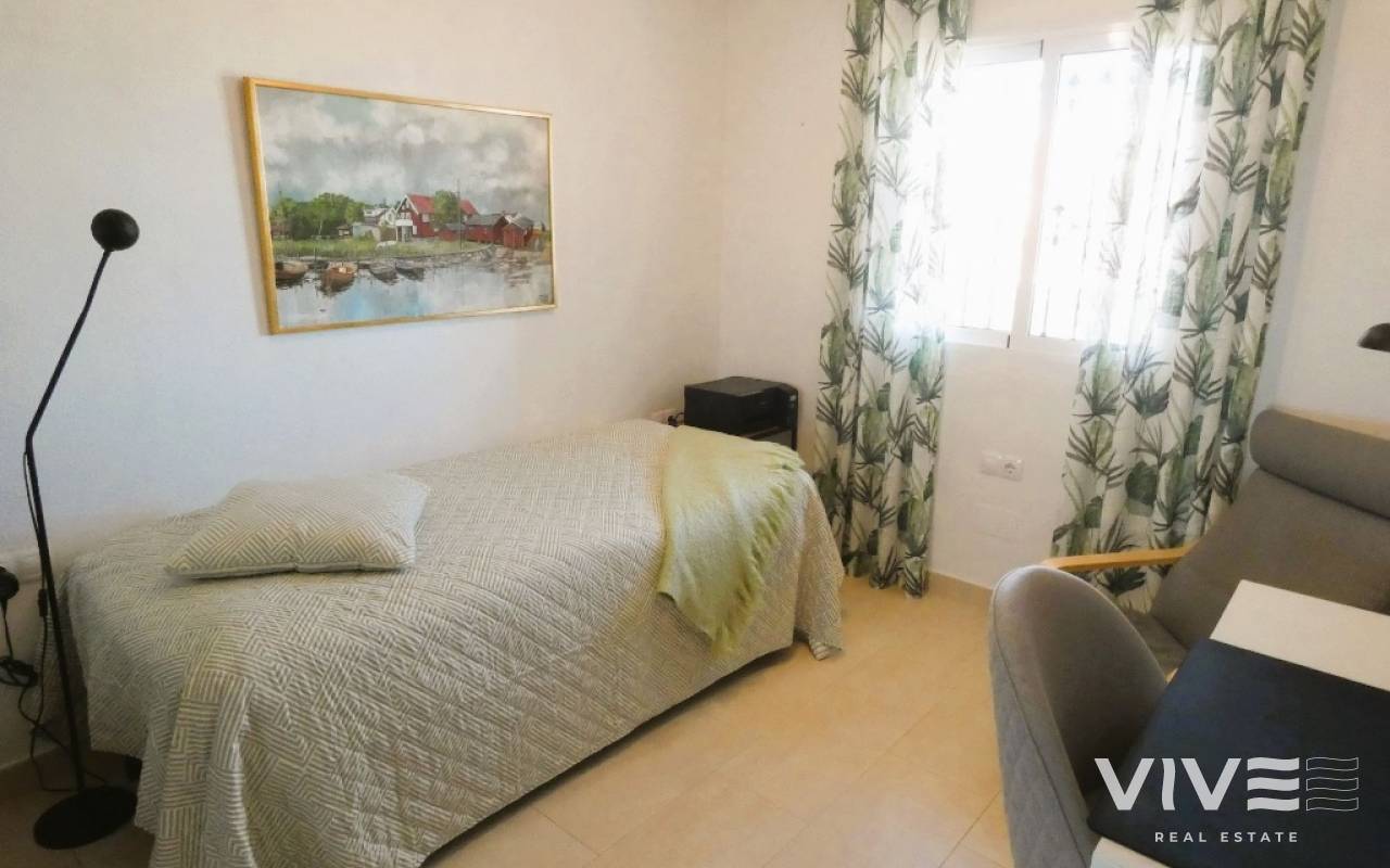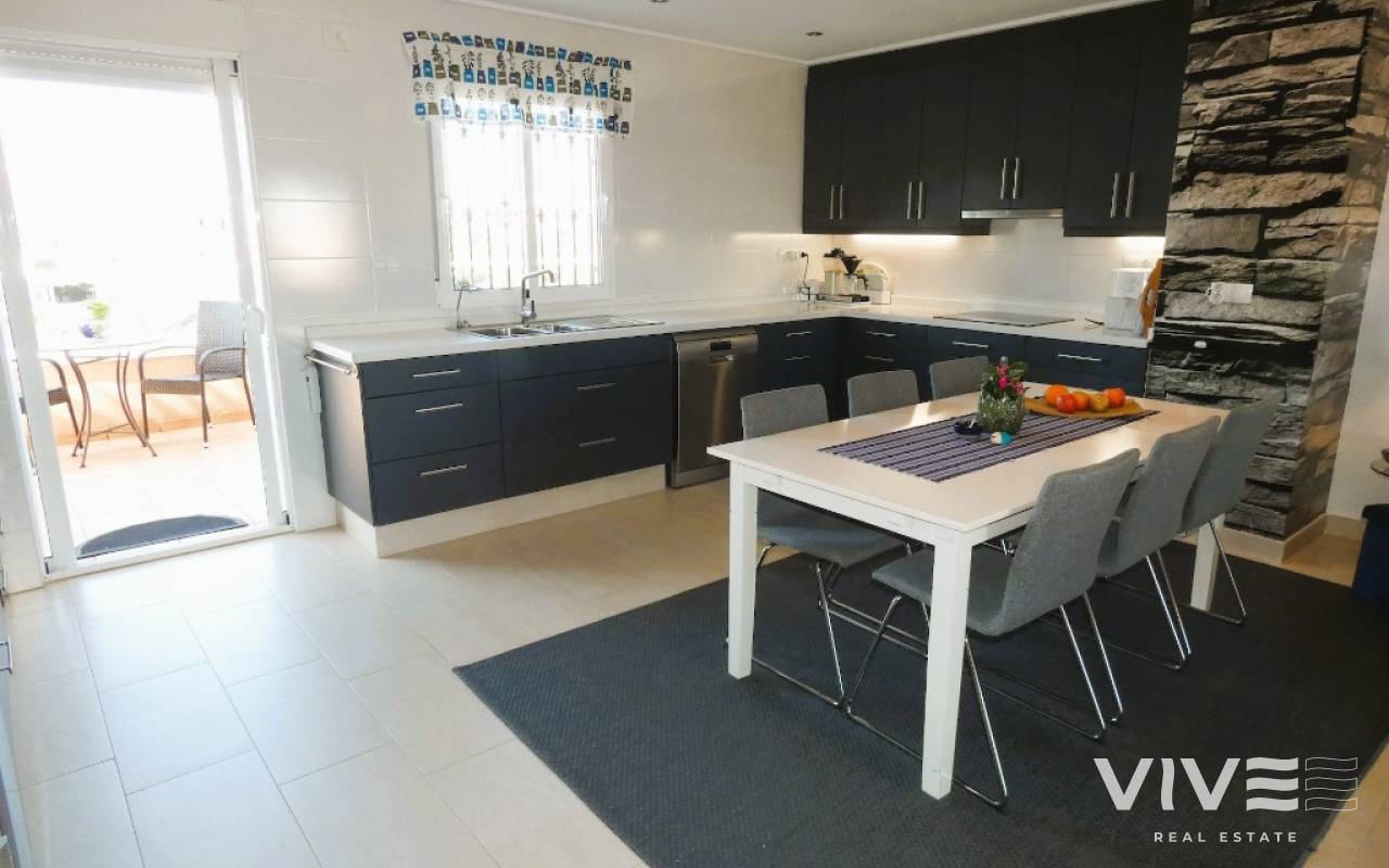 Lovely apartment with 3 bedrooms, 2 bathrooms and a roof terrace with a sea view!We are pleased to present this beautiful ground floor apartment located in the popular area Los Dolses. The apartment has 3 bedrooms with built-in wardrobes, 2 stylish bathrooms, bright and airy living room with open kitchen, terrace outside the living room and a large terrace of 30 m2 . The apartment is sold with furniture, appliances and air conditioning included in the price. The apartment is generally well equipped and maintains a high standard,. You have private parking in the underground garage facility and heated pool.The common area has large green areas, two swimming pools and a jacuzzi. Los Dolses is approximately 45 minutes' drive from Alicante airport. You have approximately 5 minutes to walk to a row good restaurants and cafes. There is also a grocery store just minutes away from the apartment. If you want a trip on one of the many beaches in the area, then it takes 5 minutes to drive, or about 15 minutes by bike. The popular the shopping center "Zenia Boulevard" and several 18-hole golf courses are located and only a few minutes' drive from the apartment.