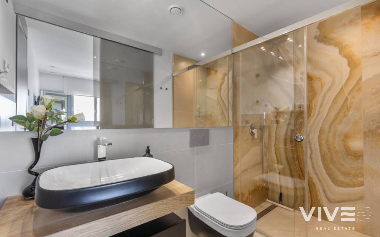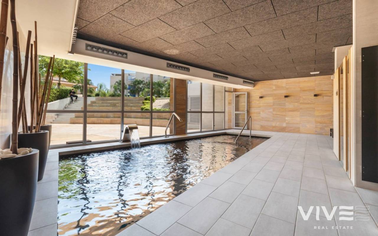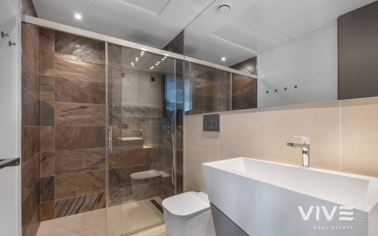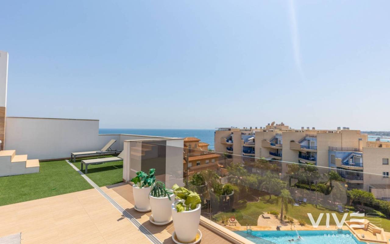 For sale luxury penthouse with panoramic views close to the beach in Bioko DeLUX, Cabo Roig, Orihuela Costa.Opportunities like this are rare — the Bioko Delux penthouses are among the most sought-after homes on the entire Costa Blanca South, and they hardly ever come onto the market. EStyle offers you for sale this spectacular three-bedroom, two-bathroom penthouse, this is the second-closest penthouse in the entire development and the complex itself being second line to the beach. Spacious private roof terrace complete with a jacuzzi, fully equipped outdoor kitchen and from here you have breathtaken panoramic sea views. It is a perfect place for entertaining, relaxing in the sun with family or friends. The Bioko Delux development offers first-class facilities, including:1) A large communal pool2) Indoor spa with heated pool, sauna, and changing rooms3) Gym4) Social areaA private garage space and storage room are also included in the price.