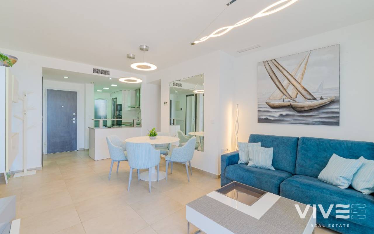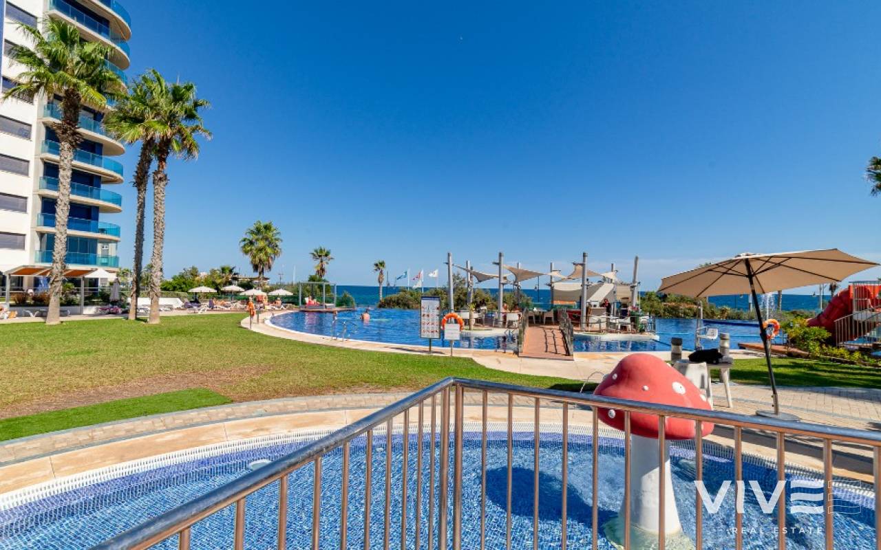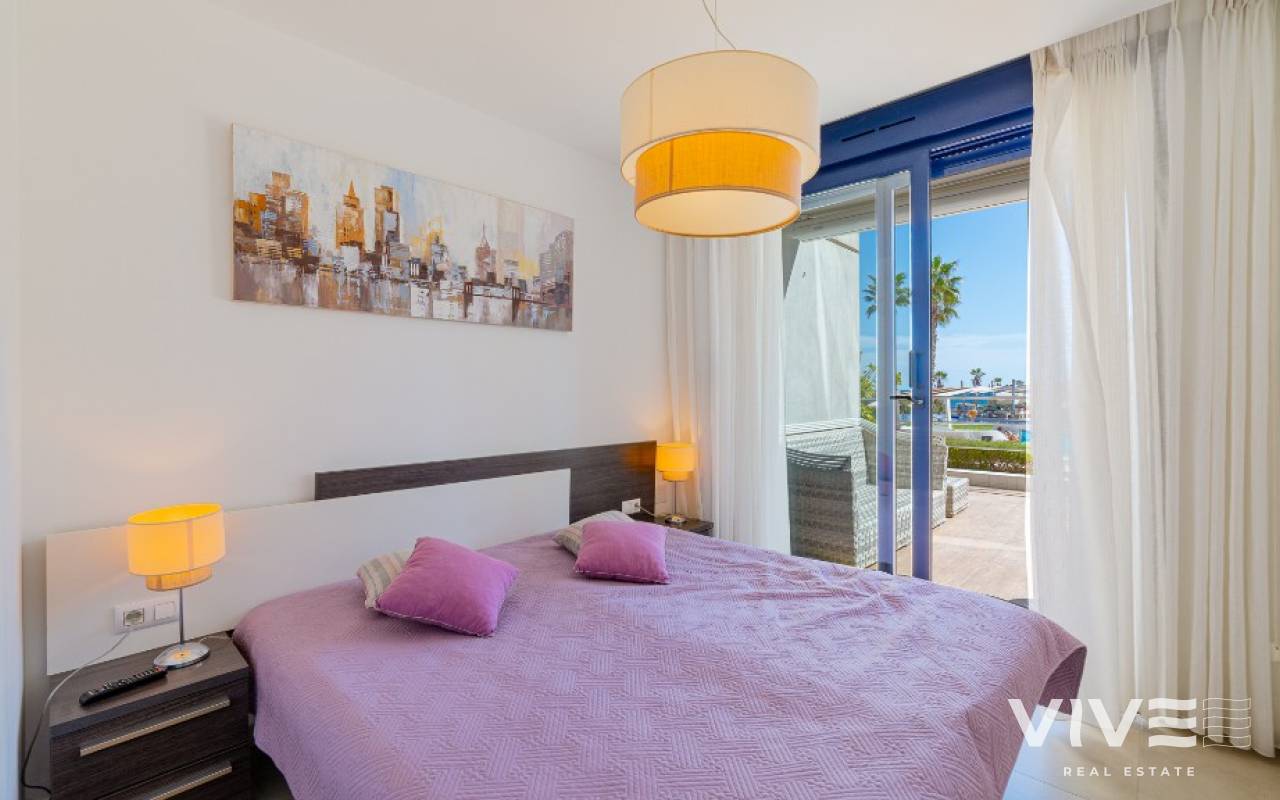 We offer for sale stunning apartments on the first line of the sea with panoramic views of the sea and pools. The apartments are located in a closed elite residential complex Sea Senses with swimming pools, a gym, saunas, sports fields, a children's playground, a bar and a cafe.This new apartment has a spacious terrace with stunning views. The apartment has 2 bedrooms with large beds, 2 bathrooms, spacious living room and open plan kitchen.The Sea Senses complex has a well-groomed protected area with infinity pools. One of the pools is heated, the other has a jacuzzi, water slides and an underwater massage bed. Nearby there is an island-cafe Chill Out with two bars and cafes. The complex is equipped with sports grounds, a gym overlooking the sea, a spa complex with Turkish and Finnish saunas, children's playgrounds with houses and slides, ping pong tables, a wifi zone, and underground parking.Punta Prima is a popular and famous area of the Costa Blanca. Here are the famous restaurants Nautilus and Punta Prima, from the terraces of which you can enjoy breathtaking views of the open sea, sunrises and sunsets. An excellent option for an unforgettable holiday in Spain.