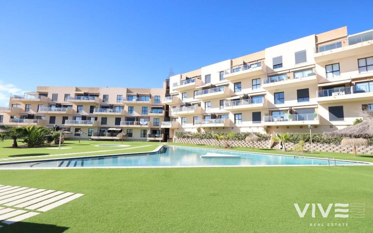 La Zenia, Residencial Sabrina.. 77 m2 south-facing apartment featuring 2 bedrooms (1 en suite), 2 bathrooms, a spacious living-dining room, an open-plan kitchen, and a terrace. The property is sold furnished and with air conditioning. It offers extensive communal areas with a community pool, as well as a storage room and parking. The apartment has a tourist licence and currently generates excellent returns.