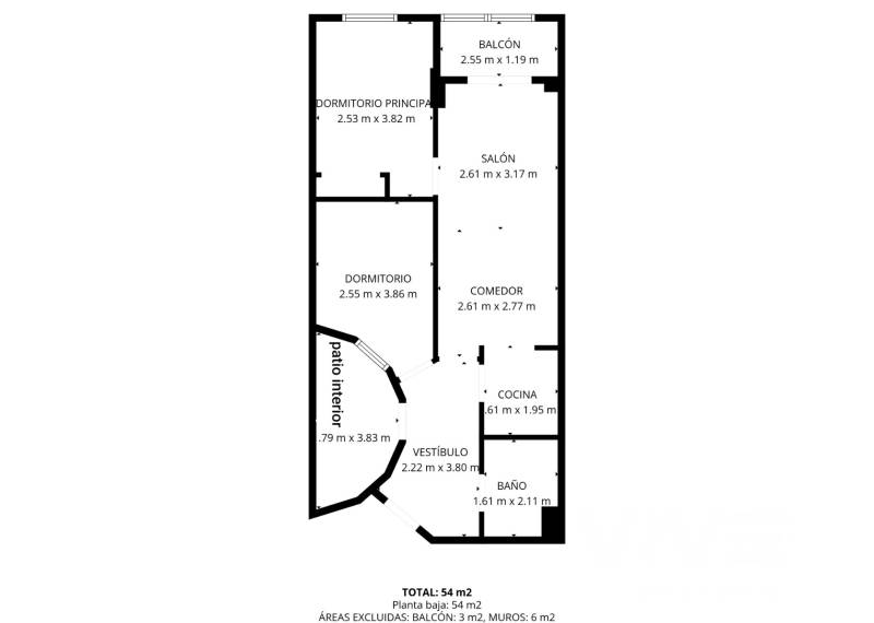 The apartment has a built area of 49.3 m². In addition, it features an interior patio of over 6 m² and a balcony of approximately 3 m², ideal outdoor spaces to enjoy the Mediterranean climate.