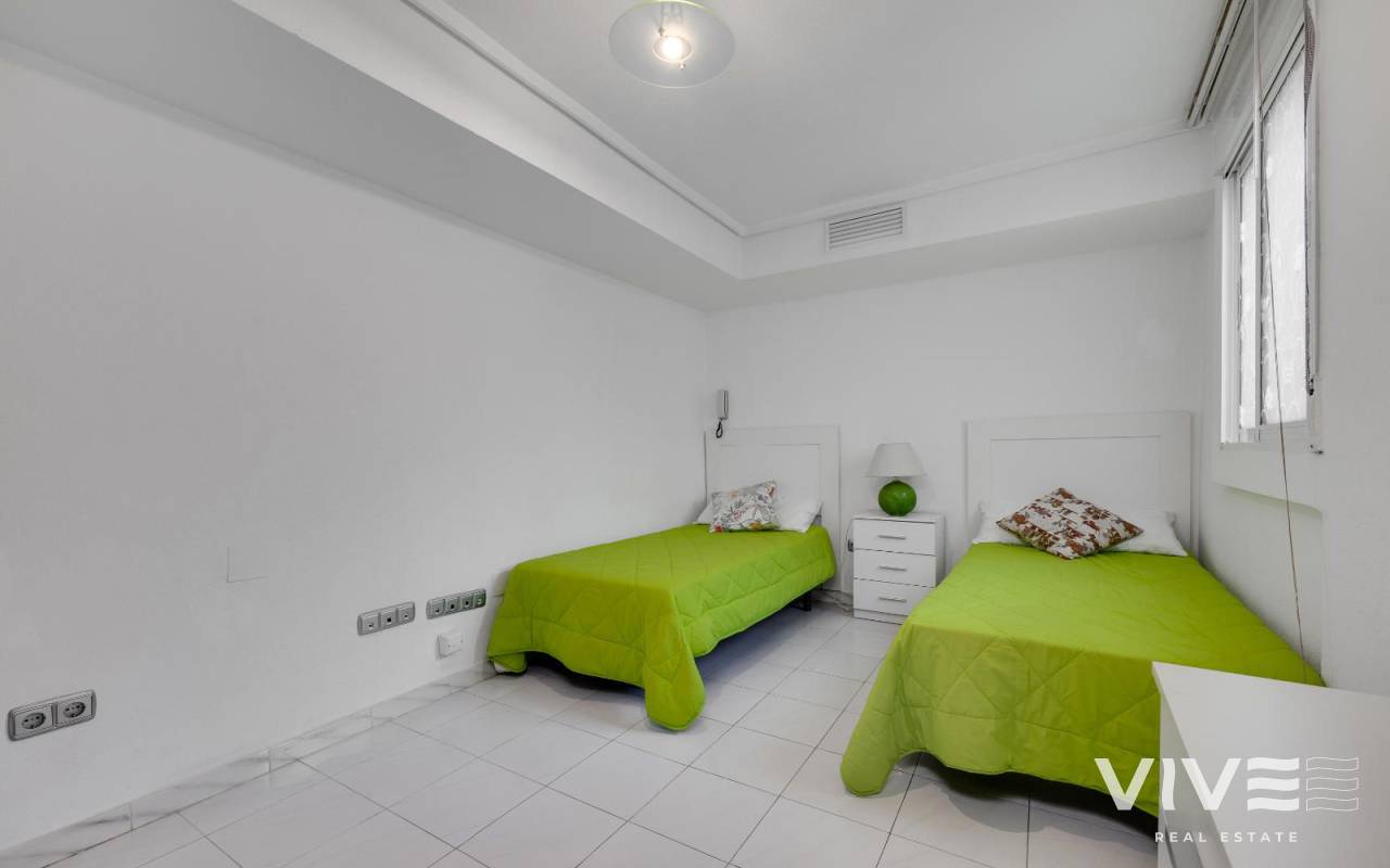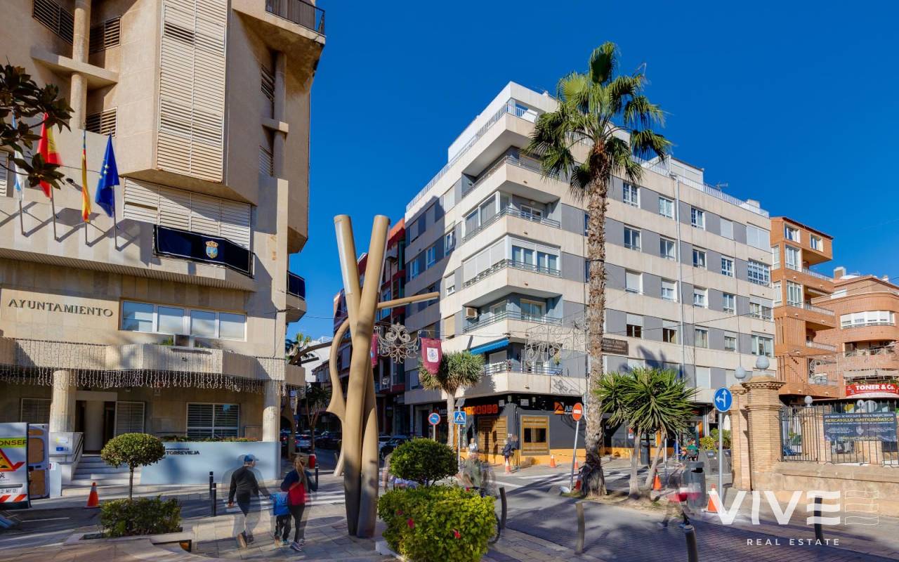 Discover this bright apartment located in one of Torrevieja's most central and sought-after areas, Plaza de la Constitución. Situated on the fifth floor, it offers privacy, abundant natural light, and excellent access to all amenities. With approximately 97 m², the apartment comprises an entrance hall, separate kitchen, living-dining room, two full bathrooms, and two spacious bedrooms, offering comfort and functionality. While there is no terrace (it is integrated into the bedroom), large windows provide open views. Its excellent location, just minutes from the seafront promenade, beaches, supermarkets, restaurants, medical centers, and public transport, makes it an ideal option both as a permanent residence and as an investment, with high demand for year-round and holiday rentals. As an added bonus, a parking space is available in a nearby building. Optional parking space (price separate). A unique opportunity in the heart of Torrevieja.