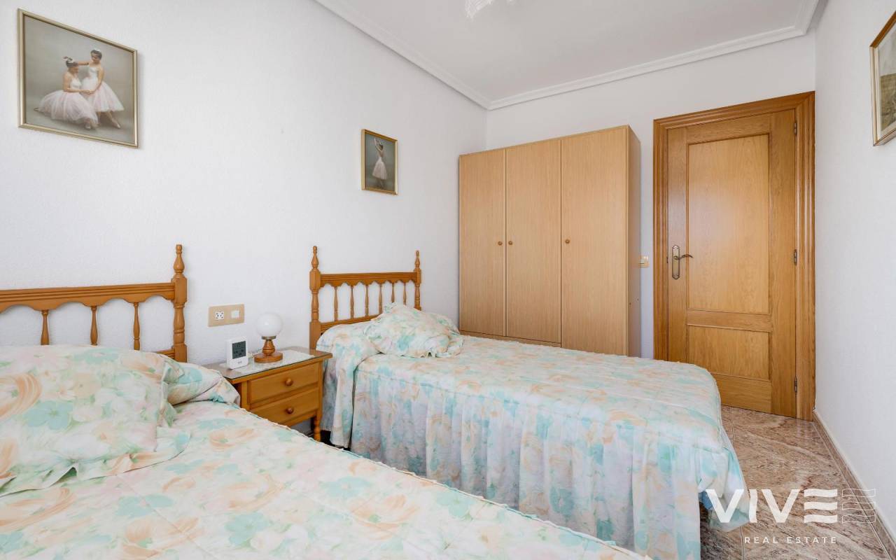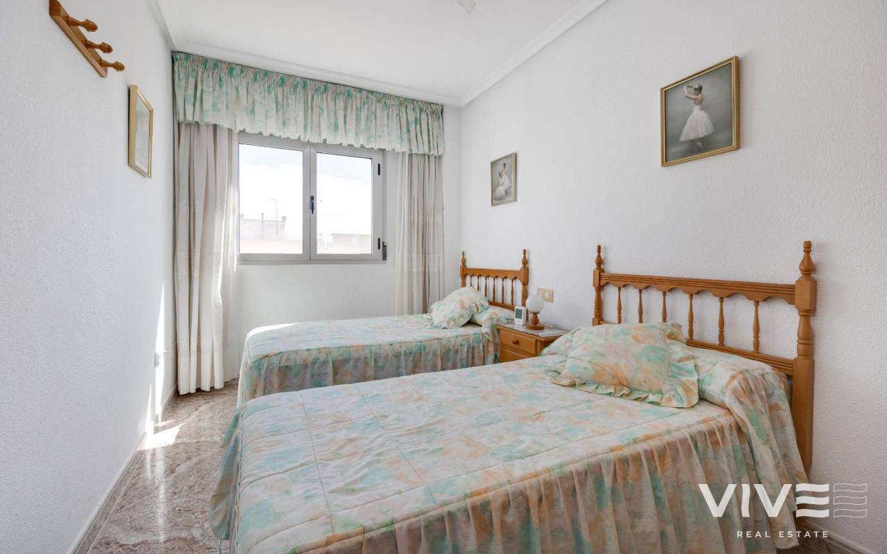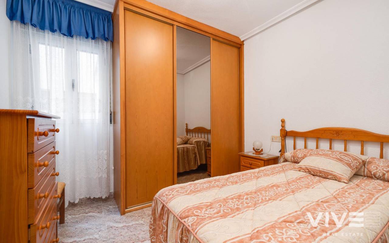 This wonderful apartment for sale is located in the center of Guardamar del Segura, a coastal town well known for its golden sandy beaches and peaceful, welcoming atmosphere. The property enjoys an unbeatable location, just 750 meters from the sea, allowing you to enjoy a pleasant walk to the beach in just a few minutes. It is also surrounded by all essential services, such as supermarkets, shops, restaurants, schools, and medical centers, making this apartment an ideal choice for year-round living or for a relaxing vacation. With a functional and modern layout, the apartment has a total of 4 spacious bedrooms, making it a perfect choice for families. The bedrooms are designed to offer comfort and privacy, and each enjoys excellent light. The two full and well-equipped bathrooms are in perfect condition, with quality finishes that ensure functionality and comfort. Furthermore, the bathrooms have natural ventilation and lighting, creating a fresh and pleasant environment. They are also adapted for people with reduced mobility, ensuring accessibility and comfort for all users. This apartment has air conditioning, allowing you to maintain a comfortable temperature year-round, both in winter and summer. The home also has an alarm system installed for your added security and peace of mind. The building has an elevator, making it easy to access the home regardless of the floor you're on. It also includes a parking space and a storage room, two much-appreciated amenities that ensure you always have extra storage space and convenient parking for your vehicle. The apartment's east-west orientation is another of its strong points, allowing you to take advantage of both morning sunlight and evening sunsets. This, along with the natural ventilation provided by the layout, ensures a fresh and bright environment throughout the day. In short, this apartment is an excellent option for those looking for a spacious and comfortable home in a prime location, close to the sea and surrounded by all the amenities Guardamar del Segura has to offer. Don't miss the opportunity to live in this charming place and enjoy a peaceful and comfortable life just steps from the beach. It also features a security door, custom-made wardrobes, and everything you need to make it your ideal home.