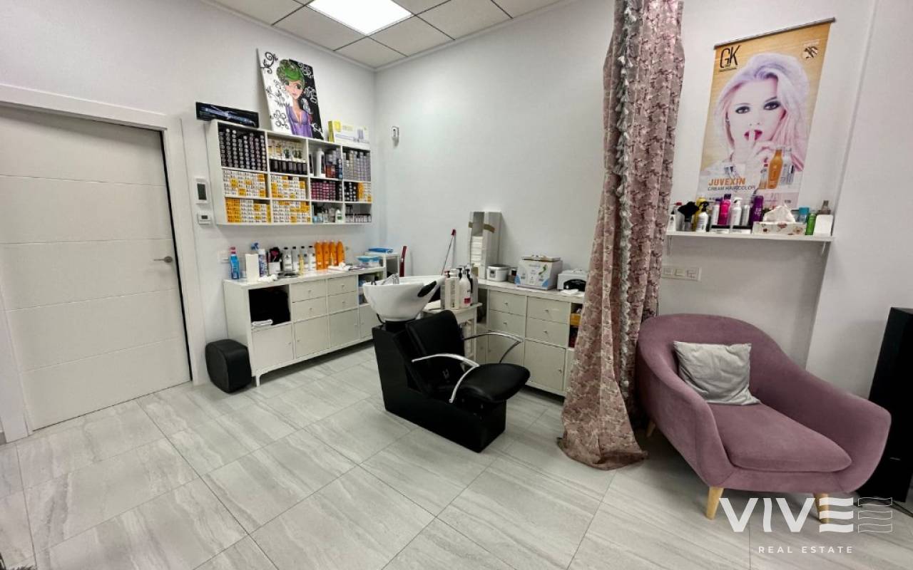 For sale a profitable beauty salon in La Zenia, Costa Blanca, Spain.We offer for sale a fully equipped beauty salon. It consists of 2 offices, a large hall, a staff lounge and an equipped kitchen, the total area of the premises is 100 m2. It is important to note that the client bathroom is adapted for the needs of people with disabilities and the salon itself is located on the ground floor in a very busy area of commercial centers. In other words, there is a huge number of potential clients around, so the business has already built up a base of regular customers and formed a team of professionals in their field.Inside there are 2 hairdressing stations, 2 manicure tables and 2 pedicure tables. There is a large hot water tank of 200 liters and an air conditioning system.If desired, the premises can be converted and used as an office or a cozy cafe. But even without doing business personally, you can earn income from its rental - this is about 3,000 per month, thanks to the excellent location, surrounding infrastructure and earned name.Don't miss your chance to buy a profitable business close to the beach in Spain!