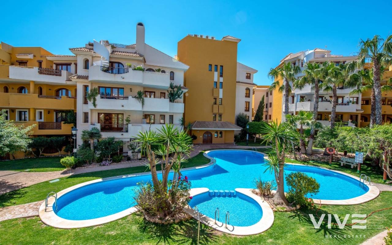 Superb apartment for sale in gated urbanization Panorama Park with the sea views. Property offers: 2 bedrooms, 2 bathrooms, huge living room, equipped kitchen, large terrace with that open to the beautiful views of the area and the sea. The property is located in the luxury area of Punta Prima. Gated community Panorama Park with beautiful communal pool and green areas, also only 300m away from the beach. Punta Prima is a typical Spanish seaside tourist resort, located on the southern Costa Blanca and less than 30 minutes from two international airports, Murcia and Alicante. The beaches, which are some of the cleanest around and have been awarded Blue Flag status, are complemented by a wonderful promenade with shops, boutiques, bars and restaurants. Punta Prima has a Mediterranean climate with 320 days of sunshine a year.