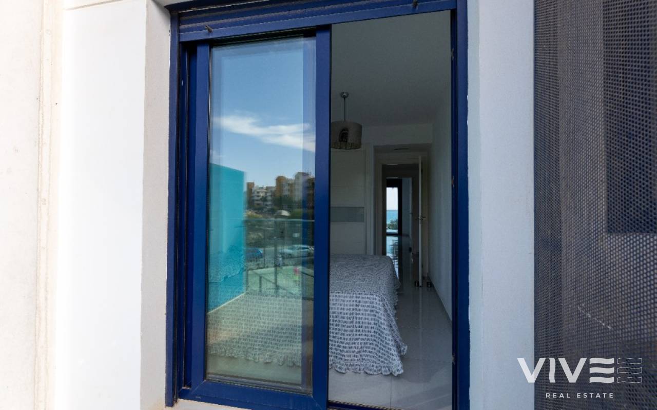 For sale apartment on the beachfront in a gated luxury community "Sea Senses", Punta Prima. We offer you for sale this beautiful apartment situated in the best frontline community in Punta Prima - in "Sea Senses". On the first spacious terrace you can enjoy panoramic sea views and the communal areas, and from the second one surrounding beauty. Apartment consists of 2 bedrooms, 2 bathrooms, living room, fully equipped kitchen with breakfast bar and utility room. The residential complex ¨Sea Senses¨ has landscaped area with infinity pool. One of the pools is heated, the other - with a Jacuzzi, water slides and a water massage bed. There is a cafe and two bars. The complex is equipped with sports facilities: paddle court and a basketball playground, gym overlooking the sea, spa with Turkish and Finish Saunas, children's playground with a toy house, ping pong, zone with free wifi, as well as underground parking. In walking distance there are restaurants, shopping centers, bus stop, supermarket, bank offices of Punta Prima. Also within 10-minute drive you will find several golf courses, water park, clubs and discos, go-karting, sports centers, yacht port and a variety of stunning sandy beaches of Costa Blanca.