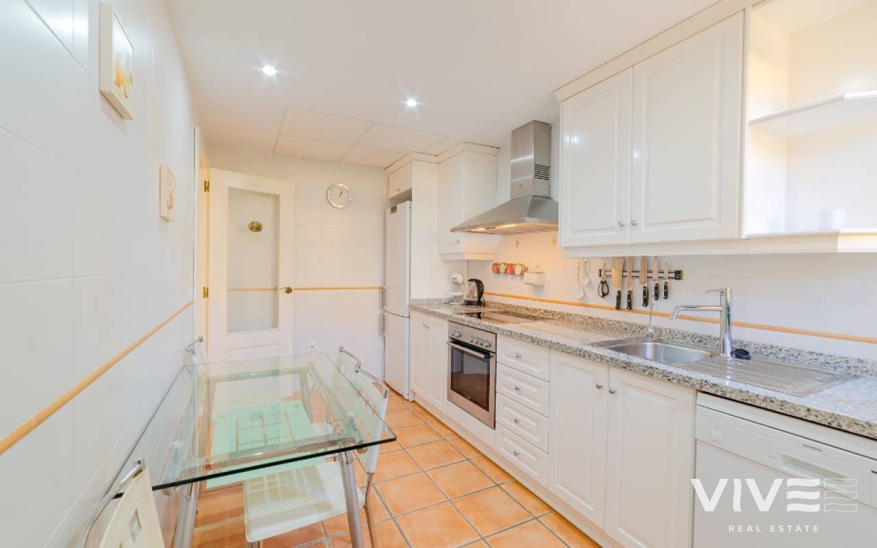 For sale 3 bedroom townhouse in Finestrat, Benidorm, For sale townhouse located in the gated community in Finestrat area Alicante. This property is a perfect retreat for those seeking comfort and tranquility, combined with a vibrant lifestyle. The house has built area of 150 m² and features 3 bedrooms and 2 bathrooms and one service bathroom on the ground floor. The property includes a separate kitchen, ideal for cooking enthusiasts. The living room opens onto a 50 m² terrace with the private gate to the community area , perfect for enjoying the sun while taking in the beautiful landscape of the area. The bungalow is equipped with air conditioning (cool/heat) and heating. The house includes features such as double glazing and a security door, ensuring the peace of mind and well-being of its residents. Furnished and ready to move in, this bungalow also includes amenities such as satellite, internet, and laundry room, which facilitate everyday living. The outdoor shower and jacuzzi are special touches that enhance the experience of enjoying your new home.