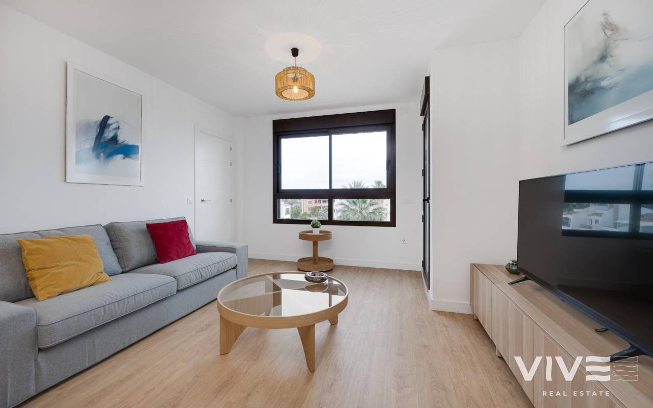 Brand-New Penthouse with Private Solarium in Villamartín – PAU 8~Enjoy comfort and modern living in this stunning newly built penthouse, located in the sought-after area of Villamartín – PAU 8, Orihuela Costa. Situated on the third floor with elevator access, this property stands out for its excellent orientation and abundant natural light throughout the day.~~Key Features:~80 m2 built area~~2 bedrooms and 2 full bathrooms~~Spacious and bright living-dining room~~Fully equipped kitchen with appliances~~Terrace and private solarium with all-day sun~~Pre-installed air conditioning and barbecue area~~Underground parking space and storage room included~~This exclusive residential complex features a communal swimming pool, landscaped gardens, and all the amenities to fully enjoy the Mediterranean lifestyle. Perfect as a permanent residence or a holiday home.~~