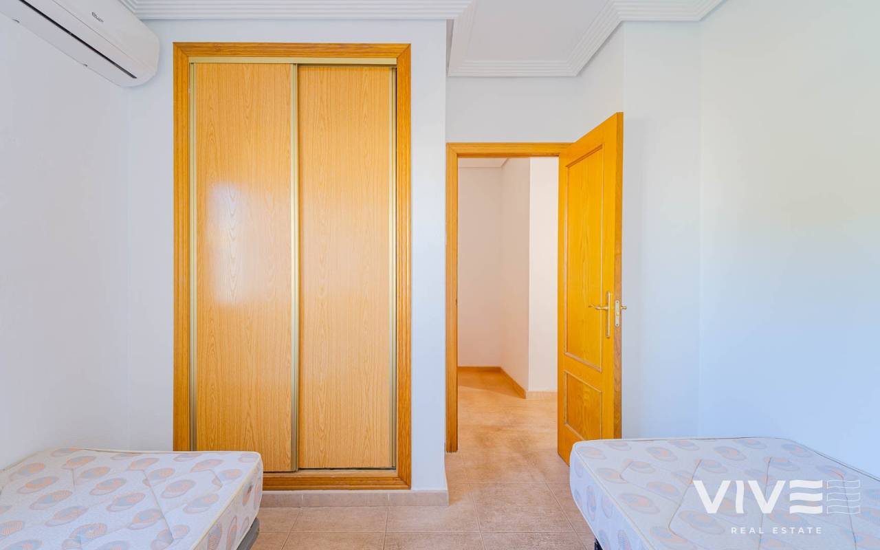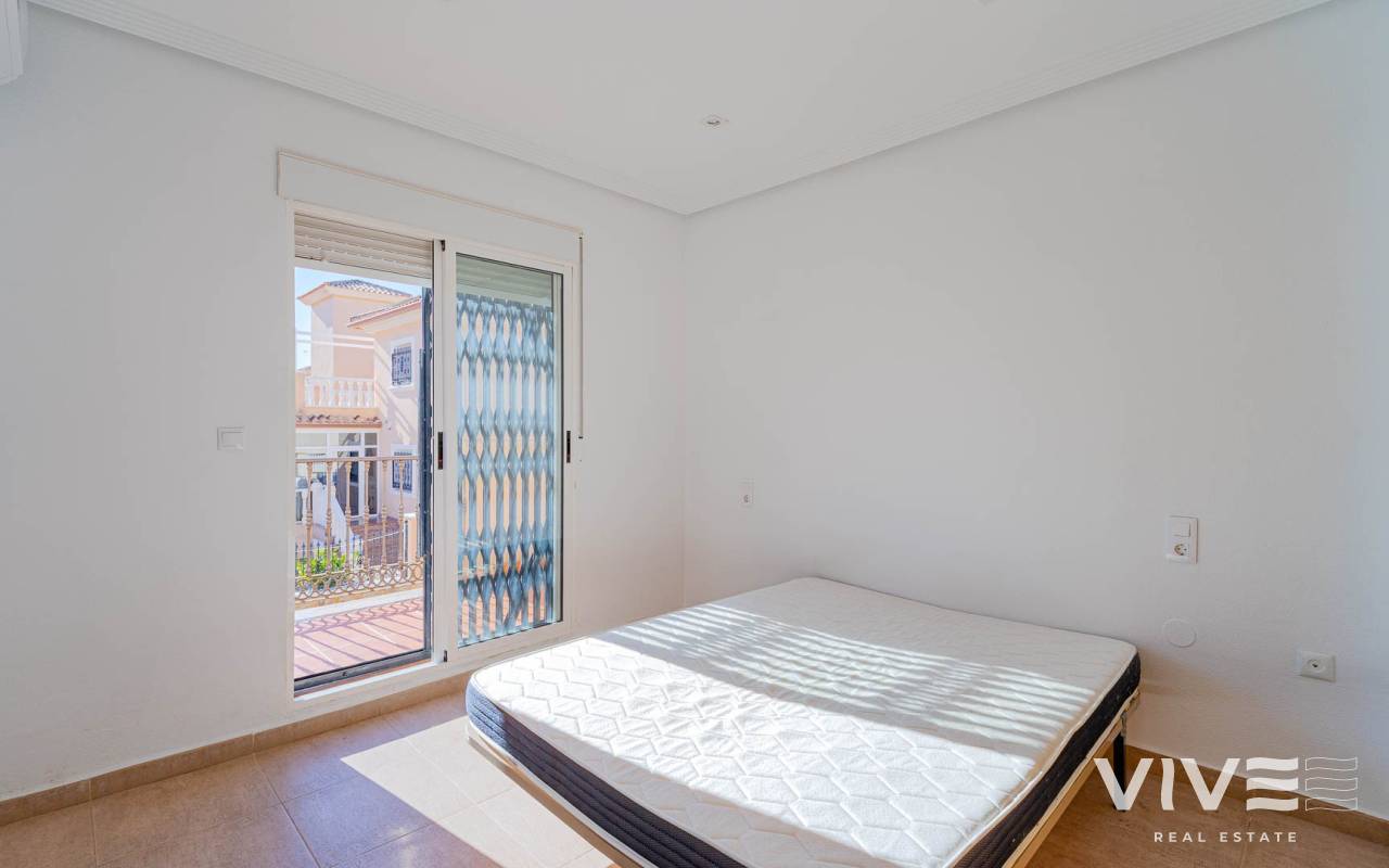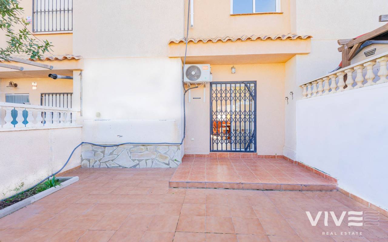 A charming townhouse for sale in Los Altos, located in the prestigious gated residential complex Royal Park on the Costa Blanca. This property is ideal for permanent living, holiday use, or rental investment thanks to its excellent location and well-developed local infrastructure. The townhouse features two spacious bedrooms, one full bathroom, and a guest toilet, as well as two patios and two terraces, allowing you to enjoy the Mediterranean climate all year round. The terrace and solarium offer sea views, making this home especially attractive for those seeking a coastal lifestyle. The ground floor offers a bright living room with direct access to the second patio — a perfect space for outdoor dining and relaxation. The open-plan kitchen is complemented by a practical utility room, while the guest toilet adds extra convenience for residents and visitors. Upstairs, there are two bedrooms and a bathroom, with one bedroom benefiting from its own private terrace. The residential complex boasts beautifully maintained communal areas and a shared swimming pool, ideal for cooling off during the warmer months. Los Altos is known for its comfort and accessibility: supermarkets, shopping centres, banks, medical clinics, and public transport stops are all within walking distance. The Blue Flag beaches of Punta Prima are just 5–7 minutes away by car. With more than 320 sunny days per year, this townhouse represents an excellent opportunity to enjoy a high quality of life on the southern coast of Spain.
