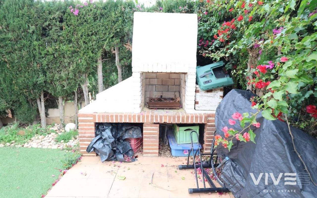 Bright bungalow on the top floor, ideal for enjoying peace and quiet and spacious outdoor areas.. . . . Bedrooms: 3 spacious bedrooms with security bars.. . Private outdoor area:. . Large private swimming pool, fully fenced for added security.. . Sunbathing area with artificial grass and sun loungers.. . Built-in barbecue area.. . Large dining terrace with outdoor shower and garden furniture.. . Extras: Separate access via external staircase, outdoor laundry/storage area and landscaped grounds with palm trees.. . Ideal for those seeking independence and a large private leisure area.