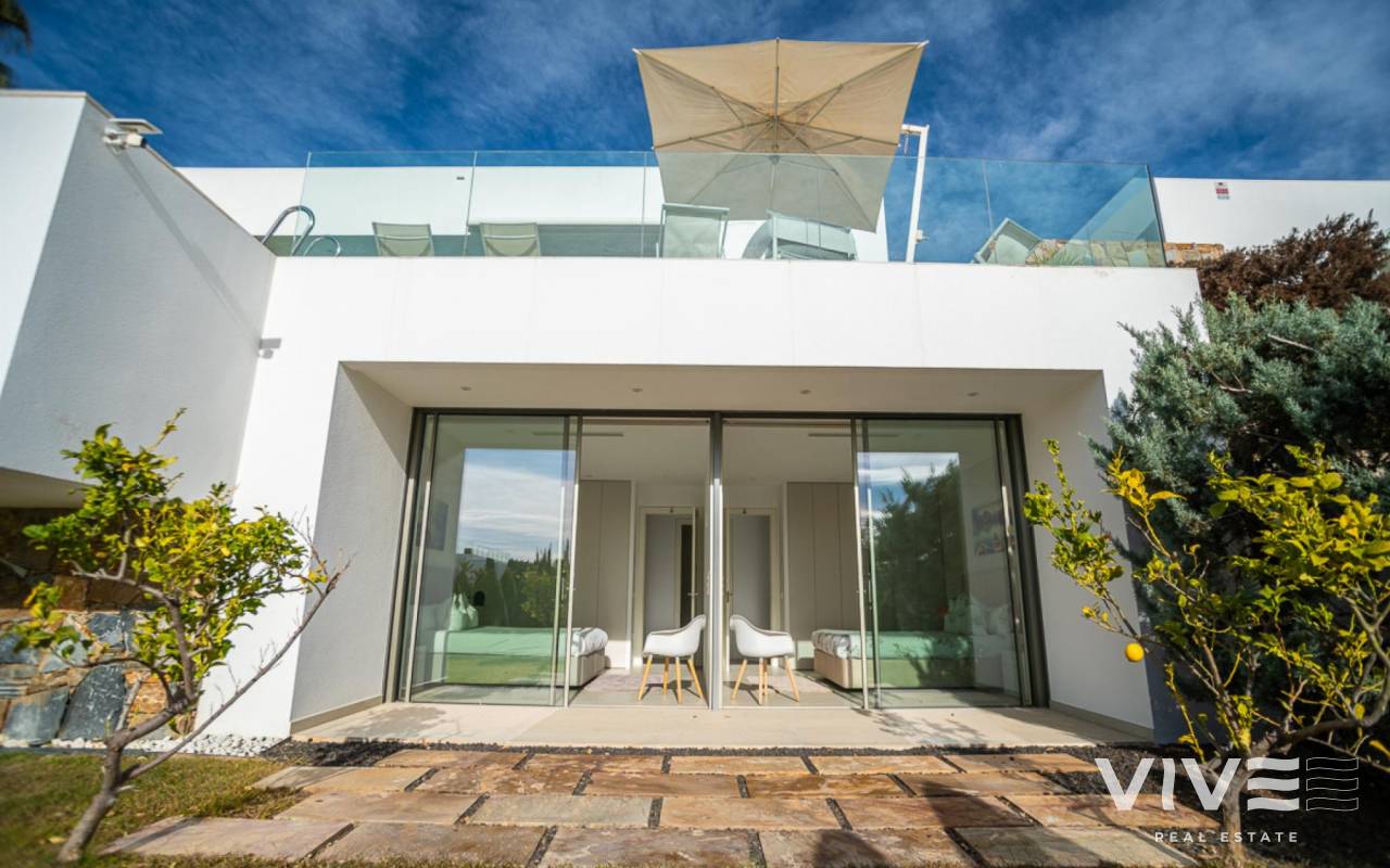 Exclusive luxury villa located in the prestigious Las Colinas Golf Country Club, a private resort surrounded by 330 hectares of natural landscape, just 70 km south of Alicante and close to Campoamor and San Miguel de Salinas. This exceptional enclave offers a premium lifestyle with a championship golf course, private beach club, communal swimming pools, sports facilities, gym, nature trails, a select gastronomic offer, and 24/7 security.Main features of the propertyVilla with 250 m² of built area on a 700 m² plot, featuring 3 bedrooms and 2 bathrooms, private swimming pool, jacuzzi, solarium, private garden, barbecue area, basement, storage room, and independent laundry room. The property includes underfloor heating, air conditioning, home automation system, solar panels, alarm system, interior and exterior lighting, high-end appliances, and a rental license.If you are looking for a luxury residence in an exclusive environment with top-level services, maximum security, and impeccable architectural design, this is your opportunity.Contact us for more information and to schedule a viewing!