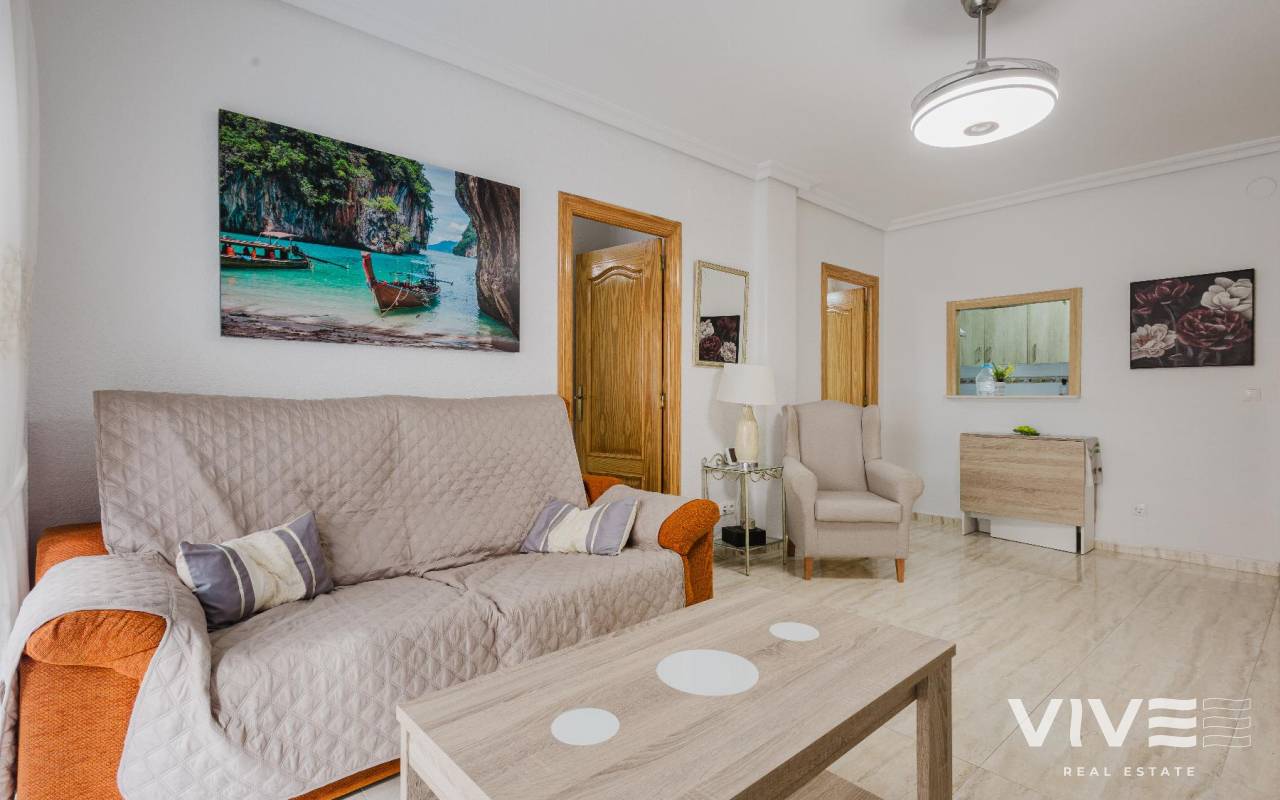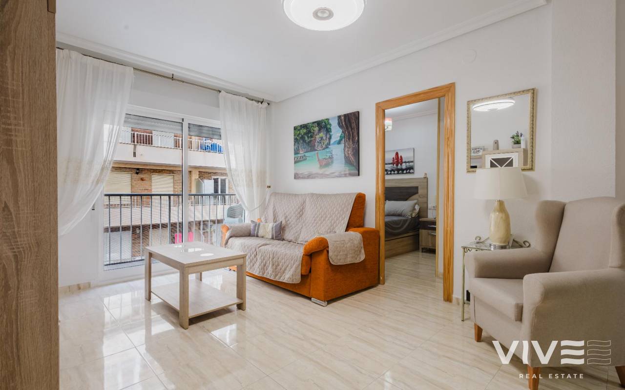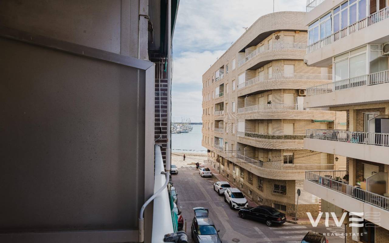 Living by the sea is a lifestyle choice, and this apartment on the in Torrevieja offers exactly that natural light, comfort, and a prime location. An ideal property as a permanent residence, holiday home, or a solid investment on the Costa Blanca.The property offers 70 m² of built area, is in good condition, and was built in 1982. Thanks to its south-facing orientation, the apartment enjoys excellent natural light throughout the day, creating a warm and welcoming atmosphere. The sea views add significant value and enhance both lifestyle and long-term appeal.Main property features70 m² apartment2 bedrooms1 full bathroomIndependent kitchen7 m² terraceSolariumSouth-facing orientationSea viewsSold furnished and with appliancesLocated within walking distance of supermarkets, bars, restaurants, pharmacies, and shopping centres, with all essential services nearby. The airport is approximately 45 km away, ensuring easy national and international connections.Price €159,990.IBI anual de 209 €comunidad de 79,03 € trimestralesContact us today and schedule your visit. Your seaside lifestyle starts here.