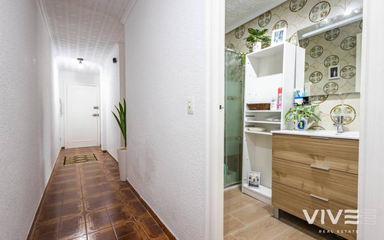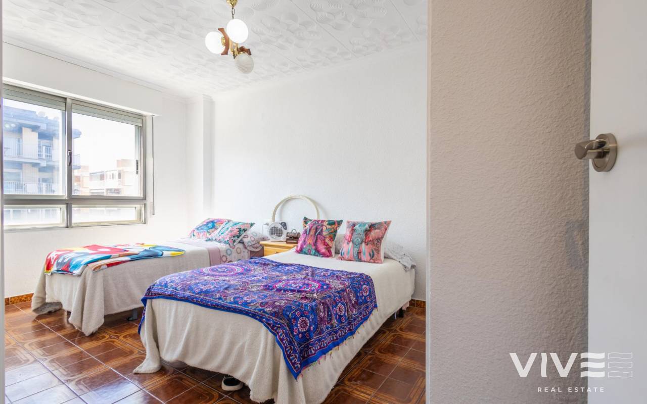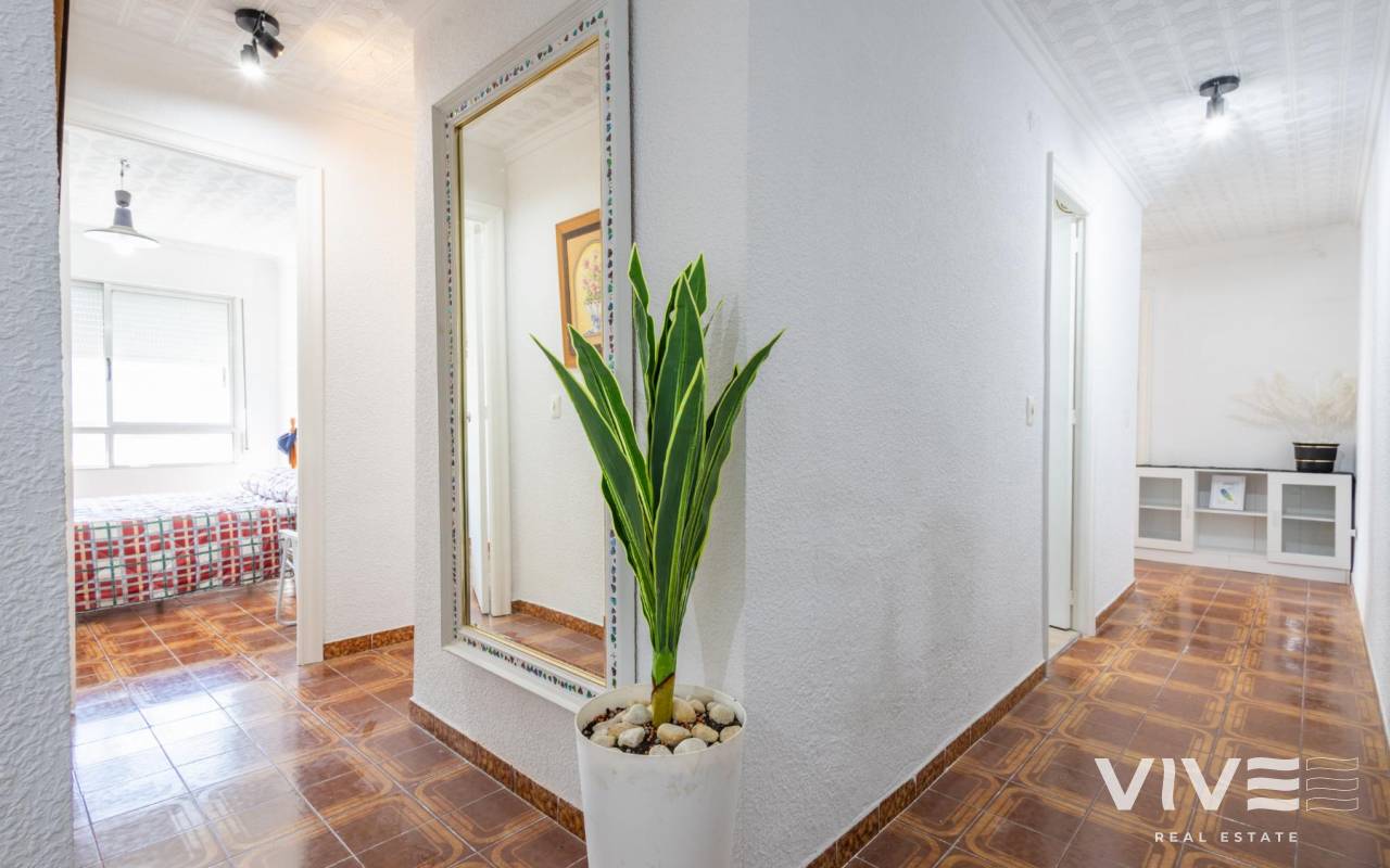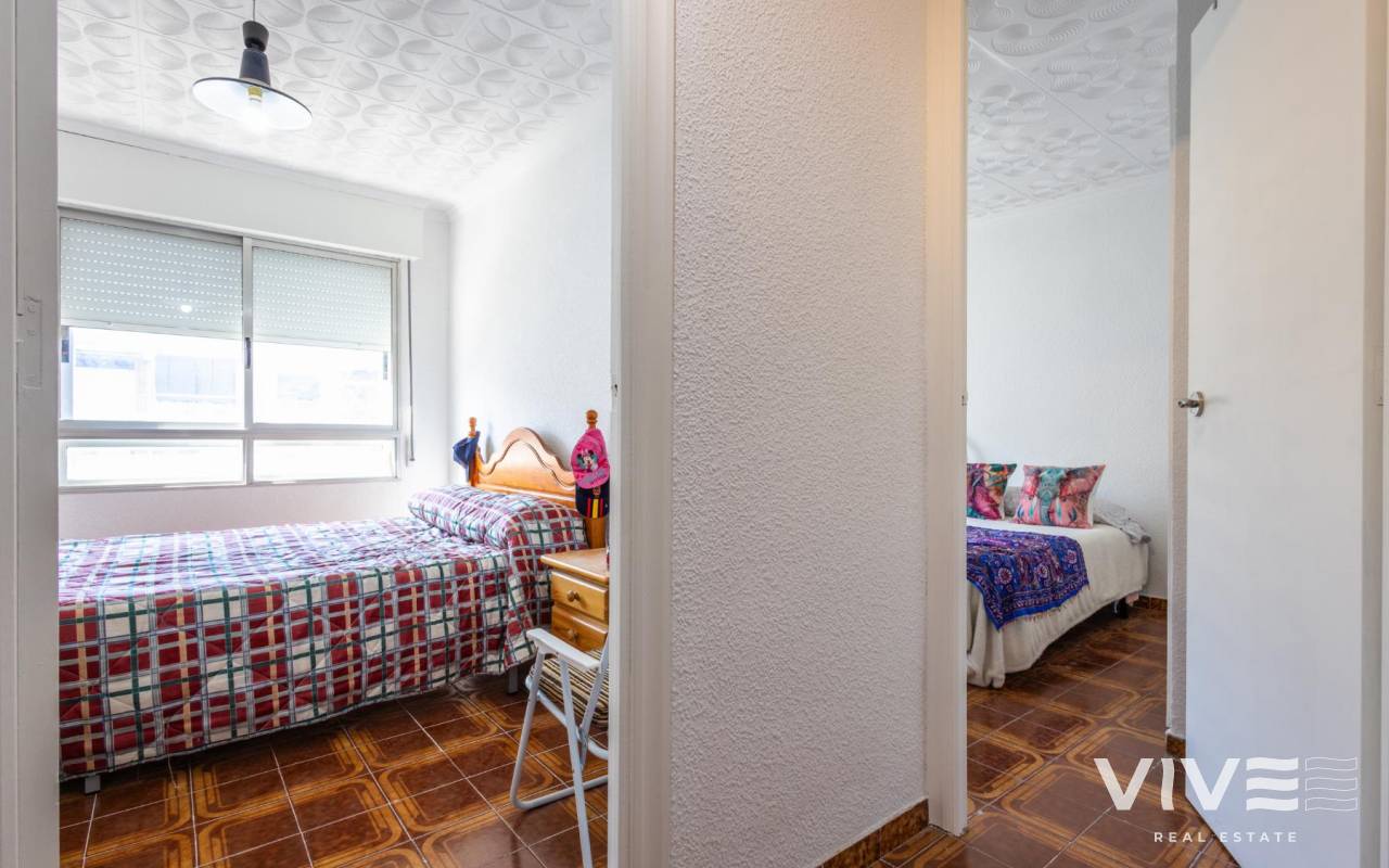 Your Home in Paradise! Renovated Apartment Just 50m from the Sea in TorreviejaA unique opportunity to enjoy Mediterranean living in one of the most sought-after areas of Torrevieja. This fully renovated property is located just 50 meters from Acequión Beach and 200 meters from Los Náufragos Beach, awarded the Blue Flag for the quality of its waters and services. An ideal setting for those seeking peace, comfort, and proximity to the sea.The property stands out for its spaciousness, brightness, and high-quality renovation, designed to provide comfort all year round. Its layout allows excellent natural light and optimal ventilation, creating functional and pleasant living spaces.Main features of the property 105 m² built area 2 spacious bedrooms 1 modern and functional bathroom Bright and spacious living-dining room Fully equipped independent kitchen 12 m² terrace with side sea views Air conditioning Climalit double-glazed windows Complete renovation with high-quality materialsLocated in a well-established area, surrounded by supermarkets, restaurants, pharmacies, and all essential services, with excellent road and public transport connections. Alicante International Airport is approximately 45 minutes away.Torrevieja enjoys over 300 days of sunshine per year, fine sandy beaches, and a relaxed lifestyle, close to Orihuela Costa, golf courses, and shopping areas.Ideal as a permanent residence or investment.Price 167.000 €Property tax (IBI) 250 €Community fees 260 € per year