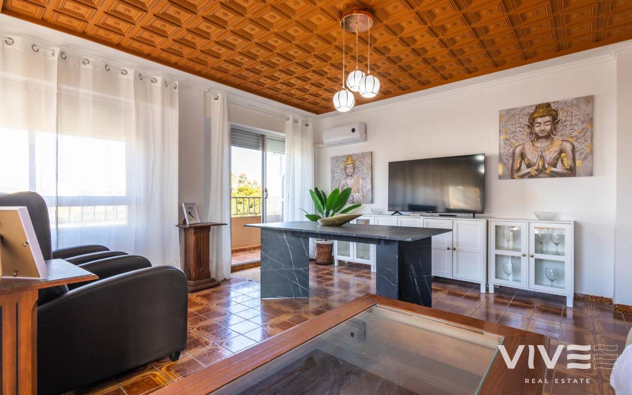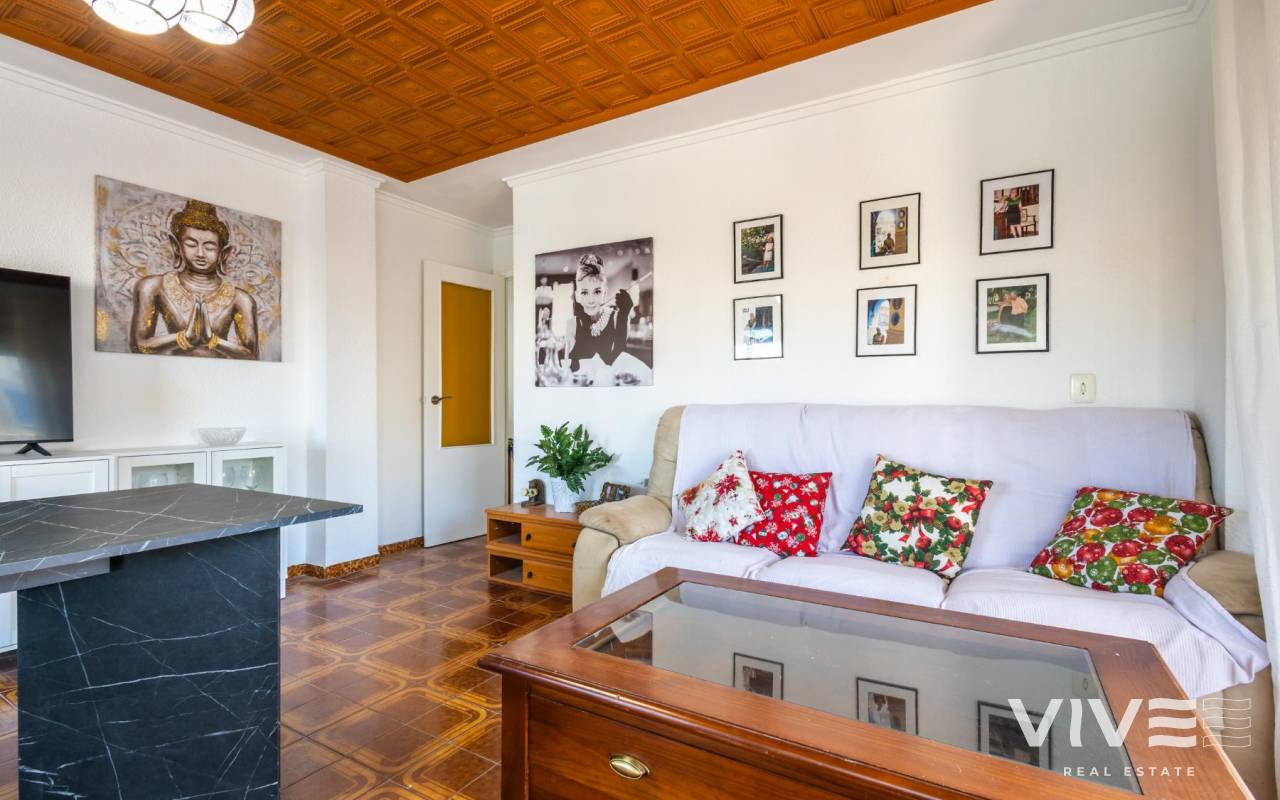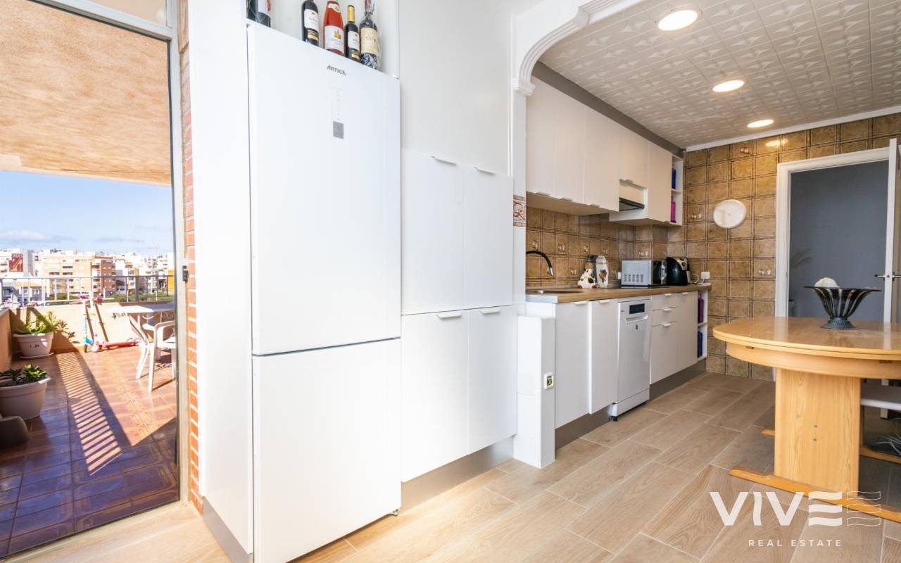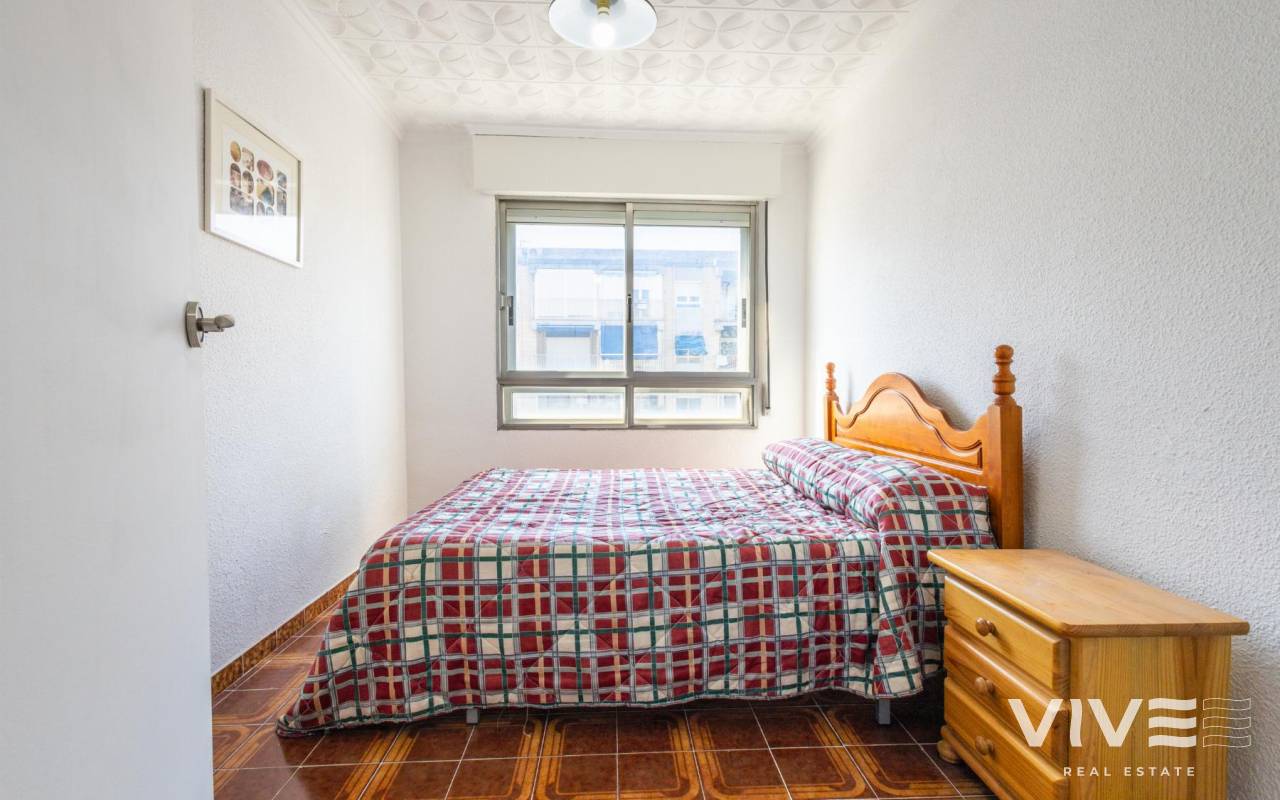 Your Home in Paradise! Renovated Apartment Just 50m from the Sea in TorreviejaA unique opportunity to enjoy Mediterranean living in one of the most sought-after areas of Torrevieja. This fully renovated property is located just 50 meters from Acequión Beach and 200 meters from Los Náufragos Beach, awarded the Blue Flag for the quality of its waters and services. An ideal setting for those seeking peace, comfort, and proximity to the sea.The property stands out for its spaciousness, brightness, and high-quality renovation, designed to provide comfort all year round. Its layout allows excellent natural light and optimal ventilation, creating functional and pleasant living spaces.Main features of the property 105 m² built area 2 spacious bedrooms 1 modern and functional bathroom Bright and spacious living-dining room Fully equipped independent kitchen 12 m² terrace with side sea views Air conditioning Climalit double-glazed windows Complete renovation with high-quality materialsLocated in a well-established area, surrounded by supermarkets, restaurants, pharmacies, and all essential services, with excellent road and public transport connections. Alicante International Airport is approximately 45 minutes away.Torrevieja enjoys over 300 days of sunshine per year, fine sandy beaches, and a relaxed lifestyle, close to Orihuela Costa, golf courses, and shopping areas.Ideal as a permanent residence or investment.Price 167.000 €Property tax (IBI) 250 €Community fees 260 € per year