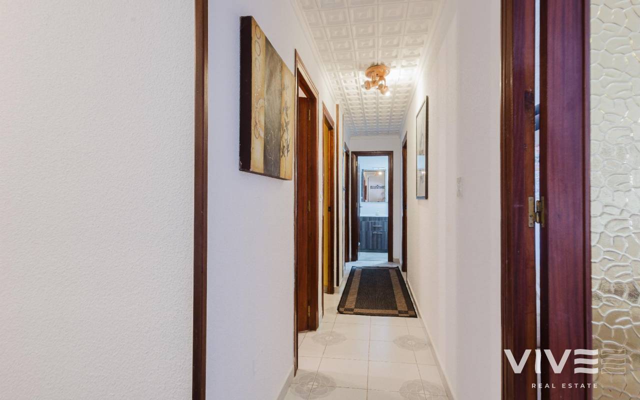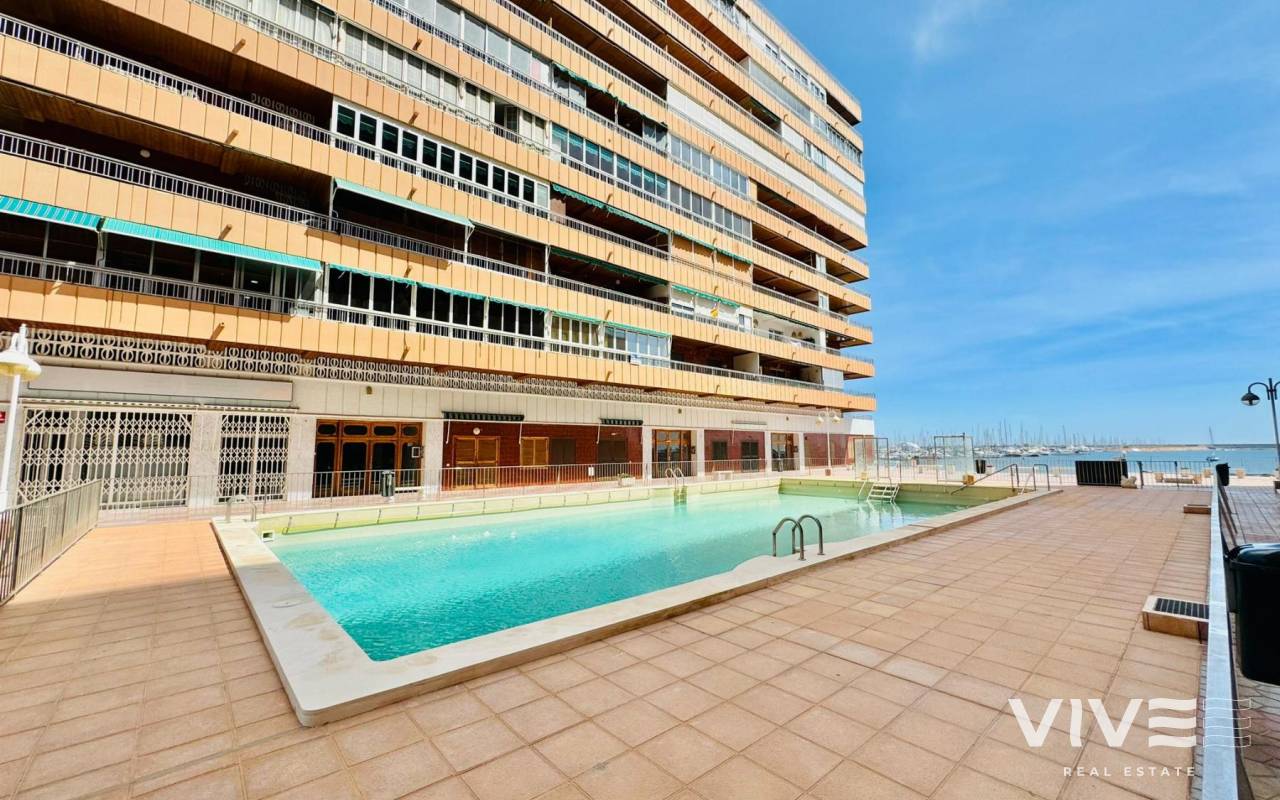 Live the Mediterranean on the frontline space, light and a sea-view terrace in El AcequiónThis 94 m² apartment on the first line of Acequión Beach, in Torrevieja, is a direct invitation to enjoy the sea as part of your everyday life. Built in 1980 and in good condition, it offers a comfortable and functional layout, ideal both as a permanent residence or a seaside getaway.Its south-facing orientation ensures excellent natural light throughout the day, bringing warmth and comfort to every room. The property features 3 bedrooms and 2 bathrooms, an independent kitchen, and a spacious living room with direct access to a 15 m² terrace, perfect for sunny breakfasts or relaxing afternoons with sea views. The apartment is sold fully furnished and equipped with appliances, ready to move in. It is part of a residential complex with a communal swimming pool, an added value to enjoy with family or friends. Main features94 m² built3 bedrooms 2 bathroomsSouth-facing orientation20 m² terraceCommunal swimming poolSea views and first line of the beachIts location is truly strategic surrounded by bars, restaurants, pharmacies, supermarkets and shopping centres, and approximately 45 km from Alicante Airport, offering easy national and international connections. IBI..............................330.-€COMUNIDAD............136.-€ TRIMESTRALES.A property that combines location, natural light and quality of life. Contact us today and schedule your visit.