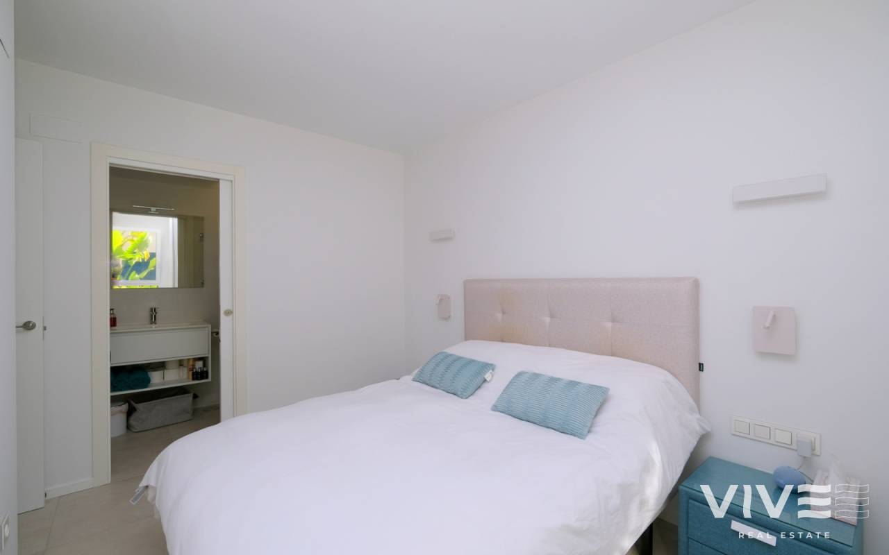 This beautifully presented two-bedroom, two-bathroom ground floor apartment boasts an enviable location just a short stroll from a superb selection of amenities, including the renowned Zenia Boulevard, stunning Blue Flag beaches, and the ever-popular Saturday market. Situated within a secure and impeccably maintained gated community, the property offers bright, stylish, and comfortable living throughout. The spacious lounge and dining area opens directly onto a sunny south-facing terrace — an ideal setting for relaxing or enjoying al fresco dining year-round. The contemporary fully fitted kitchen provides generous storage and ample workspace. The accommodation comprises a large master bedroom with en-suite bathroom, a second double bedroom, and a separate family bathroom, making the layout both practical and appealing. Further benefits include ducted hot and cold air conditioning, an electric awning, a water filtration system, secure underground parking, and access to beautifully landscaped communal gardens with a swimming pool and dedicated children’s play area. The apartment is offered partially furnished, making it ready to enjoy from day one.