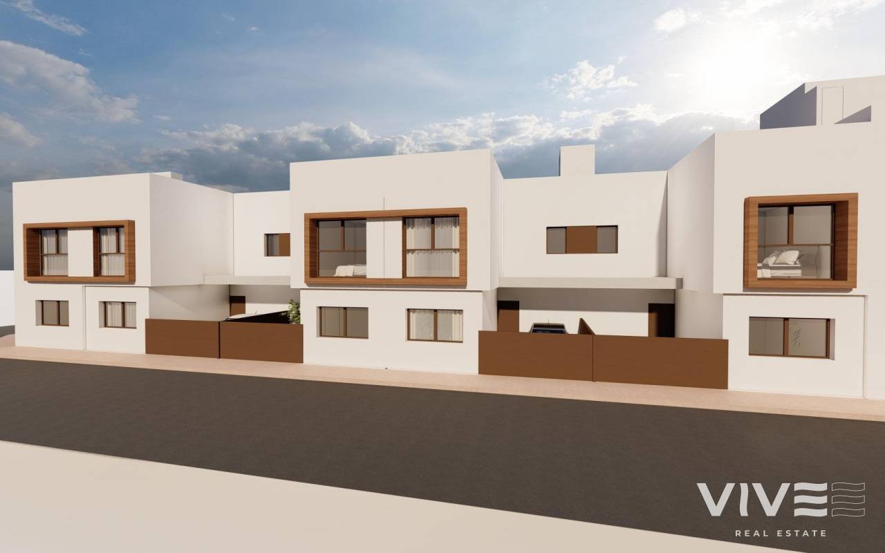Newly Built Townhouses in San Javier - Modern Design and Privileged Location Contemporary Design Townhouses with Private Swimming Pool Discover this exclusive complex of 9 brand new townhouses in San Javier, Murcia, designed to offer maximum comfort and a modern lifestyle. Each property has a private swimming pool, terrace, solarium and parking space, providing an ideal space for relaxation and enjoyment all year round. The homes have been built with high quality materials and an open-plan design that makes the most of natural light. They are perfect for both a permanent residence and a holiday home on the Costa Cálida. High Quality Distribution and Equipment Each townhouse has: 3 spacious bedrooms with fitted wardrobes and chest of drawers. 3 fully fitted bathrooms with furniture, mirrors and screens. Open concept kitchen, fully fitted and with white goods included. Spacious living-dining room, with large windows that connect to the terrace. Private swimming pool with shower and garden with artificial grass. Solarium with summer kitchen, perfect to enjoy the Mediterranean climate. Pre-installation of ducted air conditioning on each floor. PVC exterior carpentry with double glazing, guaranteeing thermal and acoustic insulation. Security entrance door, for greater peace of mind and protection. Strategic location in San Javier San Javier is a coastal town with a wide range of services, sports facilities and leisure areas. The location of this residential allows quick access to: Beaches of the Mar Menor - Only 5 minutes by car. Beaches of the Mediterranean Sea - 10 minutes away. Golf Courses - Various options in the area, ideal for golf lovers. Shopping centres and services - Everything you need just a few minutes away. Murcia-Corvera Airport - 30 minutes away. Alicante Airport - 45 minutes away. Enjoy the Best Climate and Quality of Life in San Javier San Javier is an excellent option for those looking for a property close to the sea, with a privileged climate and access to all kinds of outdoor activities. Don't miss the opportunity to purchase one of these exclusive homes. Contact us today for more information or to schedule a visit.
