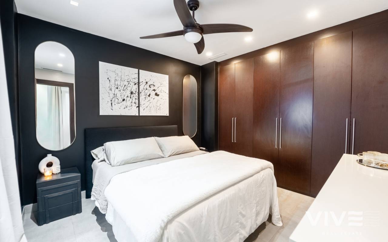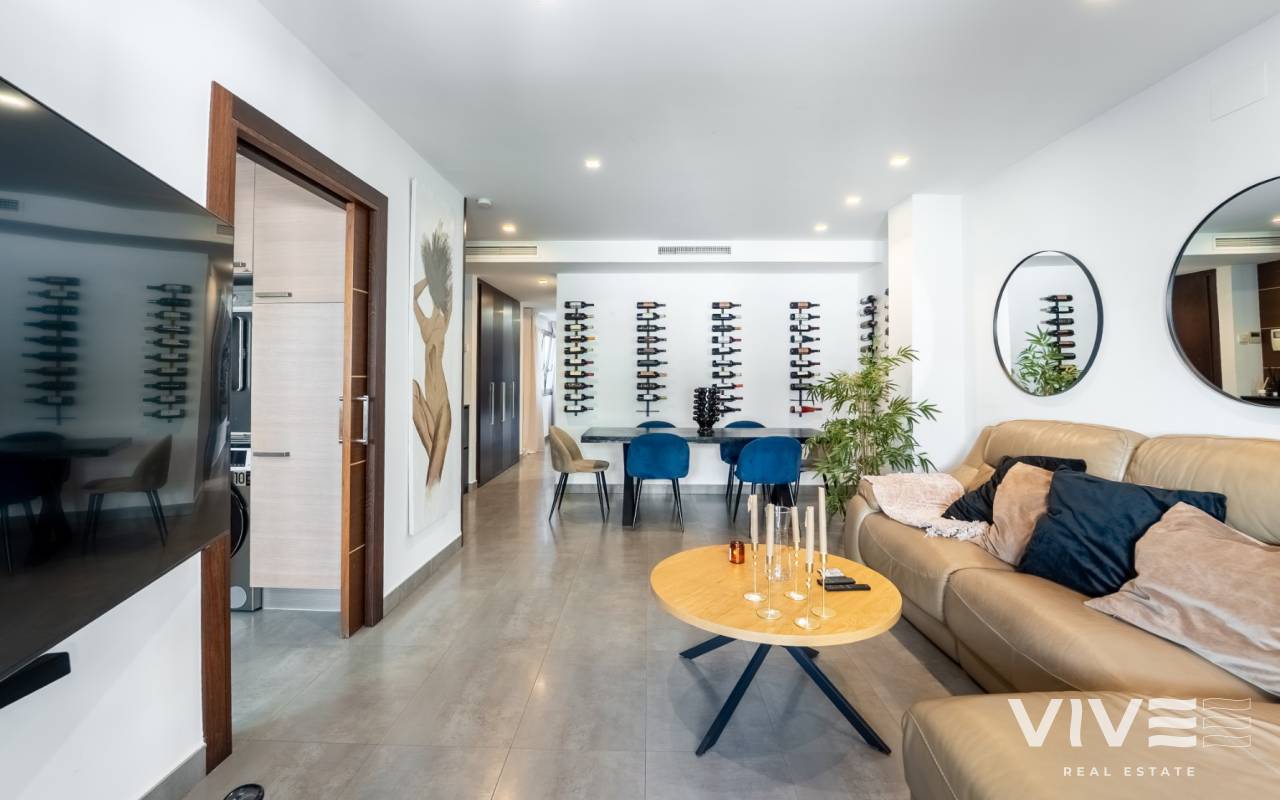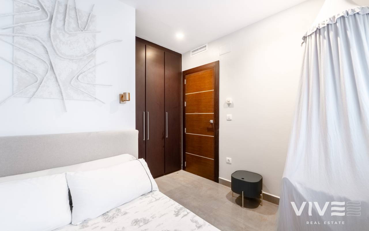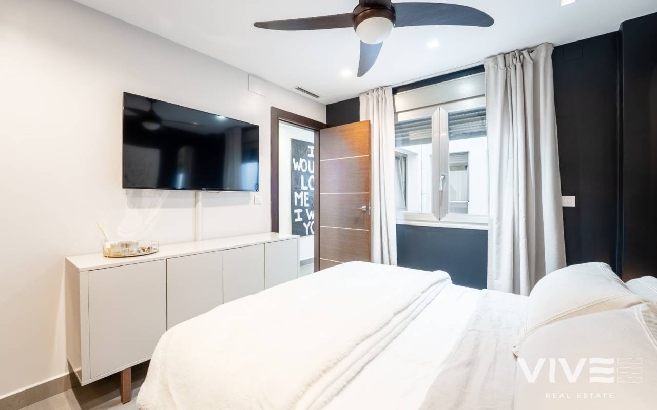 Exclusive apartment in the heart of Torrevieja located on the central Calle Canónigo Torres on the second line from the sea situated on the third floor of a very exclusive building with only four neighbours and one apartment per floor offering privacy tranquility and an exclusive atmosphere The property is spacious bright and very private with three bedrooms and two bathrooms designed with high quality materials and finishes to offer maximum comfort throughout the year Its location is unbeatable just a few steps from the sea and surrounded by shops restaurants services and all amenities of the center of Torrevieja making it perfect both as a holiday home without the need for a car or as a comfortable year round residence The property features ducted air conditioning underfloor heating throughout the apartment and high end Miele appliances An elegant exclusive and private home in the very center of Torrevieja just meters from the sea