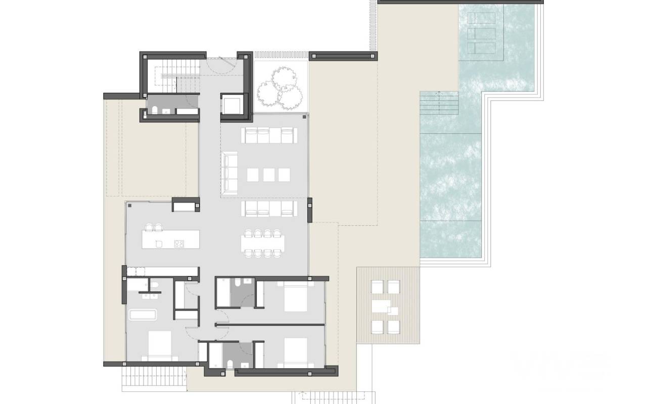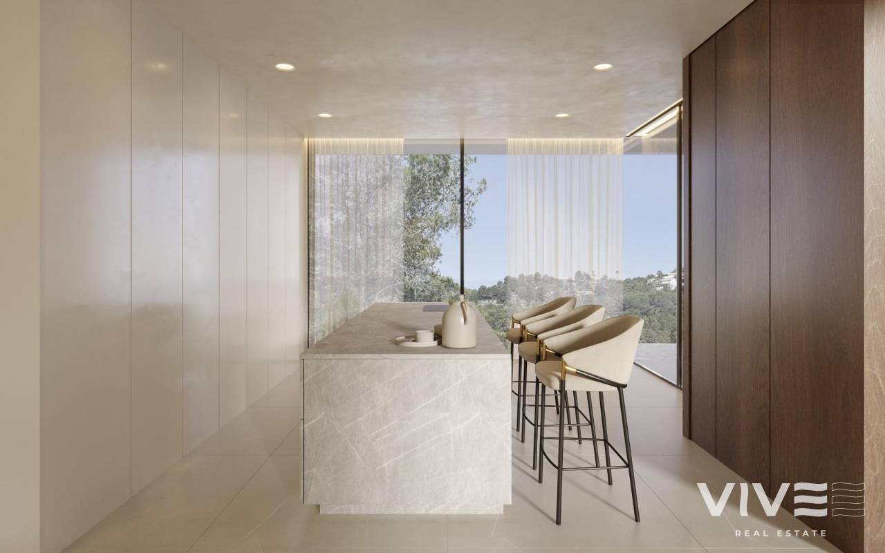 Luxury Contemporary Villa with Sea Views in Benimeit Moraira This exclusive contemporary villa perfectly combines functionality, elegant architecture and premium quality finishes. Located in the sought after residential area of Benimeit in Moraira, the property sits on an elevated hillside plot offering open panoramic views across the surrounding landscape and towards the Mediterranean Sea. The villa is situated less than 3 km from the coastline, providing the perfect balance between privacy, tranquility and easy access to the beach and local amenities. The design of the home has been carefully conceived to create a seamless connection between indoor and outdoor living spaces, maximizing natural light and allowing the beautiful surroundings to become part of everyday living. Spacious Open Plan Living with Seamless Indoor Outdoor Flow The ground floor features a large open plan living and dining area that connects directly with the exterior terraces and pool area. Floor to ceiling windows open the entire space to the outdoors, creating a bright and airy atmosphere while framing the panoramic views. The living room also opens towards the rear side of the property, allowing views on both sides and enhancing natural ventilation. The modern designer kitchen is equipped with high quality Savi cabinetry and premium Miele appliances, offering both style and functionality for everyday living and entertaining. The villa offers a thoughtful bedroom layout designed to maximize views and privacy. Two guest bedrooms open towards the east side of the property, while the ground floor master bedroom enjoys views towards the west. The entire ground floor maintains a strong connection with the exterior spaces, including a large covered terrace facing the infinity pool and views, as well as a more intimate rear pergola ideal for relaxing moments. The upper floor is dedicated exclusively to the impressive master suite, a spectacular space that crowns the property and enjoys nearly 180 degree panoramic views of the surrounding landscape and the Mediterranean Sea. This luxury property includes top quality materials and advanced technology throughout the home. Features include Technal windows with argon insulation, underfloor heating and ducted air conditioning with heat pump, and a smart home automation system by Niessen FreeHome with individual room temperature control through Airzone. Additional features include a passenger elevator connecting all three levels, a fully equipped laundry room with Miele appliances, a chlorine free infinity pool, 4.5 kW solar panels, alarm system, underground garage for two cars and an additional exterior parking space. Prime Location on the Costa Blanca Moraira is one of the most desirable coastal towns on the Costa Blanca, known for its charming marina, relaxed Mediterranean lifestyle and excellent gastronomy. The town offers beautiful beaches and coves such as Playa de l Ampolla, Cala Cap Blanc and the impressive Cala del Moraig. Key distances include Moraira town center 3 km, Playa de l Ampolla beach 3 km, Club de Golf Ifach 4 km, Marina Moraira port 3.5 km, Alicante International Airport 90 km and Valencia Airport 125 km. Contact us today for more information or to schedule a private viewing of this remarkable property. 278
