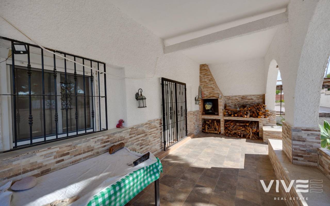 Discover this charming detached chalet of approximately 90 m2, located in the peaceful and sought-after area of Los Balcones.~This home is perfect for enjoying comfort and tranquility, as everything is conveniently set on one level. Upon entering, you’ll be welcomed by a spacious living room with a cozy fireplace — ideal for family gatherings or time with friends. The open-plan kitchen is fully equipped and ready to inspire the chef within you. The chalet also features three comfortable bedrooms, perfect for rest, and two modern bathrooms that provide convenience for your family and guests.~~Outside, you’ll find a spacious garage of about 32 m2, offering plenty of room to safely park your vehicle. The plot measures around 700 m2 and boasts a large garden area — perfect for enjoying the outdoors. Imagine sunny afternoons surrounded by nature or unforgettable evenings under the stars.~~Completing this wonderful property is a beautiful porch with a custom-built BBQ — the ideal spot to share delicious grilled meals on the weekends! Don’t miss the chance to make your dream come true: **this chalet in Los Balcones is waiting for you!**~~Price does not include taxes or additional expenses.