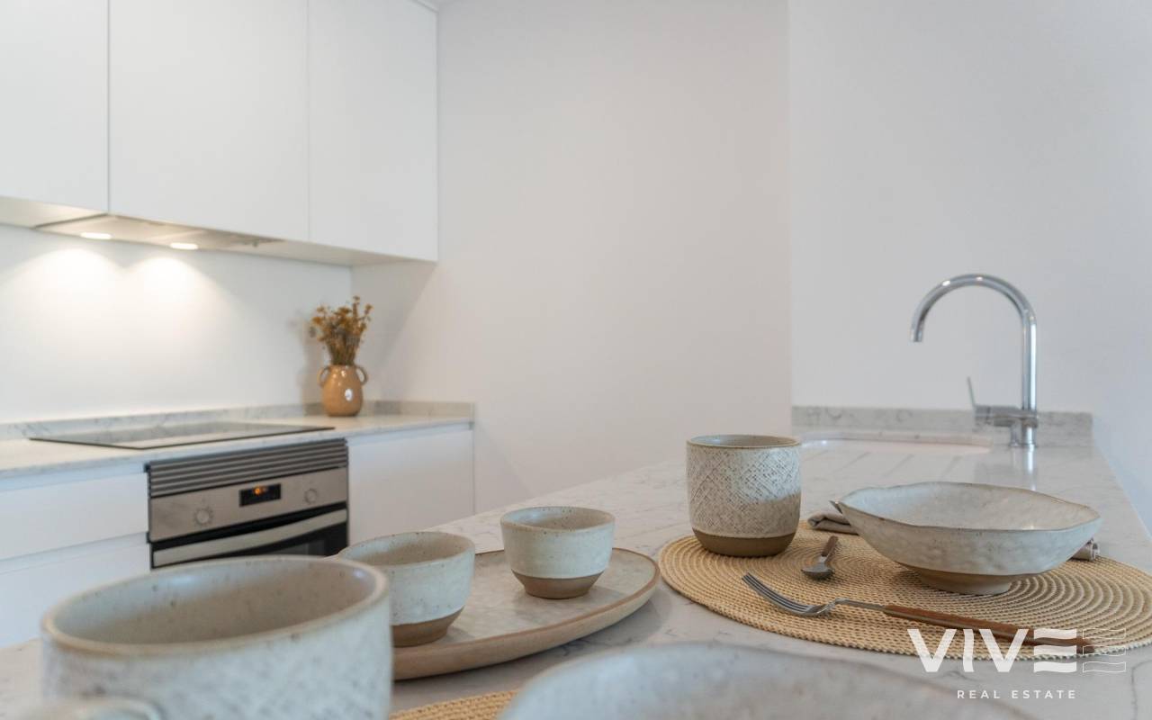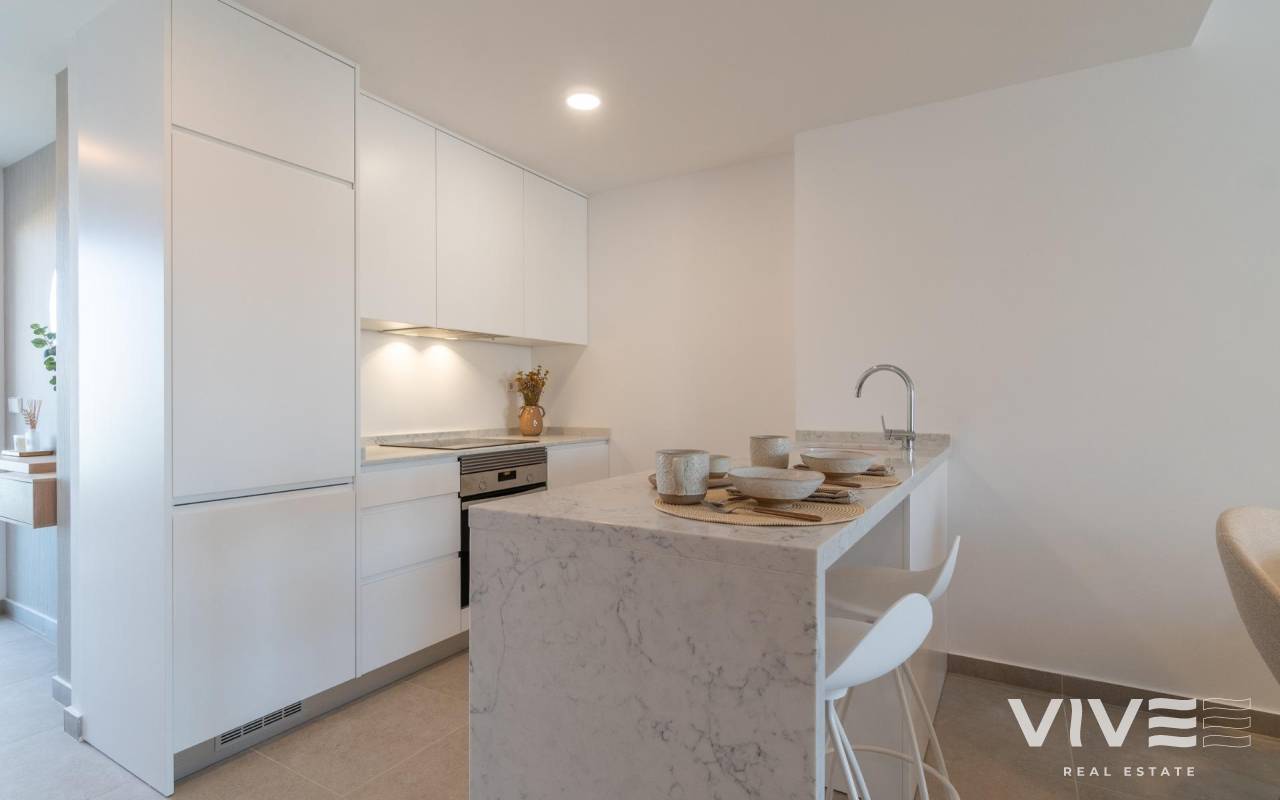 Discover an exclusive new-build residential development in Playa Flamenca, Orihuela Costa, designed for those seeking a modern, well-located home with strong potential both for personal use and investment on the Costa Blanca. This is a multi-phase project, offering the opportunity to acquire brand-new properties at different stages of construction, with excellent potential for capital growth.. . The development already features a fully completed and sold first block, with a communal swimming pool in operation. Block 2 is in the final stages of finishing, Block 3 is currently under internal partitioning, and Block 4 — to which these properties belong — is in the foundation and structural phase. This makes Block 4 a particularly attractive opportunity for buyers looking to secure a property at a competitive price within a rapidly developing environment.. . The apartments have been designed with a contemporary, functional layout and abundant natural light, featuring spacious terraces ideal for enjoying the Mediterranean climate all year round. Available in 2 and 3-bedroom configurations, they offer well-distributed living spaces, open-plan kitchens ready to be customised, and high-quality finishes such as PVC exterior carpentry with double glazing (Climalit), ceramic flooring, and pre-installation for air conditioning. Each property also includes a parking space and storage room.. . Once completed, the residential complex will offer several communal swimming pools, landscaped gardens and areas designed for relaxation and outdoor living, all within a private and secure urbanisation.. . One of its key advantages is its location, just 500 metres from the beach and within easy reach of all essential amenities. It is very close to Mercadona and Centro Comercial La Zenia Boulevard, as well as surrounded by supermarkets, restaurants, leisure areas, medical centres, schools and golf courses, making it ideal both as a holiday home and for year-round living.. . In summary, a property opportunity that combines location, build quality and future value, ideal for those seeking a home by the sea or a high-demand investment.. Don’t miss the chance to live in a privileged environment. Contact us today for more information and to schedule your visit!. . Price: €395,000*. Taxes and purchase costs NOT included (according to applicable regulations).. A detailed breakdown of additional costs will be provided prior to reservation.. *The price may be subject to typographical errors; please confirm with the developer.