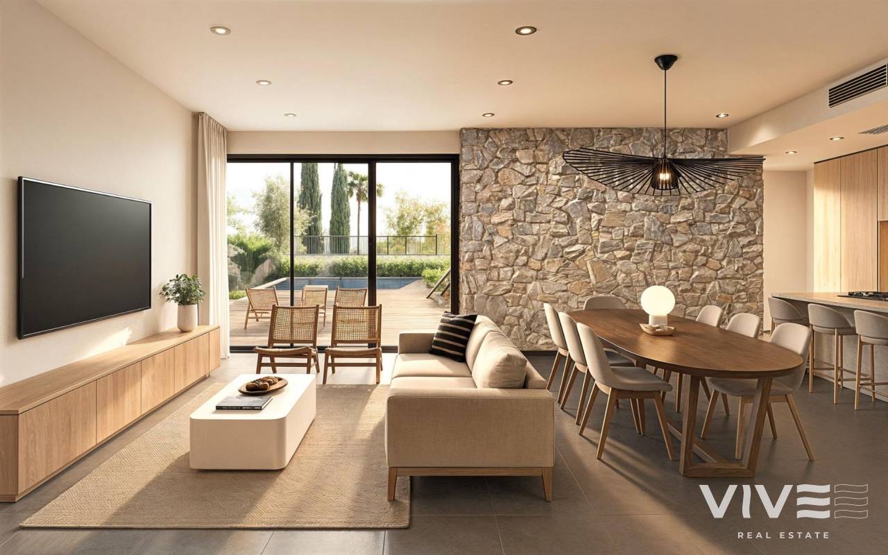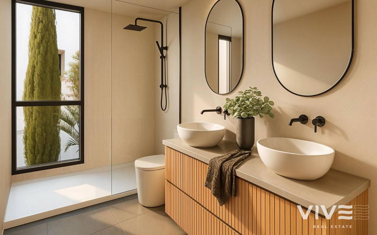 New-Build Villas in Santa Rosalia Lake and Life Resort – Exclusive Living in Murcia Prime Location Near the Mar Menor These newly built villas are located in the prestigious Santa Rosalia Lake and Life Resort, a private gated community in the Region of Murcia. Surrounded by top-class golf courses and just 4 km from the golden beaches of the Mar Menor, the development offers a perfect combination of privacy, nature, and luxury living. The lively coastal town of Los Alcázares is only a 5-minute drive away, while the historic city of Cartagena is 15 minutes away. Murcia International Airport can be reached in approximately 22 km, ensuring easy access from major European cities. Contemporary Villas Designed for Comfort Each villa features a modern, open-plan design with 3 bedrooms, 2 bathrooms, and a guest toilet. The bright and spacious living area integrates a fully equipped kitchen with a dining and lounge space, leading out to a landscaped private garden with a swimming pool. A private off-road parking space is also included. On the lower level, a finished basement of 136 m² with smooth walls, water, and electricity connections provides a versatile space for additional bedrooms, an office, gym, cinema room, or children’s play area. High-Quality Finishes and Sustainable Features Attention to detail is evident in every aspect of these homes. Highlights include a reinforced security door, motorized shutters in the bedrooms, built-in wardrobes, and a kitchen furnished with appliances. Sustainable living is ensured by six installed photovoltaic solar panels. The garden is fully finished with artificial grass, palm tree, automatic irrigation, and decorative shrubs. An efficient ducted air conditioning system ensures year-round comfort. Santa Rosalia Lake and Life Resort – A Caribbean-Style Oasis The resort boasts 126,000 m² of beautifully landscaped green areas with walking and cycling paths, sports facilities, paddle and tennis courts, mini-golf, dog parks, leisure spaces, and a clubhouse. The centerpiece is a spectacular 17,000 m² crystal-clear lagoon with white sandy beaches and palm trees, creating a true Caribbean atmosphere. Two islands feature leisure areas, including a bar and charming beach clubs scattered around the lake. Ideal for Relaxation, Sports, and Investment This unique development is perfect for those seeking a primary residence, a holiday home, or a high-return investment. Its strategic location provides easy access to cultural, gastronomic, and recreational attractions, making it an exceptional choice for families and golf enthusiasts alike. Contact us today to secure your new villa in Santa Rosalia Lake and Life Resort and start enjoying the Mediterranean lifestyle.