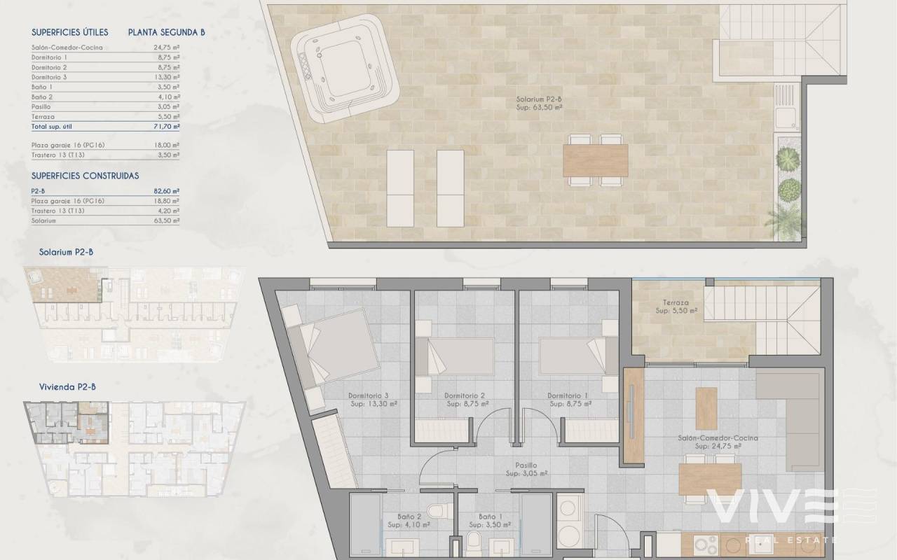 New Build Apartments for Sale in Lo Pagan (San Pedro del Pinatar) Near the Beach Modern Mediterranean Living in Lo Pagan Discover these stylish new build apartments for sale in Lo Pagan, a charming coastal area within San Pedro del Pinatar on the beautiful Costa Calida. Located in the well known neighborhood of Los Cuarteros, this residential development offers a privileged lifestyle just 500 meters from the beach and close to all essential services, restaurants, shops and leisure areas. Lo Pagan is famous for its relaxed seaside atmosphere, the calm waters of the Mar Menor and more than 300 days of sunshine each year. The area combines traditional Spanish charm with modern amenities, making it an ideal destination for both permanent living and holiday homes. Contemporary Apartments with Terraces and Private Solariums The development offers a selection of ground floor and middle floor apartments with spacious terraces, as well as exclusive penthouses with private rooftop solariums. The solariums include a pergola and barbecue area, creating the perfect setting for outdoor dining and relaxing under the Mediterranean sun. Each property has been designed to combine contemporary architecture with warm Mediterranean style. The open plan kitchen integrates seamlessly with the living and dining area, creating bright and comfortable living spaces. Large terraces extend the indoor areas and provide the perfect place for outdoor breakfasts or evening gatherings. Bedrooms feature built in wardrobes and the modern bathrooms are fully equipped, offering comfort and elegant finishes throughout the home. Quality Features and Community Facilities These homes are built with attention to detail and include high quality specifications to ensure comfort and efficiency. Fully furnished kitchen equipped with appliances Fully fitted bathrooms with modern finishes Ducted air conditioning fully installed Private parking space and storage room included with every property Residents can also enjoy excellent communal facilities including a swimming pool surrounded by relaxation areas and a fully equipped gym, ideal for maintaining an active lifestyle all year round. Excellent Location on the Costa Calida This development enjoys a strategic location close to beaches, golf courses and key destinations along the coast. Playa de Villananitos 0.5 km Real Club Nautico de Lo Pagan 0.5 km Lo Romero Golf 10 km Murcia International Airport 40 km Cartagena 35 km The nearby beaches of the Mar Menor such as Playa de La Puntica are known for their fine sand calm waters, ideal for swimming, sailing and water sports. Your New Home by the Sea Awaits Enjoy sunshine, beaches and a vibrant coastal lifestyle in one of the most sought after areas of the Costa Calida. Contact us today for more information about these new build apartments in Lo Pagan and secure your place by the sea.