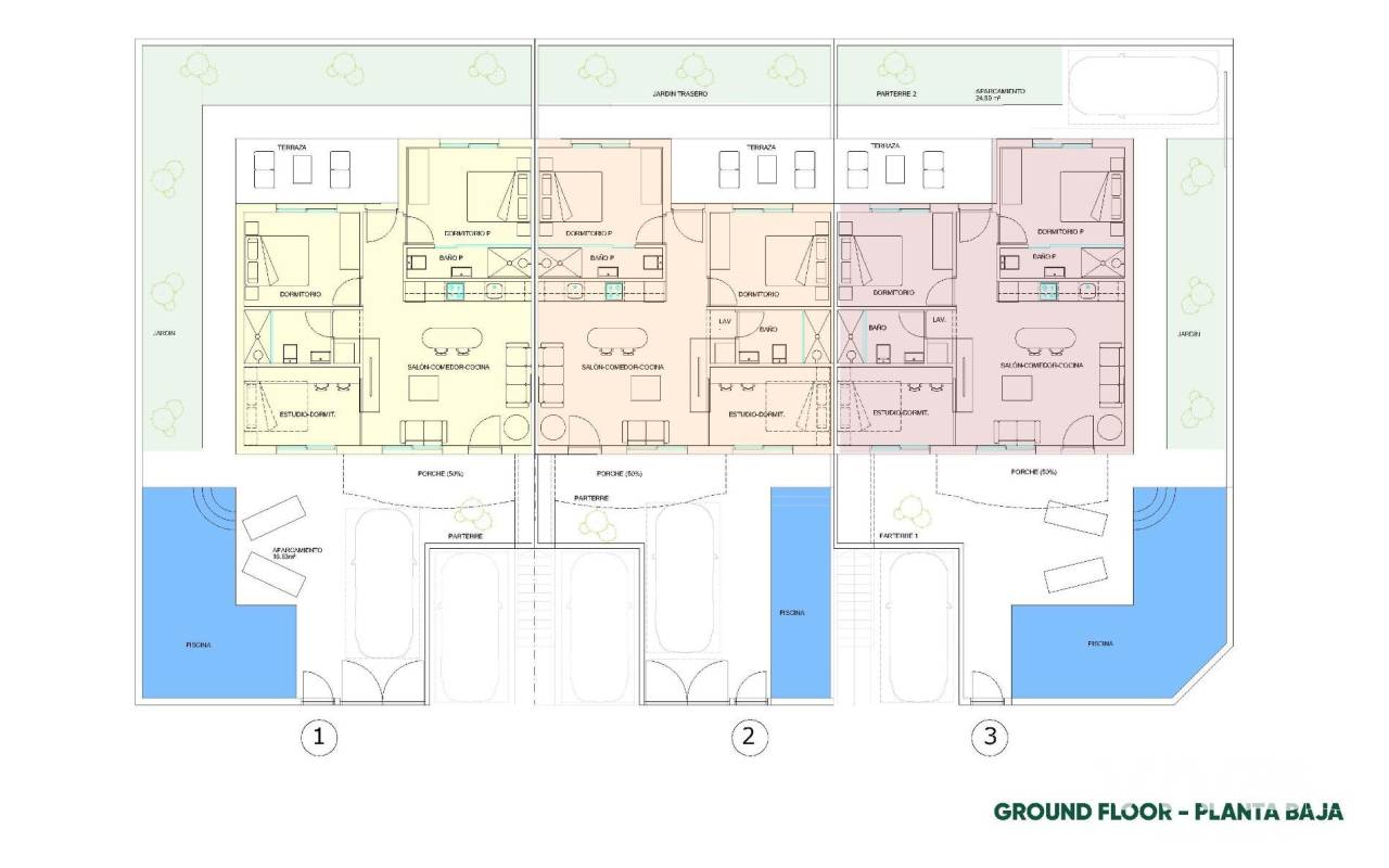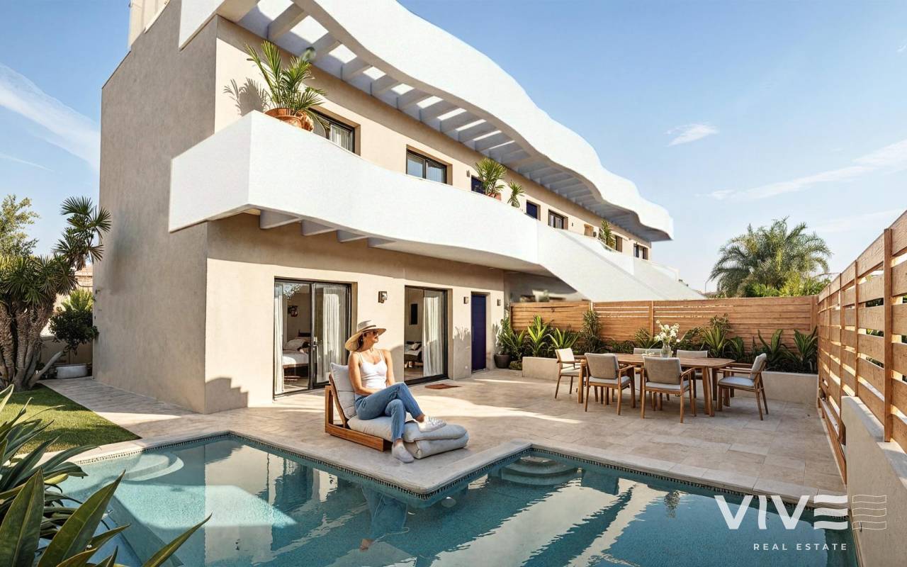 Boutique New Build Bungalows with Private Pool in Pilar de la Horadada, 2 km from beach Exclusive Development Near the Beach on the Costa Blanca Discover this boutique residential development of only six modern bungalows in Pilar de la Horadada, a charming coastal town located in the southern Costa Blanca. Just 2 km from the beautiful sandy beaches of Torre de la Horadada, this project offers a perfect blend of contemporary design, comfort and prime location. Situated in a central and well connected residential area, these homes are within walking distance of the town center, where you will find a wide range of shops, restaurants, cafes and all essential services. Pilar de la Horadada is known for its traditional Spanish atmosphere, welcoming community and relaxed Mediterranean lifestyle. Modern Bungalows with Private Outdoor Spaces All properties feature three bedrooms and two bathrooms, including a master bedroom with en suite bathroom. Buyers can choose between ground floor and top floor layouts, each offering unique outdoor living options. Ground floor bungalows include a private garden, private swimming pool and on plot parking, ideal for those seeking space and easy access. Top floor properties offer a private terrace and a rooftop solarium with private pool, as well as a designated parking space at ground level. The interiors are designed with open plan living areas, combining kitchen, dining and lounge spaces to maximize natural light and create a seamless flow throughout the home. High Quality Finishes and Contemporary Features These new build homes are constructed using high quality materials and finishes. Features include smooth plaster walls, porcelain flooring throughout and built in wardrobes. The modern open kitchens come fully furnished and equipped with appliances. Additional features include pre installation for ducted air conditioning, aerothermal system for energy efficient hot water, LED lighting package, electric shutters and video intercom system. Bathrooms are fully fitted with vanity units and mirrors, offering both style and functionality. Prime Location Close to Beaches, Golf and Amenities Pilar de la Horadada offers an ideal location for both permanent living and holiday homes. The nearby beaches of Torre de la Horadada are approximately 2 km away, known for their golden sand and clear waters. Other key points of interest include Lo Romero Golf 6 km, La Zenia Boulevard shopping center 15 km, Murcia Corvera Airport 40 km and Alicante Airport 55 km. The area also benefits from excellent road connections to nearby coastal towns, marinas and leisure facilities. Ideal Investment Opportunity on the Costa Blanca This exclusive development offers a rare opportunity to own a stylish new build bungalow in a highly desirable location close to the sea. Contact us today for more information or to arrange a viewing and secure your new home in Pilar de la Horadada.
