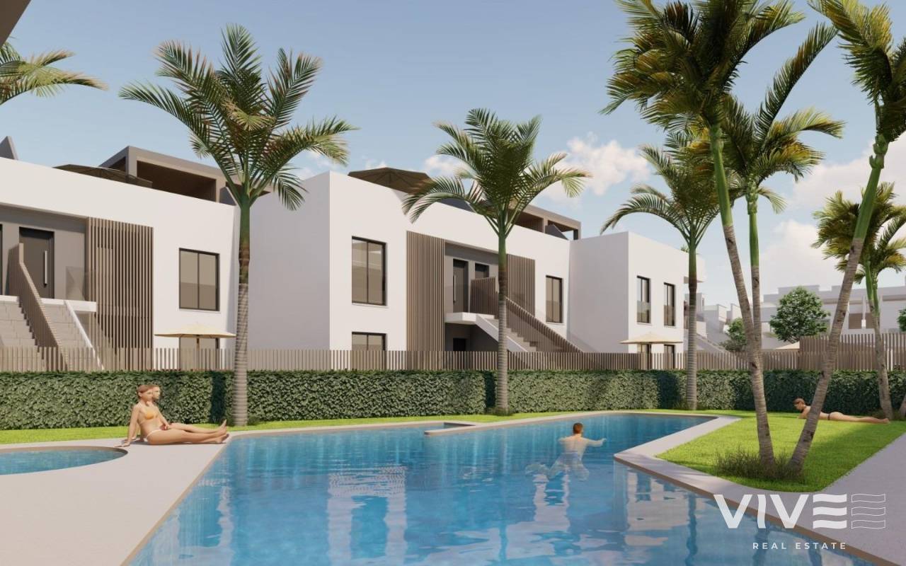 New Build Apartments and Bungalows for Sale in Pilar de la Horadada Near the Beach Exclusive Residential Development on the Southern Costa Blanca Discover this modern new build residential complex located in Pilar de la Horadada, the southernmost town on the Costa Blanca. This boutique development offers a selection of contemporary apartments and bungalows designed to combine comfort, functionality and Mediterranean lifestyle. The project consists of only 26 carefully designed homes with 2 or 3 bedrooms and 2 bathrooms, making it an ideal option for both permanent residence and holiday living. The complex is located in a quiet residential area within walking distance of the town center, where residents can enjoy restaurants, cafes, supermarkets, local shops and all essential services. Pilar de la Horadada is a charming Spanish town known for its welcoming atmosphere, lively main street and beautiful plazas. With excellent connections to nearby coastal areas and golf resorts, it is a popular destination for international buyers seeking sunshine and quality of life. Apartments and Bungalows with Private Outdoor Spaces The development offers two different property types to suit various lifestyles. The complex includes 16 modern apartments. Buyers can choose between ground floor units with private gardens, middle floor apartments with spacious terraces or penthouses with private terraces and rooftop solariums. There are also 10 bungalows available. Ground floor bungalows feature private gardens and parking within the plot, while top floor bungalows offer terraces and private solariums. There are optional parkings and storages at underground for an extra cost. All homes have been designed with bright interiors, open layouts and comfortable living areas that extend naturally to the outdoor spaces. Quality Construction and Modern Features The homes are built with high quality materials and modern systems to ensure comfort and energy efficiency throughout the year. Furnished kitchens Fully equipped bathrooms with shower screens and underfloor heating Energy efficient aerothermal hot water system Pre installation for ducted air conditioning Residents also benefit from a communal swimming pool surrounded by landscaped gardens and sunbathing areas, creating a relaxing environment to enjoy the Mediterranean climate. Excellent Location Close to Beaches and Golf The development enjoys a strategic location close to some of the best beaches and golf courses in the region. Torre de la Horadada beach 3 km Mil Palmeras beach 3 km Lo Romero Golf 6 km Region de Murcia International Airport 45 km Alicante Elche Airport 75 km The area also offers excellent road connections to nearby coastal towns, marinas and leisure facilities along both the Costa Blanca and Costa Calida. Find Your New Home in Pilar de la Horadada This attractive new build residential complex offers modern homes, quality finishes and a fantastic location close to the beach. Contact us today for more information or to arrange a visit and secure your new property on the Costa Blanca.