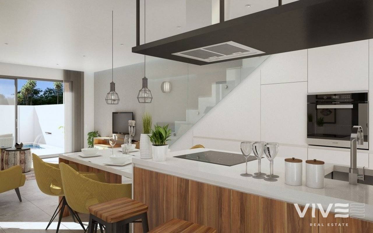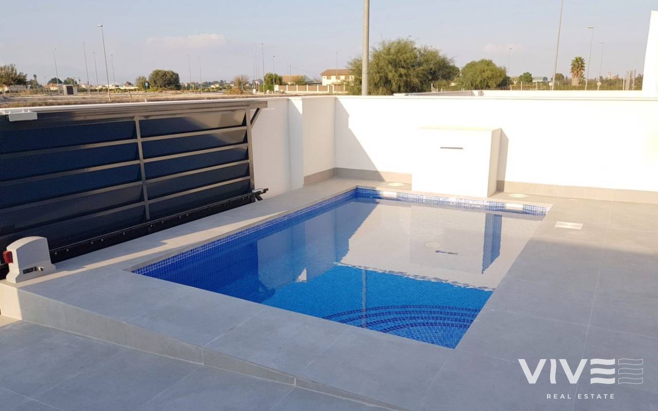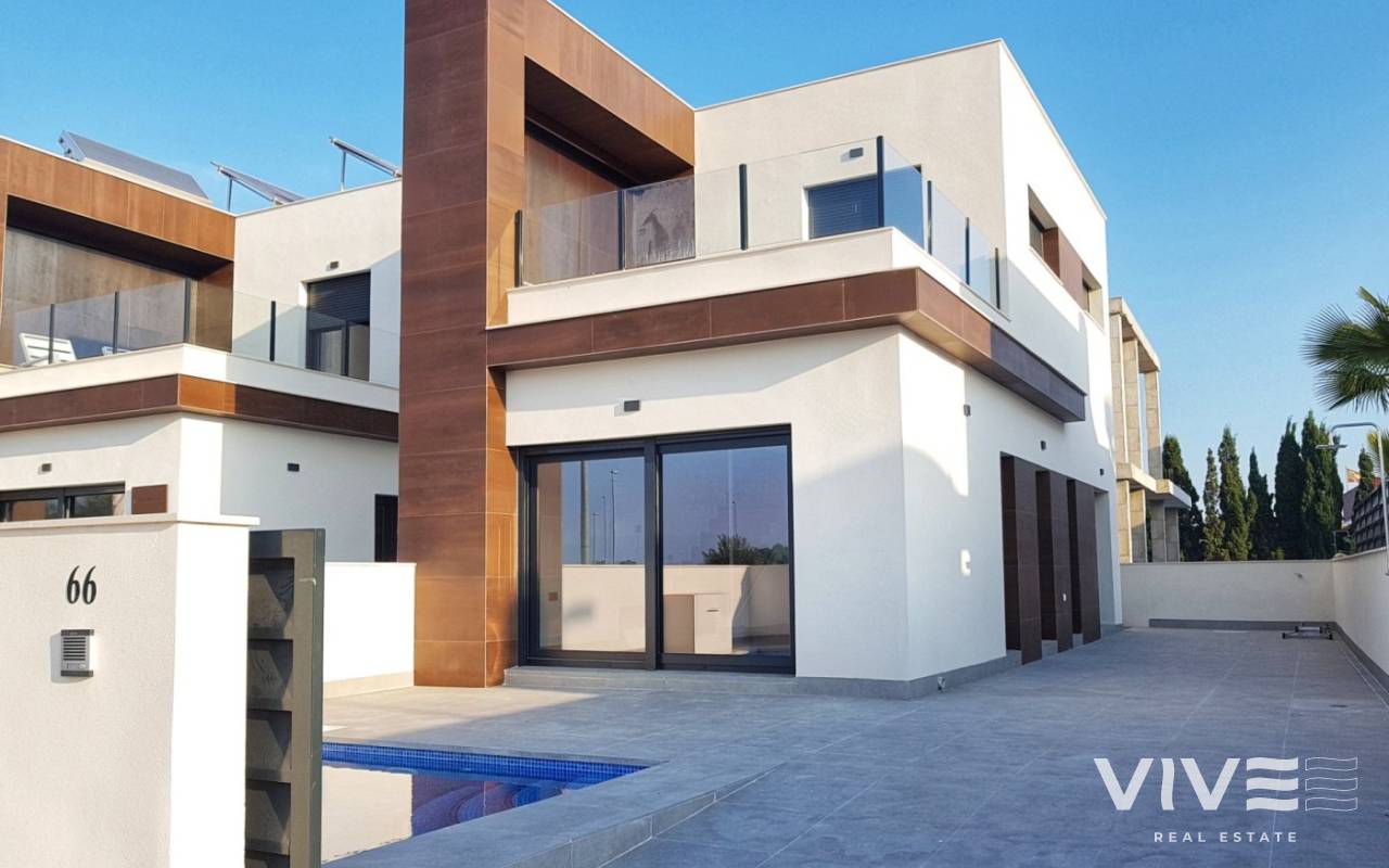 NEW SEMI-DETACHED VILLAS IN DAYA NUEVA New build semi-detached villas in the new part of Daya Nueva. Just a few minutes walk to the centre of the town. Villas has 3 bedrooms, 2 bathrooms, private garden with the pool, dining - living room with open plan kitchen, bedroom with fitted wardrobes, en suite bathroom on the ground floor and on the first floor 2 bedrooms, fitted wardrobes and bathroom. Nueva Daya is the perfect blend between a relaxing and comfortable rural lifestyle and the vibrant coastal areas of the Costa Blanca. New quiet residential area, approximately 10 minutes from the beach of La Marina del Pinet and Guardamar del Segura. Easy access to the highway A-70 and approximately 25 minutes from the international airport of Alicante.