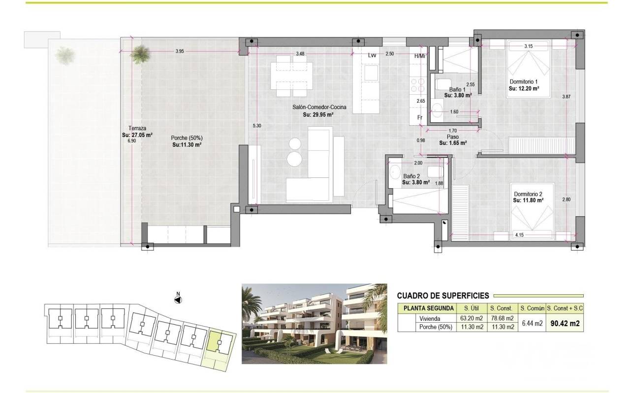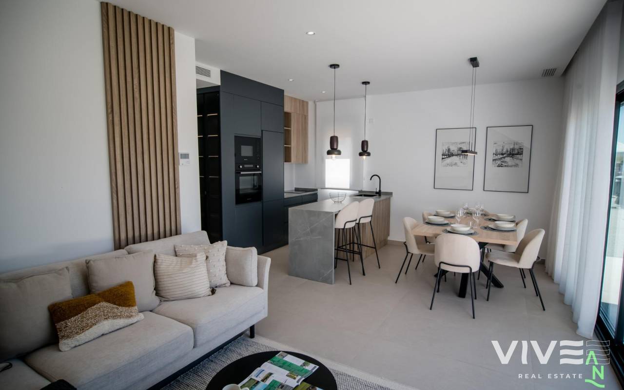 New Build Apartments at Condado de Alhama Golf Resort Murcia Modern Living in a Prestigious Golf Resort Discover these new build apartments located within the renowned Condado de Alhama Golf Resort in the Region of Murcia. This exclusive residential complex of villas and apartments is set in a secure resort surrounded by nature, sports facilities and a championship golf course, offering an exceptional lifestyle in a peaceful Mediterranean environment. Condado de Alhama is a well established golf resort with a shopping center, supermarkets, bars, restaurants, sports areas and landscaped gardens. It is an ideal choice for both permanent living and holiday homes, combining comfort, security and leisure. Contemporary Apartments with Terraces and Solariums The apartments are distributed in low rise blocks of 8 units, with homes on the ground, first, second and third floors. Each block has an elevator providing easy access to all levels. Ground floor properties offer 3 bedrooms and 2 full bathrooms, with the option to adapt to 2 bedrooms for a larger living area if desired. The remaining units feature 2 bedrooms and 2 bathrooms. Top floor apartments include a private solarium, perfect for sunbathing and enjoying open views. All homes are designed with a contemporary open plan concept, integrating a fully equipped kitchen with the living and dining area. Spacious terraces with a summer kitchen extend the living space outdoors, allowing residents to enjoy the warm climate throughout the year. High Quality Specifications and Communal Areas The development is built to high standards and includes: Fully furnished and equipped kitchen with integrated fridge and dishwasher, induction hob, extractor hood, oven and microwave in column Pre installation for ducted air conditioning Aerothermal system for hot water Armored entrance door Fully fitted bathrooms with vanity unit, suspended toilet and shower screens Interior and exterior lighting Outdoor parking space for each apartment Storage room in selected units Residents benefit from several communal swimming pools surrounded by green areas, creating a relaxing and family friendly atmosphere. Prime Location and Distances Alhama Signature Golf designed by Jack Nicklaus within the resort Beaches of Mazarron and Bolnuevo 20 km Murcia International Airport 20 km Murcia city 40 km Cartagena 35 km Mazarron offers more than 35 km of coastline, including several Blue Flag beaches recognized for their quality and natural beauty. Your Home in Condado de Alhama Awaits These new build apartments offer golf, sunshine and excellent amenities in one of Murcia most complete resorts. Contact us today to receive more information and secure your property at Condado de Alhama Golf Resort.