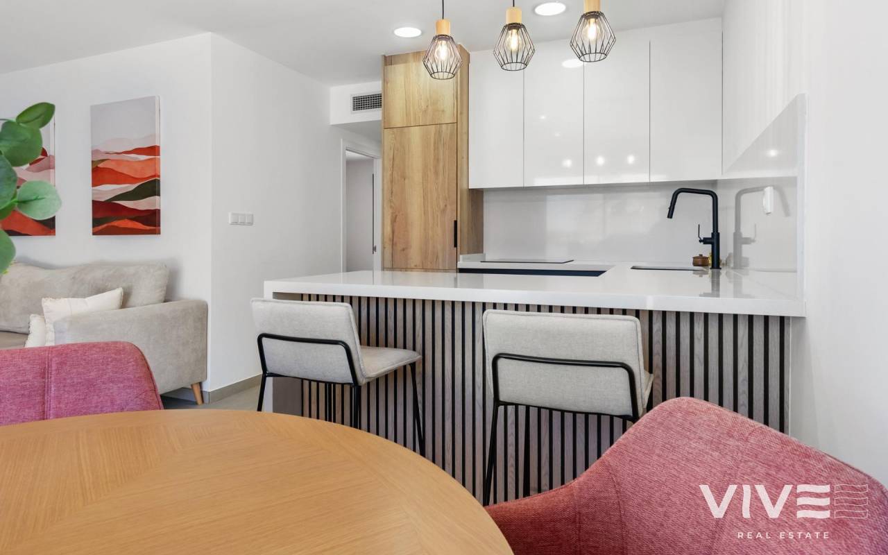 New Build Tourist Apartments in Santiago de la Ribera, San Javier – Just 750m from the Beach Exclusive Development on the Costa Cálida This exclusive residential complex of 125 tourist apartments is located in Santiago de la Ribera (San Javier), a charming seaside town on the Costa Cálida, renowned for its beautiful sandy beaches, relaxed Mediterranean lifestyle, and excellent year-round climate. With the Mar Menor just 750 meters away, these homes offer the perfect combination of comfort, style, and proximity to the sea. Modern Apartments with Multiple Options The development offers spacious 3-bedroom, 2-bathroom apartments, including an ensuite master bedroom. Buyers can choose from: Ground floor units with private garden Middle floor apartments with large terraces Penthouses with private solarium Each home is designed to maximize natural light and outdoor living. Features include fully fitted and furnished kitchens with appliances, interior and exterior lighting, bathrooms with furniture and shower screens. Every property comes with a surface parking space, while underground parking and storage rooms are available at an additional cost. Premium Amenities and Services Owners will enjoy a modern building equipped with elevators, two communal swimming pools, and beautifully landscaped gardens. The homes include pre-installation of ducted air conditioning for year-round comfort. A Smart Investment Opportunity These apartments come with a tourist license already granted, making them an excellent investment for holiday rentals. Owners can generate income through short-term rentals while also enjoying the property for their own family holidays. Please note that these residences are intended for vacation use and cannot be used as permanent homes. Prime Location in San Javier The development is strategically located close to all essential services and leisure activities. Distances to main points of interest: Mar Menor beach: 750 m La Ribera Shopping Center: 2 km Dos Mares Shopping Center: 3 km Roda Golf: 5 km Lo Pagán Marina: 4 km Murcia Airport (Corvera): 40 km Cartagena: 30 km Murcia City: 40 km Make Your Coastal Dream Come True This new build project in Santiago de la Ribera represents a unique opportunity to enjoy the Mediterranean lifestyle while making a smart rental investment. Contact us today for more details or to schedule a viewing of these modern tourist apartments just steps from the Mar Menor.
