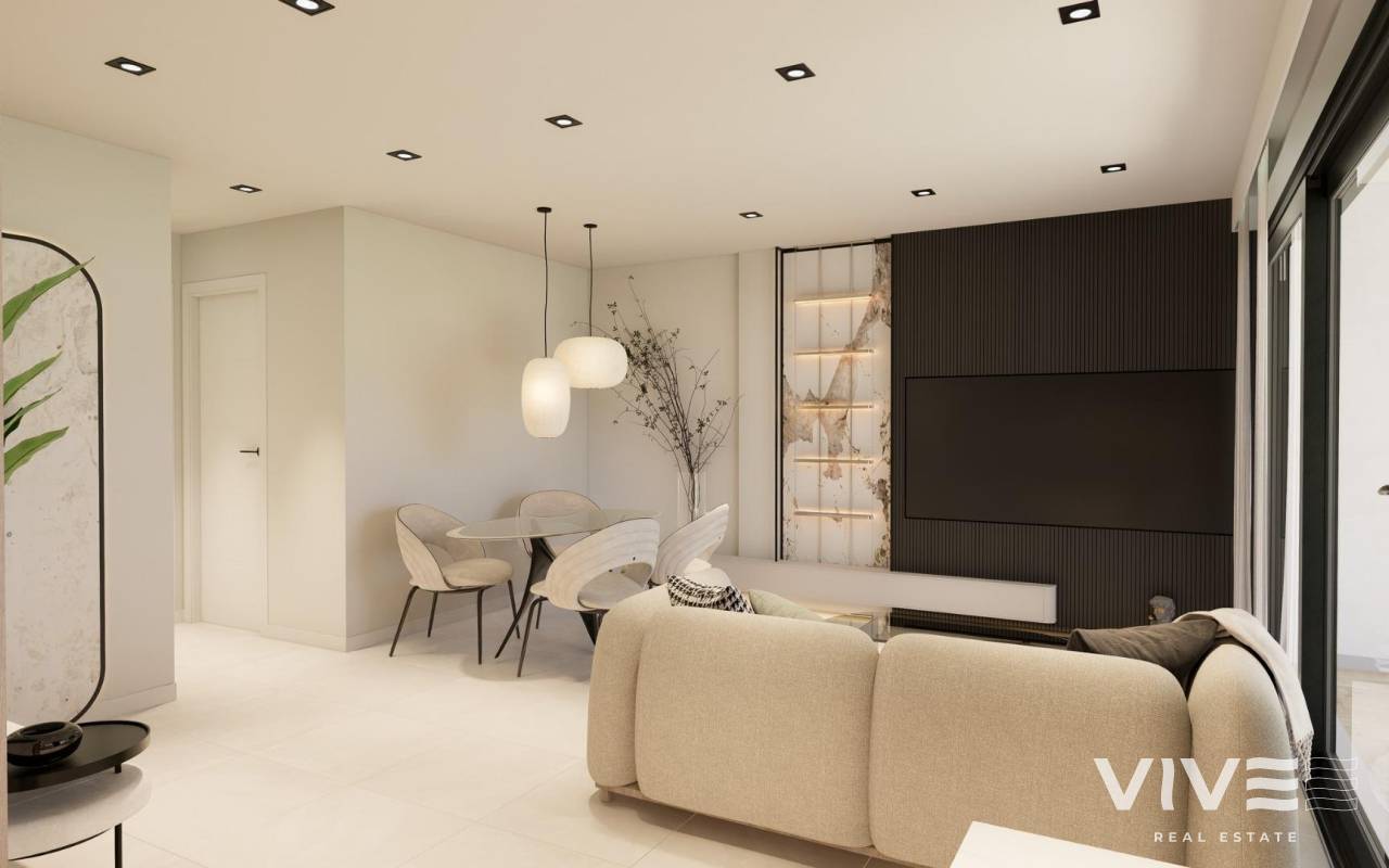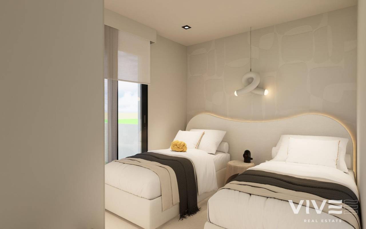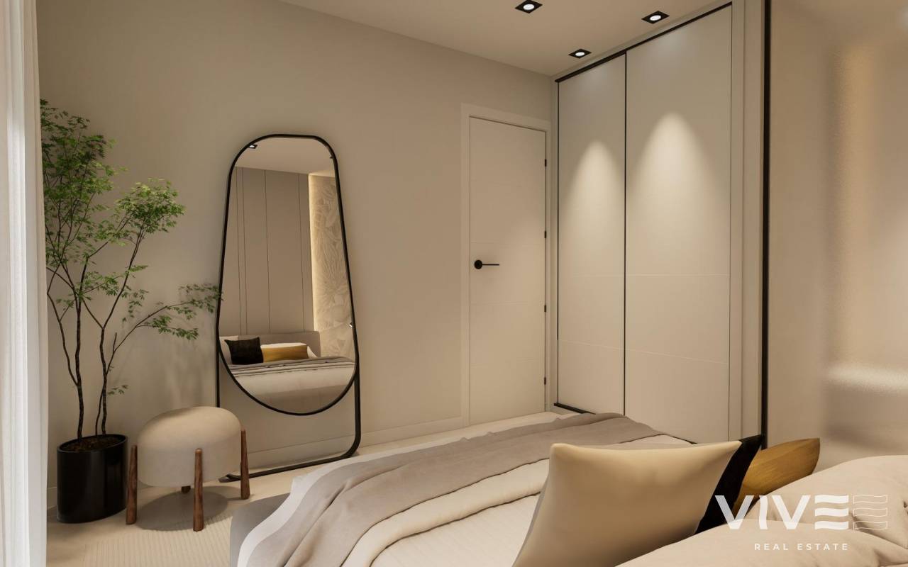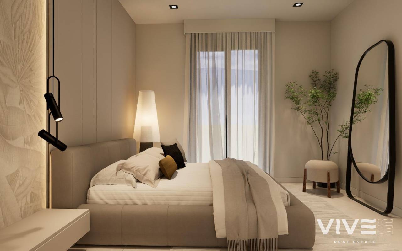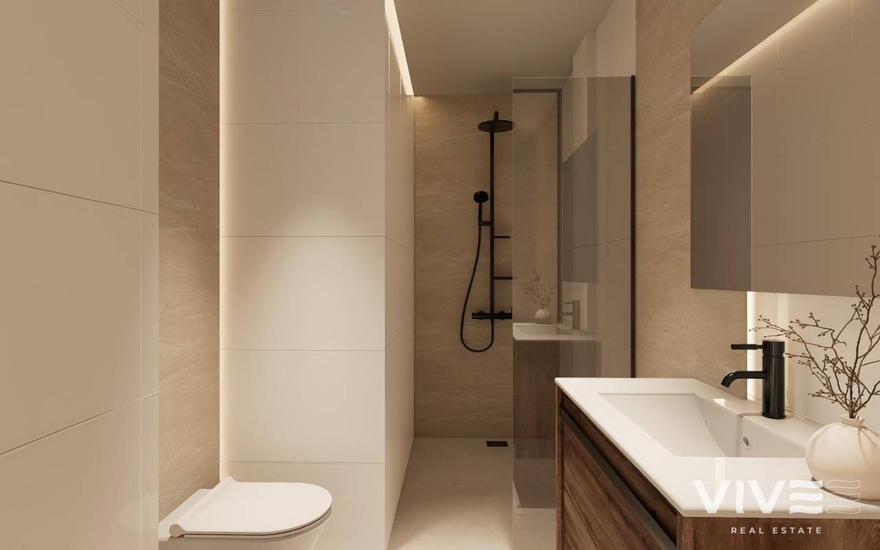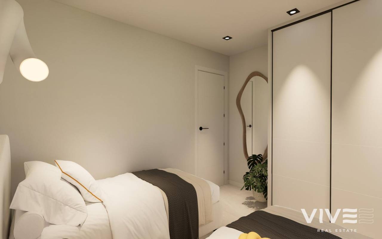 New Build Bungalows with Garden or Solarium Near the Beach in Pilar de la Horadada Modern Mediterranean Homes Designed for Comfort Discover this exclusive new build residential complex in Pilar de la Horadada, offering contemporary bungalows located less than 2 km from the beach. Designed to combine comfort, style and functionality, these homes are ideal for year round living, holidays or as a smart investment on the Costa Blanca. The development offers a choice between ground floor bungalows with private gardens and top floor bungalows with private rooftop solariums. Each property is thoughtfully designed to maximize outdoor living and make the most of the Mediterranean climate. Spacious 2 Bedroom Properties with High Quality Finishes Each bungalow features 2 bedrooms and 2 bathrooms, one of them ensuite, along with a private parking space in the underground garage. The homes are built with quality materials and modern finishes that ensure energy efficiency and durability. Key features include: Preinstallation for ducted air conditioning Aluminium exterior carpentry with double glazing and motorized shutters Security entrance door for peace of mind Aerothermal system for efficient hot water production Built in wardrobes in all bedrooms Fully equipped bathrooms with furniture and shower screens These specifications provide a comfortable and practical home suitable for all seasons. Private Community with Pool and Landscaped Gardens The residential complex is private and secure, with beautifully landscaped communal gardens and a large communal swimming pool. This creates a pleasant and relaxing environment where residents can unwind and enjoy the excellent climate. Located just outside the town center, the development allows residents to walk to supermarkets, restaurants, bars, schools and essential services without needing a car. Excellent Location Close to Beaches and Services Pilar de la Horadada is a charming Spanish town in the southernmost part of the Costa Blanca, known for its lively atmosphere, local shops, traditional squares and friendly community. The sandy beaches of Torre de la Horadada Beach and Mil Palmeras Beach are just 2 km away, offering fine golden sand, a scenic promenade and a marina. The area is also ideal for cycling, walking and outdoor sports. Distances to Key Points of Interest Lo Romero Golf 5 km La Zenia Boulevard 15 km Murcia Corvera Airport 40 km Alicante Airport 55 km Torre de la Horadada Marina 3 km Reserve Your New Home Today Do not miss this opportunity to own a brand new bungalow near the beach in one of the most desirable areas of the Costa Blanca. Contact us today for more information and to arrange a visit.