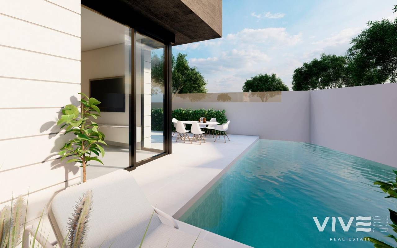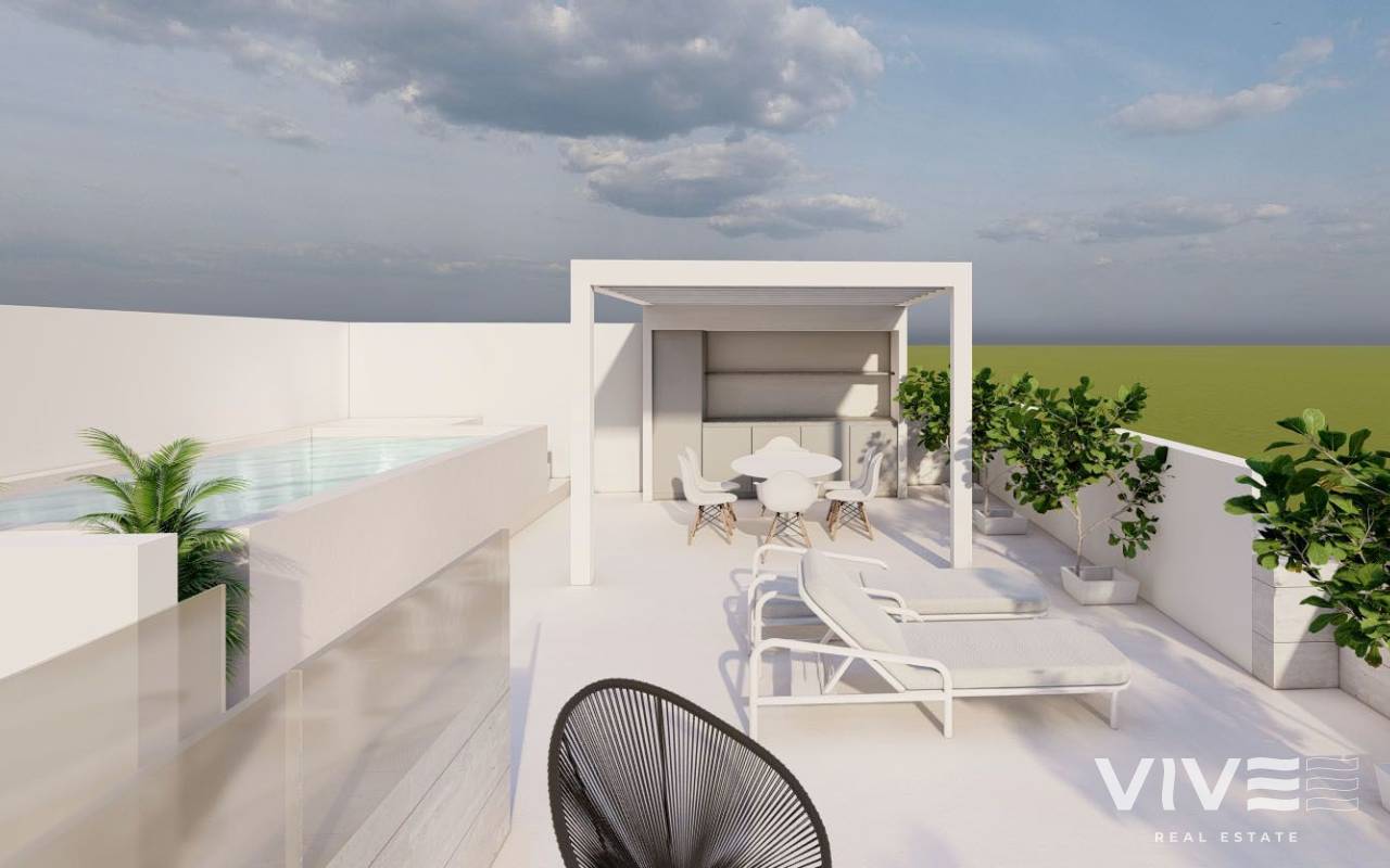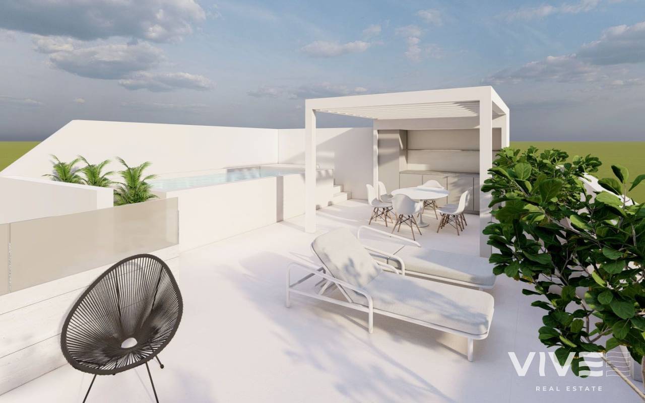 Exclusive New Build Bungalows with Private Pool in Pilar de la Horadada Modern Living in a Prime Costa Blanca Location Discover an exclusive new development of only two premium bungalows located in the heart of Pilar de la Horadada, a charming coastal town in the Costa Blanca known for its fine sandy beaches, peaceful ambiance and Mediterranean lifestyle. The residential complex is situated just 2.5 km from the beach and within walking distance of supermarkets, shops, restaurants and essential daily services. With excellent road connections and Alicante Airport only 45 km away, this location offers the perfect balance between tranquility, comfort and accessibility. Two Unique Homes Designed for Comfort The project features two elegant 2 bedroom, 2 bathroom homes, designed with high quality finishes and modern layouts. One of the bathrooms is ensuite, providing additional privacy and convenience. Each property offers its own distinctive outdoor living experience to match different lifestyle preferences. Ground Floor Bungalow with Spacious Garden and Private Pool The ground floor unit includes a generous 75 m2 garden ideal for outdoor dining, sunbathing and leisure. A private pool is included, along with private parking inside the plot. Large windows and open spaces create a bright and welcoming atmosphere throughout the home. Penthouse Bungalow with Private Solarium and Pool The upper floor residence offers a fenced parking space on the ground level and access via an exterior staircase. It boasts a spacious terrace and a private rooftop solarium with its own swimming pool, creating an exclusive retreat for enjoying the Mediterranean climate and open views. Lifestyle in Pilar de la Horadada This coastal municipality is known for its calm and relaxed atmosphere, beautiful beaches such as Mil Palmeras and a wide range of outdoor activities. Snorkelling, diving, coastal walks and cycling are part of the everyday lifestyle enjoyed by residents and visitors alike. Nature lovers will appreciate the proximity to the San Pedro Salt Lakes, located approximately 12 km away, offering scenic landscapes and wildlife. Distances to Key Points of Interest Beach: 2.5 km San Pedro Salt Lakes: 12 km Lo Romero Golf: 6 km Alicante Airport: 45 km Murcia Airport: 40 km Torrevieja: 20 km Secure Your Exclusive Home Today Take the opportunity to own a unique property with exceptional outdoor spaces in one of the most desirable areas of the Costa Blanca. Contact us today to arrange a visit and reserve your new home in Pilar de la Horadada.
