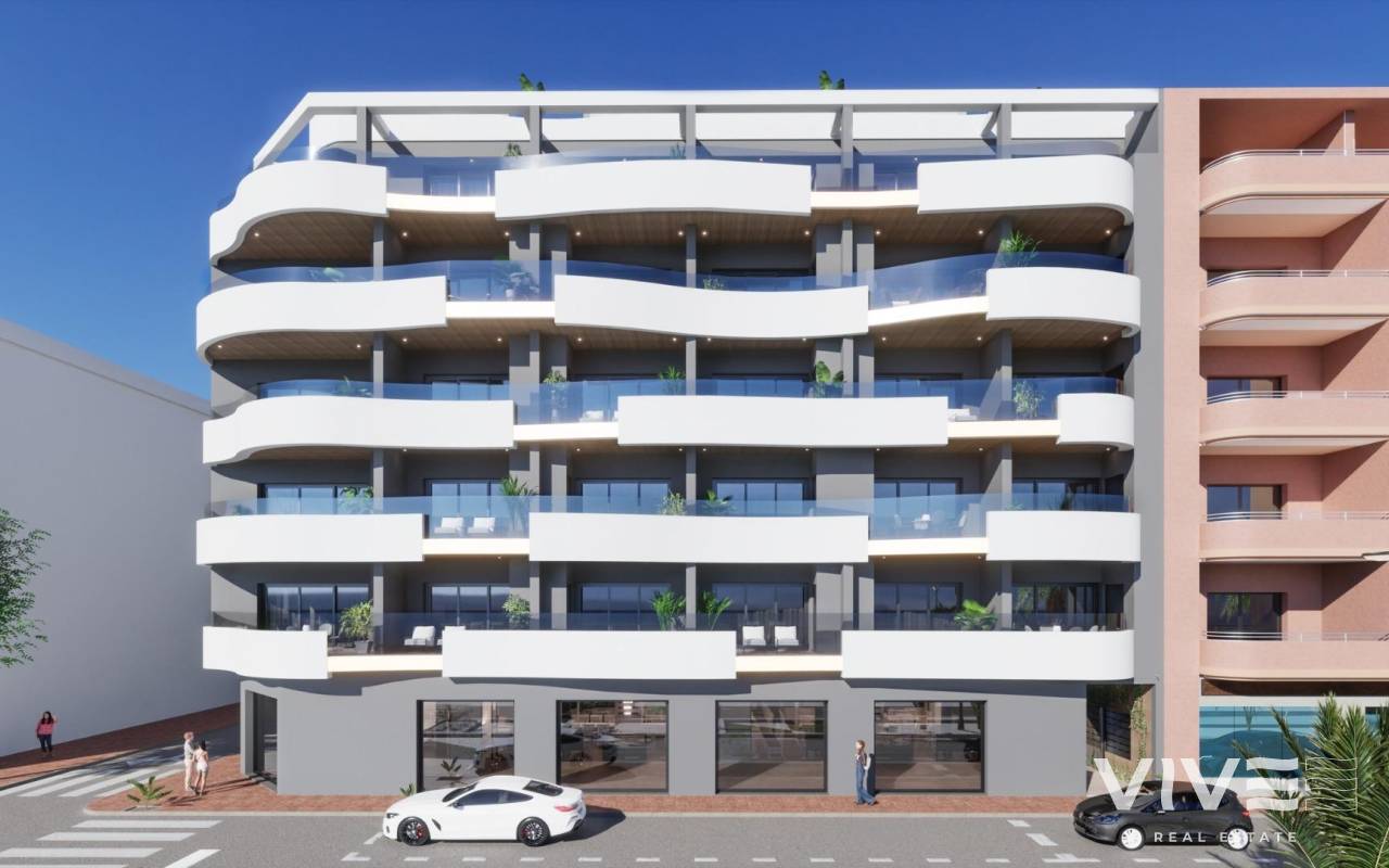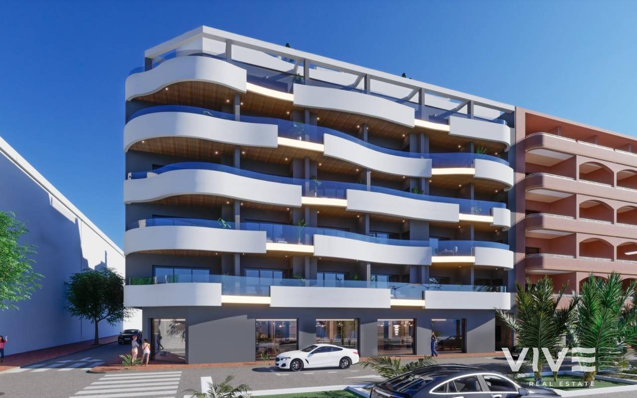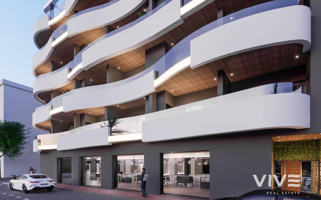 NEW BUILD APARTMENTS IN TORREVIEJA New Build avant-garde design five-storey development in Torrevieja with 34 exclusive properties offers a variety of living options, from stylish apartments to penthouses with breathtaking panoramic views. Every corner of residential has been carefully planned to maximise space and natural light, creating bright and welcoming environments that invite well-being. Residential majestically located in the heart of Torrevieja, consolidating itself as a residential development full of elegance and modernity. Its strategic location ensures that residents will feel part of this amazing city with easy access to a variety of services and attractions. It is a unique opportunity to invest in a sophisticated lifestyle in the heart of Torrevieja! Its unrivalled location, avant-garde design and meticulous attention to detail ensure that this residential development is much more than a place to live: it is a home where dreams take shape and life is lived to the fullest. Torrevieja is a Spanish town in the province of Alicante, on the Costa Blanca. It is known for its typically Mediterranean climate and coastline. It has boardwalks with resorts along its sandy beaches. The small Museum of the Sea and Salt houses exhibitions on the fishing and salt history of the city. In the interior, the Lagunas de La Mata-Torrevieja Natural Park has trails and two salty lagoons, one pink and the other green. Alicante airport located 40 minutes away and Murcia airport about 1 hour away.