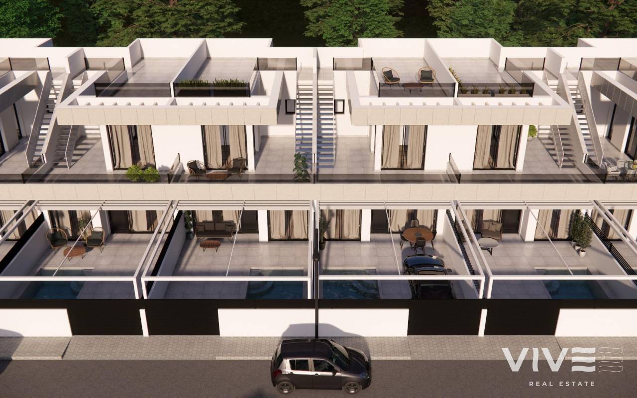 NEW BUILD TOWNHOUSES IN ROJALES New Build modern residential of townhouses and semi-detached villas in Rojales. Properties has 3 bedrooms, 2 bathrooms, guest toilet, open plan kitchen with living area and direct access to the terrace, private garden with the parking space. An options for a solarium and a private pool at an extra cost. Rojales it is a lovely village with all services such as supermarkets, pharmacies, banks, restaurants and natural park located very close by. There a 3 golf courses nearby and the blue flag beaches are just a short 10 minute drive away, as well as water parks in nearby Rojales and Torrevieja. Alicante & Murcia airports are 45 minutes drive away.