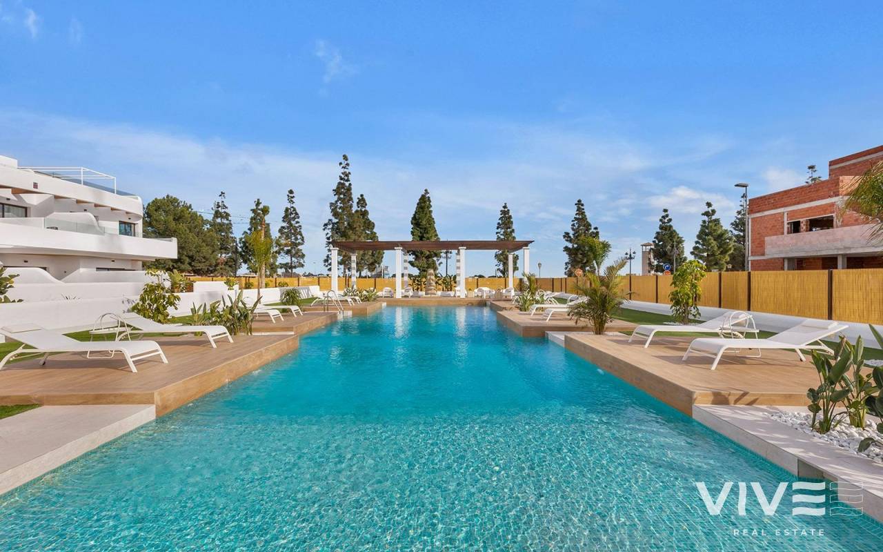 New Build Residential Complex Near Serena Golf and the Mar Menor in Los Alcazares Modern Coastal Living on the Costa Calida Discover this attractive new build residential complex located in Los Alcazares, one of the most popular seaside towns on the Costa Calida. Situated just 500 m from the beaches of the Mar Menor and within walking distance of the town center, this development offers an excellent combination of coastal living, golf surroundings and everyday convenience. Los Alcazares is well known for its relaxed atmosphere, long promenades, warm shallow waters and a wide range of restaurants, shops and services open all year round. Contemporary Apartments Designed for Comfort The development consists of 29 modern homes with 2 or 3 bedrooms, designed with clean architectural lines and high quality finishes. Buyers can choose between ground floor apartments with private garden and terrace, middle floor homes with spacious terraces, or penthouses with private terrace and rooftop solarium offering open views. Many of the properties enjoy views towards Serena Golf and the Mar Menor, creating a calm and pleasant living environment. All homes are designed to maximize natural light and functionality, making them ideal as a permanent residence, holiday home or investment property. High Quality Features and Communal Areas Each property includes a private parking space and a storage room. The specifications are designed to provide comfort and energy efficiency, including double glazed windows with thermal break, pre installation of ducted air conditioning, aerothermal system for domestic hot water, electric shutters in bedrooms and a complete interior and exterior lighting package. Bathrooms are delivered fully equipped with furniture, mirror and shower screen. Residents can enjoy attractive communal areas with landscaped gardens and a communal swimming pool, perfect for relaxing and enjoying the Mediterranean climate. Selected blocks are equipped with lifts for added convenience. Prime Location Between Golf and Sea This residential complex enjoys a privileged location next to Serena Golf, one of the most renowned golf courses in the area, and just a short walk from the calm waters of the Mar Menor. The area is ideal for swimming, sailing, paddleboarding and other water sports throughout the year. Key distances include Mar Menor beaches at 0.5 km, Serena Golf directly next to the development, Los Alcazares town center at 2 km, Cartagena at 22 km and Murcia city at 40 km. Murcia Corvera Airport is approximately 30 km away and Alicante Airport is around 90 km. An Ideal Home or Investment Opportunity With its excellent location, modern design and proximity to both golf and the sea, this new residential complex in Los Alcazares offers an outstanding lifestyle opportunity on the Costa Calida. Contact us today to receive more information or to arrange a private viewing and secure your new home by the Mar Menor.