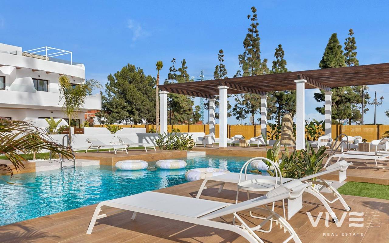 New Build Residential Complex Near Serena Golf and the Mar Menor in Los Alcazares Modern Coastal Living on the Costa Calida Discover this attractive new build residential complex located in Los Alcazares, one of the most popular seaside towns on the Costa Calida. Situated just 500 m from the beaches of the Mar Menor and within walking distance of the town center, this development offers an excellent combination of coastal living, golf surroundings and everyday convenience. Los Alcazares is well known for its relaxed atmosphere, long promenades, warm shallow waters and a wide range of restaurants, shops and services open all year round. Contemporary Apartments Designed for Comfort The development consists of 29 modern homes with 2 or 3 bedrooms, designed with clean architectural lines and high quality finishes. Buyers can choose between ground floor apartments with private garden and terrace, middle floor homes with spacious terraces, or penthouses with private terrace and rooftop solarium offering open views. Many of the properties enjoy views towards Serena Golf and the Mar Menor, creating a calm and pleasant living environment. All homes are designed to maximize natural light and functionality, making them ideal as a permanent residence, holiday home or investment property. High Quality Features and Communal Areas Each property includes a private parking space and a storage room. The specifications are designed to provide comfort and energy efficiency, including double glazed windows with thermal break, pre installation of ducted air conditioning, aerothermal system for domestic hot water, electric shutters in bedrooms and a complete interior and exterior lighting package. Bathrooms are delivered fully equipped with furniture, mirror and shower screen. Residents can enjoy attractive communal areas with landscaped gardens and a communal swimming pool, perfect for relaxing and enjoying the Mediterranean climate. Selected blocks are equipped with lifts for added convenience. Prime Location Between Golf and Sea This residential complex enjoys a privileged location next to Serena Golf, one of the most renowned golf courses in the area, and just a short walk from the calm waters of the Mar Menor. The area is ideal for swimming, sailing, paddleboarding and other water sports throughout the year. Key distances include Mar Menor beaches at 0.5 km, Serena Golf directly next to the development, Los Alcazares town center at 2 km, Cartagena at 22 km and Murcia city at 40 km. Murcia Corvera Airport is approximately 30 km away and Alicante Airport is around 90 km. An Ideal Home or Investment Opportunity With its excellent location, modern design and proximity to both golf and the sea, this new residential complex in Los Alcazares offers an outstanding lifestyle opportunity on the Costa Calida. Contact us today to receive more information or to arrange a private viewing and secure your new home by the Mar Menor.