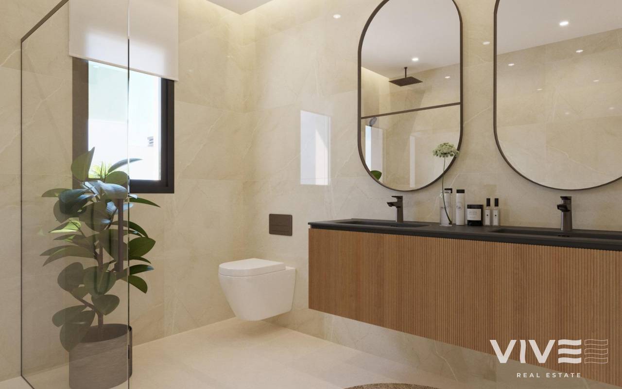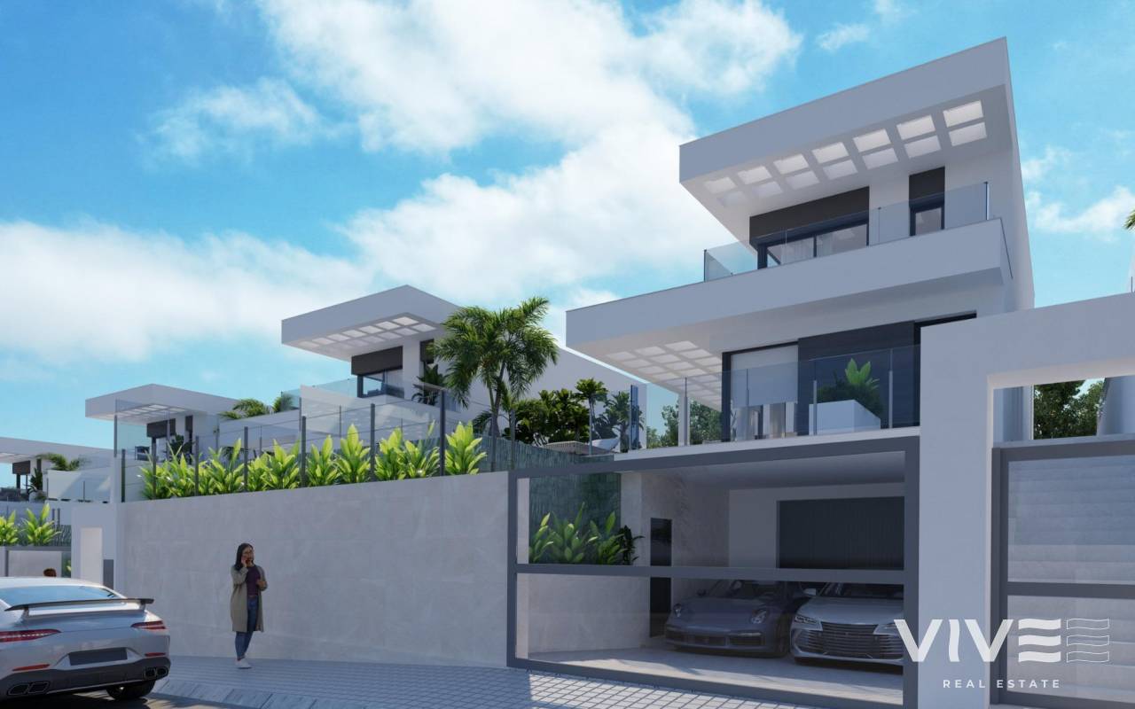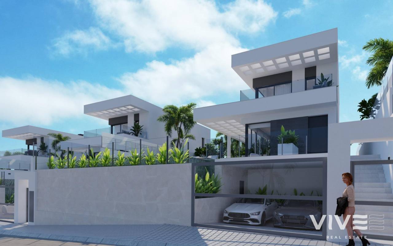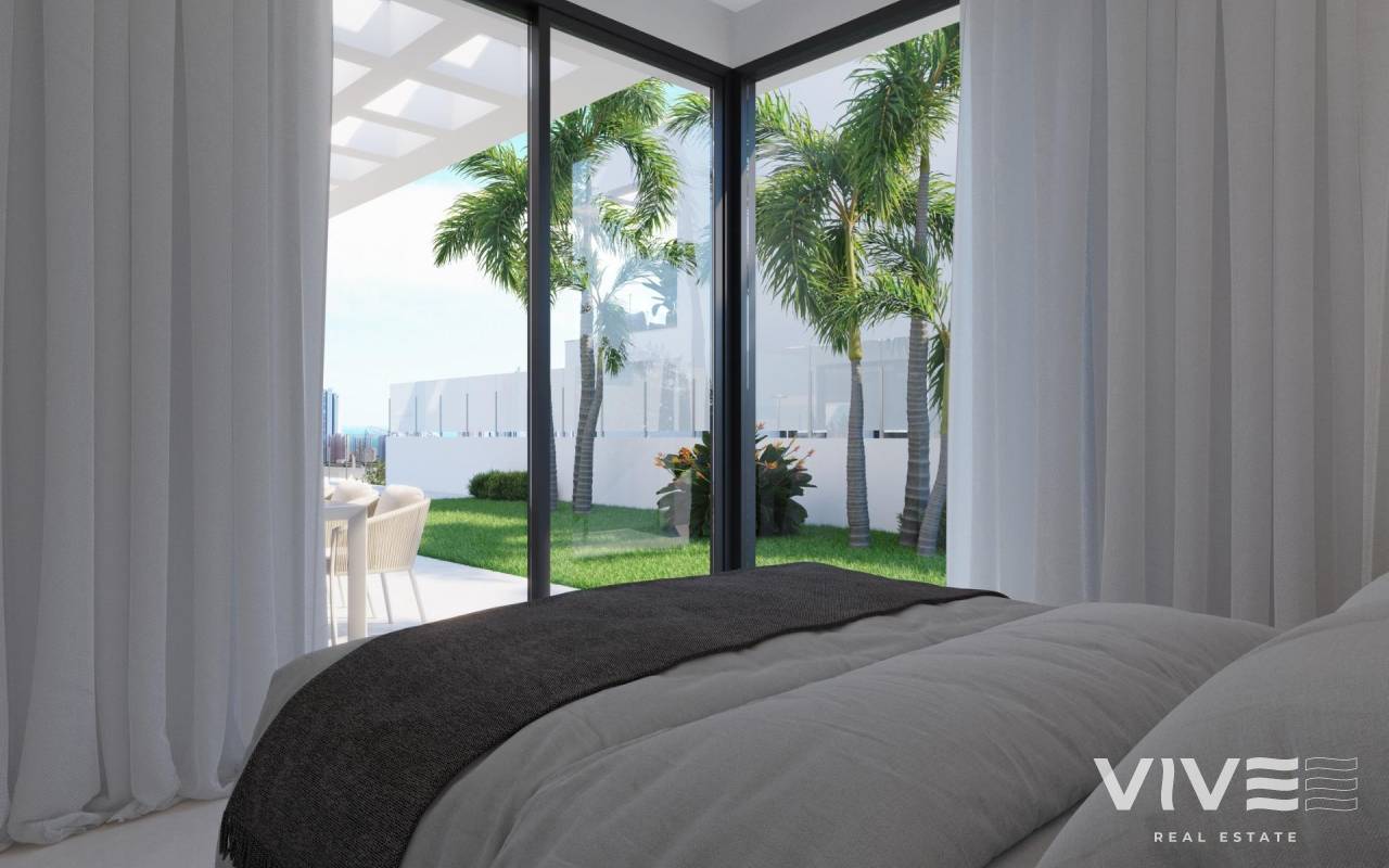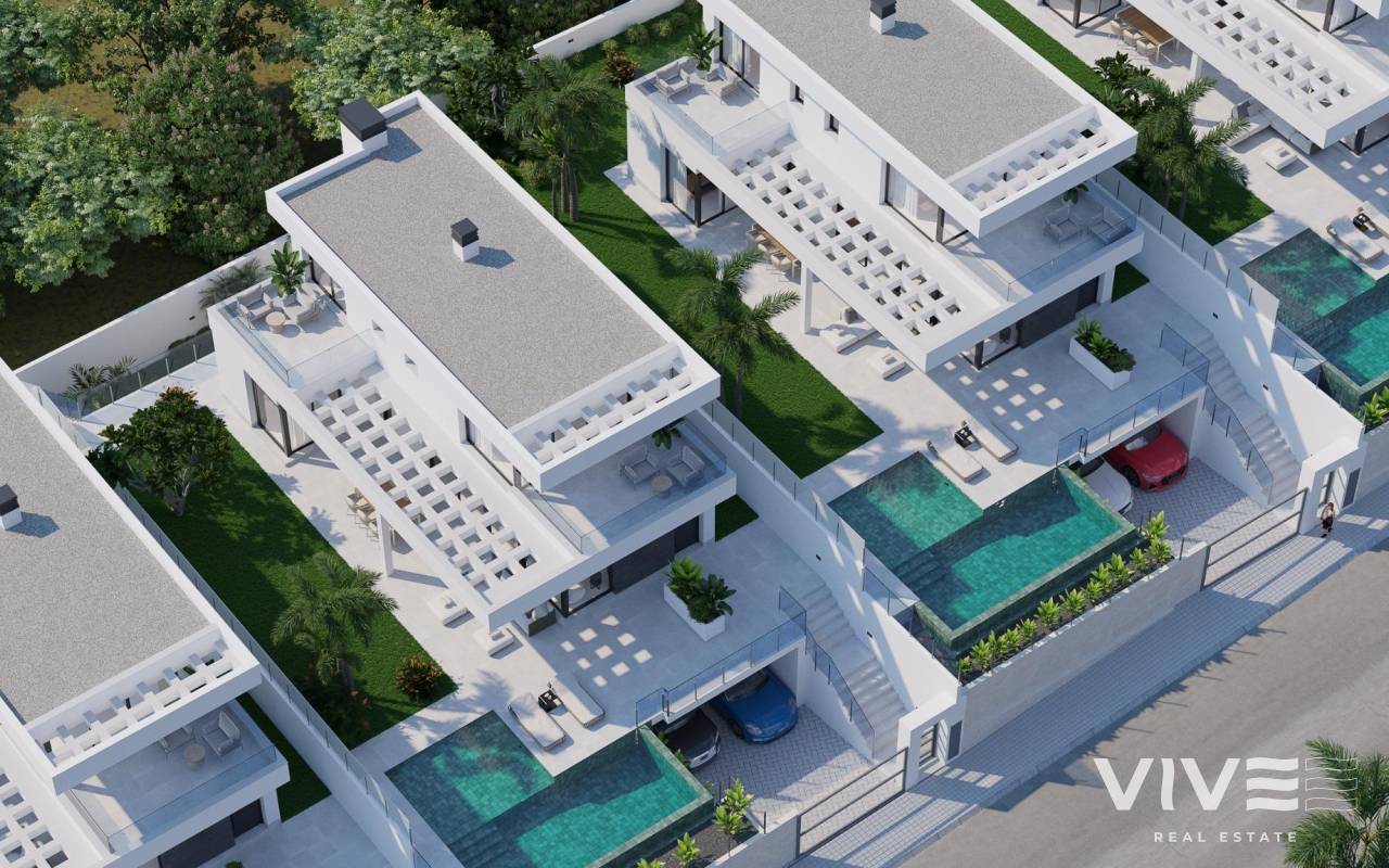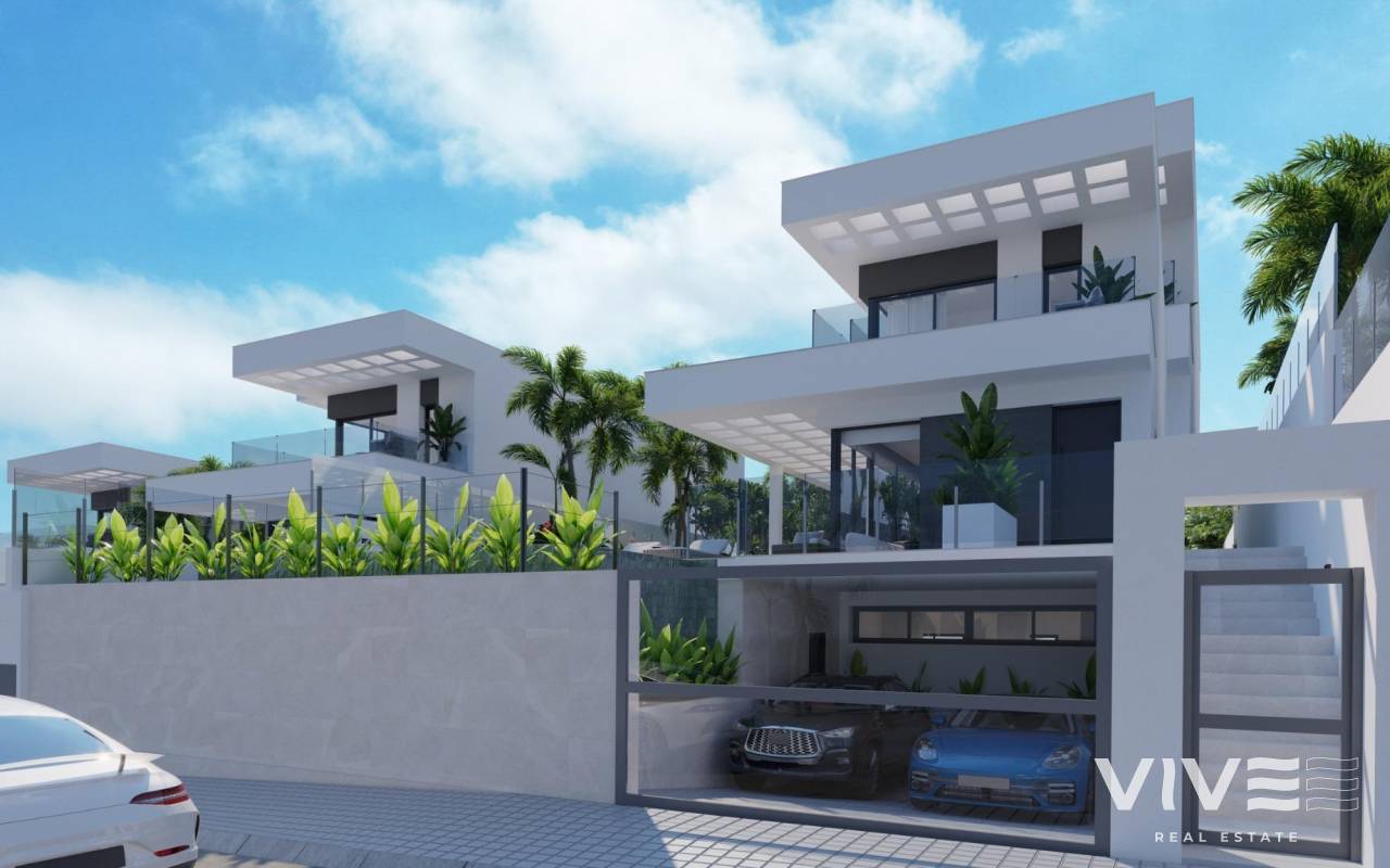 NEW BUILD VILLAS IN FINESTRAT WITH SEA VIEWS New Build Luxury villas in Sierra Cortina, Finestrat. Modern villas with 3 bedrooms and 3 bathrooms, open plan kitchen with lounge area, terrace with magnificent views over Benidorm, private garden with swimming pool, basement, parking and storage room. Villas build with top quality materials. Finestrat located in the Marina Baixa region of the Costa Blanca, close to neighbouring Benidorm and about 40 kilometres from the city of Alicante and the international airport. The village is situated on the mountainside of Puig Campana and offers beautiful views of the mountains, the coast and the Mediterranean Sea. Benidorm is just a five-minute drive from the properties and offers all the services you would need including shops, bars, restaurants, supermarkets, banks, pharmacies and several private international schools.