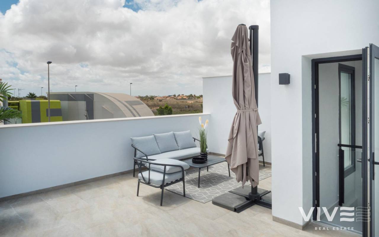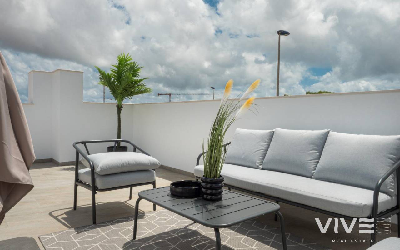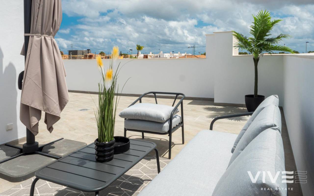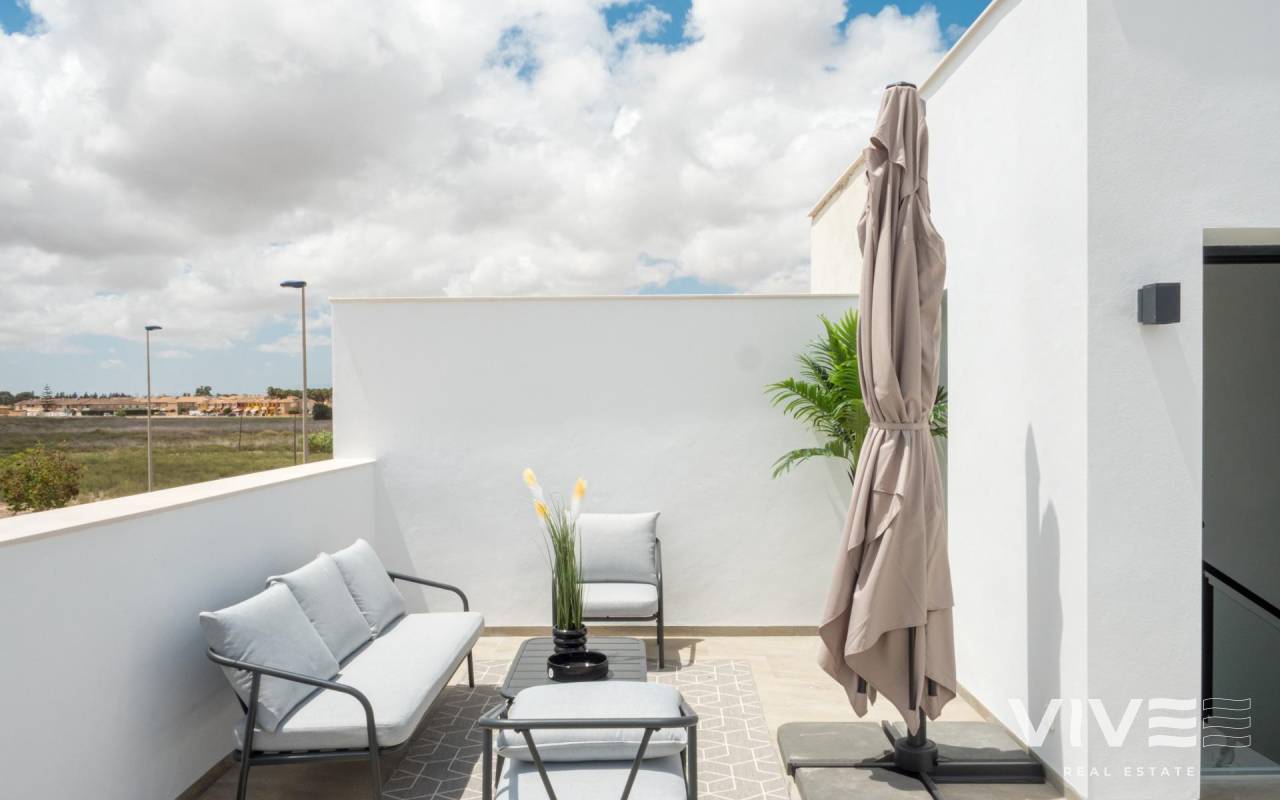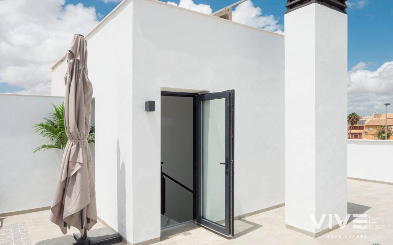 Modern New Build Villas for Sale in San Pedro del Pinatar – Close to Beach and Town Centre Exclusive Residential Project in Costa Cálida This new boutique development consists of just four contemporary independent villas, ideally located in a quiet residential area near the centre of San Pedro del Pinatar, Murcia. Just 1.4 km from the beaches of Lo Pagán, these homes offer the perfect combination of comfort, privacy, and proximity to essential services and coastal attractions. San Pedro del Pinatar is one of the most sought-after destinations on the Costa Cálida, known for its natural salt lagoons, therapeutic mud baths, and a wide variety of leisure, dining, and wellness options. With both the Mediterranean Sea and Mar Menor within easy reach, this location is ideal for enjoying year-round sunshine and a relaxed lifestyle. Contemporary Design and Smart Layout Each villa features: 3 bedrooms and 3 bathrooms, including two en-suite bathrooms Open-plan kitchen and living area, with direct access to a spacious terrace Ground floor bedroom and bathroom, ideal for guests or multi-generational living Private swimming pool with LED lighting and outdoor solar shower Large rooftop solarium for sunbathing, entertaining or relaxing Plot with private parking space The homes have been designed with modern living in mind, offering high-quality finishes and smart installations: Security entrance door Motorised aluminium shutters Pre-installation of ducted air conditioning Underfloor heating in bathrooms Fitted bathrooms with illuminated mirrors and furniture A show villa is available for viewing, allowing you to experience the high standards and layout in person. Prime Location with Excellent Connectivity These villas are perfectly located to enjoy both tranquillity and convenience. All daily services including shops, restaurants, supermarkets, and health centres are within walking distance. In addition, the area is well connected by road and public transport. Distances to main points of interest: Lo Pagán Beach: 1.4 km Mar Menor beaches: 2 km Dos Mares Shopping Centre: 3.5 km Lo Romero Golf Course: 10 km Roda Golf Resort: 9 km Murcia International Airport: 35 km (25 minutes by car) Alicante Airport: 75 km (45 minutes by car) Reserve Your New Villa in San Pedro Today This is a rare opportunity to own a newly built villa in one of the most desirable coastal areas of Murcia. With limited units available, contact us now to receive more information, schedule a visit, or secure your dream home by the sea.