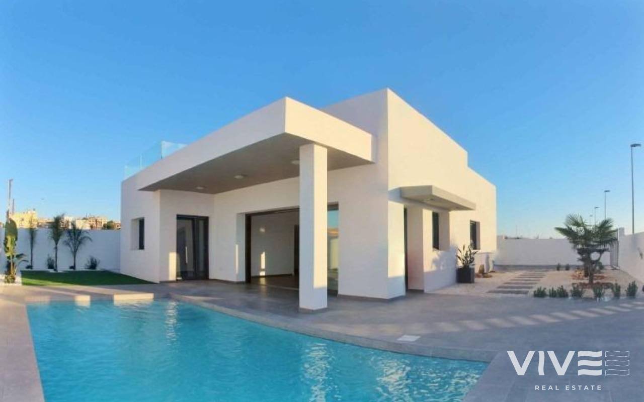 Modern New Build Villas for Sale in Rafal: Costa Blanca Living with Style and Comfort Contemporary Villas in a Charming Spanish Village Discover these exceptional new build villas located on the outskirts of Rafal, a traditional and picturesque town in the heart of the Costa Blanca. Rafal offers a peaceful lifestyle surrounded by orchards, local shops, cafés and friendly neighbourhoods, while still providing excellent access to major amenities. The town is just 30 km from Alicante and its international airport, and only a short drive from beautiful Mediterranean beaches and top golf courses. Premium Villas Designed for Modern Living Each villa is set on a generous plot of more than 370 m², offering ample outdoor space, privacy and comfort. These single level homes feature 3 spacious bedrooms and 2 modern bathrooms, perfectly designed for both family life and holiday living. The expansive outdoor area includes a private swimming pool of 7 x 3.5 m, over 100 m² of open terrace, and a 15 m² covered porch ideal for relaxing in the shade. Buyers also have the option to add a rooftop solarium and storage room at an additional cost, creating even more space to enjoy the Mediterranean climate and panoramic views. High Quality Construction and Energy Efficiency These villas are built to exceptional standards with premium materials and advanced energy saving features. Highlights include Windows by Schüco for maximum insulation and durability Motorised shutters Photovoltaic solar panels for reduced energy consumption Automatic garden irrigation system Motorised vehicle access gate Heated bathroom floors Every detail is designed to provide comfort, efficiency and a stylish contemporary finish. Ideal Location Close to Beaches, Golf and Services Rafal’s strategic location allows easy access to key points of interest Beaches of Guardamar del Segura 9 km Golf courses La Finca and Vistabella 10 km City of Orihuela 7 km Alicante International Airport 30 km Torrevieja 20 km The town itself offers supermarkets, restaurants, schools, medical services and sports facilities, making it a perfect year round residential destination. Enjoy Tranquility, Sun and Mediterranean Life These new build villas in Rafal provide an exceptional opportunity to enjoy a peaceful lifestyle with all modern comforts, a private pool and excellent connectivity to the best of the Costa Blanca at an unbeatable price. Contact us today to secure your new villa in Rafal and start living the Mediterranean life you deserve.