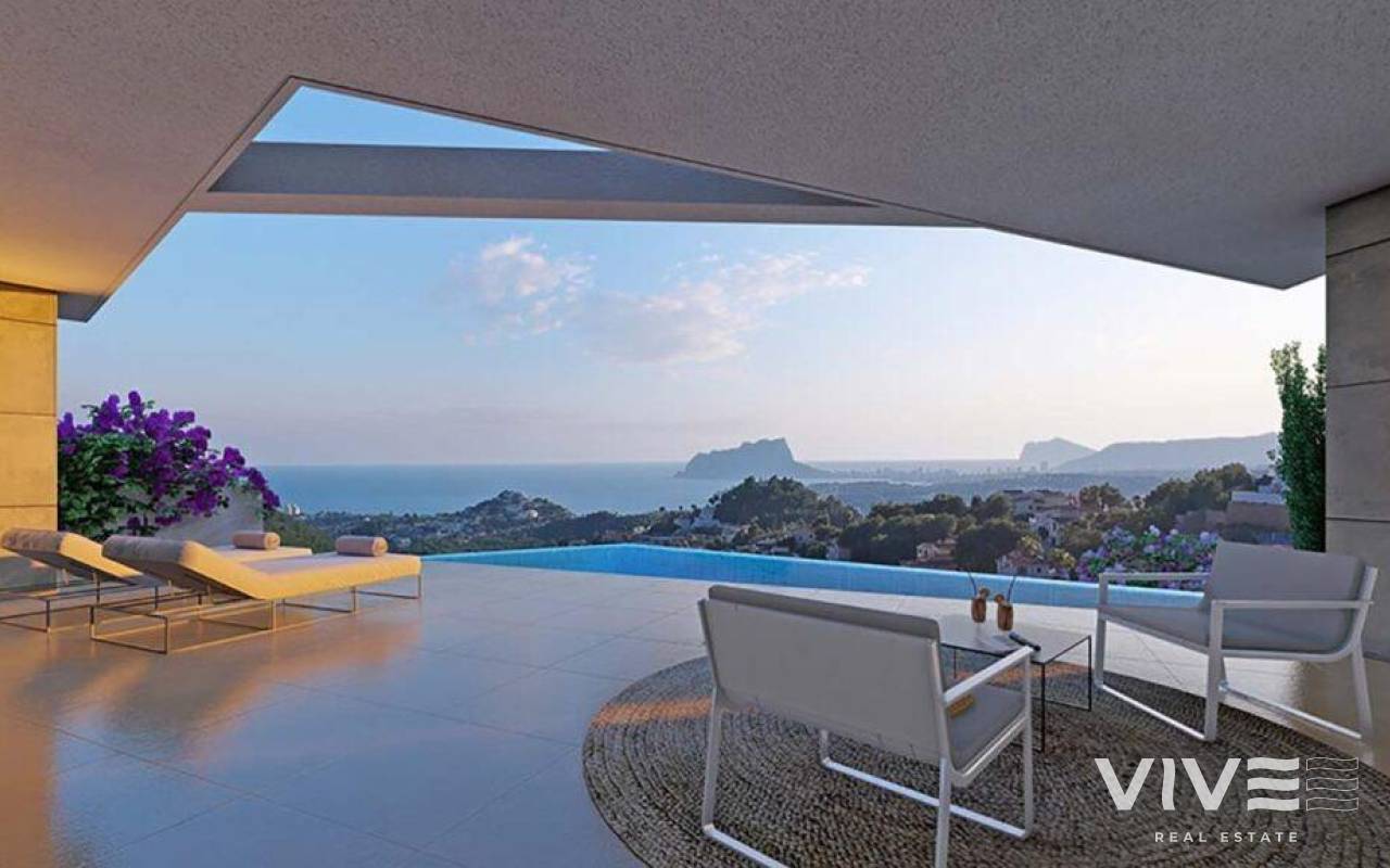 Luxury New Build Villas with Sea Views in Benitachell Exclusive Villas in Golden Valley, Poble Nou de Benitachell Discover this outstanding new build development of 16 independent villas with stunning sea views, located in the prestigious Golden Valley urbanization in Poble Nou de Benitachell, Alicante. This privileged area sits between the popular coastal towns of Moraira and Javea, offering a peaceful residential environment surrounded by nature, yet close to beaches, restaurants and essential services. The elevated position guarantees panoramic Mediterranean views and a tranquil lifestyle on the Costa Blanca. Modern Architecture and Elegant Design These contemporary villas showcase avant garde architecture combined with spacious interiors filled with natural light. Each home has been carefully designed to deliver comfort, privacy and functionality, blending indoor and outdoor living seamlessly. Clean lines, large windows and open plan spaces create an atmosphere of light, sophistication and Mediterranean charm. Spacious Layouts with Private Gardens and Pools Each villa offers approximately 290 m2 built on private plots of over 300 m2. Homes feature 3 or 4 bedrooms, with en suite bathrooms, plus a guest toilet. Distributed over three levels, the layout includes a basement with a private garage for two cars and, in some units, additional space for a gym, extra bedroom, laundry room or storage. The ground floor hosts the open plan living and dining area with a fully equipped kitchen, direct access to the terrace and private swimming pool, one bedroom with en suite bathroom and a guest toilet. The upper floor includes two additional bedrooms with en suite bathrooms and a large open terrace ideal for enjoying sea views. High Quality Features and Energy Efficiency All villas include a private swimming pool, barbecue area and chill out zone. Specifications include electric shutters, an armored entrance door, fully fitted kitchens with Bosch appliances, aerothermal system for domestic hot water, and fully installed ducted air conditioning. The development boasts an A energy rating, ensuring efficiency, comfort and reduced energy consumption. Prime Location on the Costa Blanca Poble Nou de Benitachell is a charming town known for its authentic Spanish atmosphere, beautiful countryside and proximity to some of the best beaches on the Costa Blanca. The area offers supermarkets, restaurants, medical services and international schools nearby. Key distances: Moraira beach 6 km Javea beach 8 km Benitachell town center 2 km La Sella Golf 12 km Marina de Moraira 7 km Alicante Airport 95 km Valencia Airport 120 km Your Dream Home with Sea Views These exclusive new build villas in Golden Valley combine luxury, design and a privileged location with breathtaking sea views. Contact us today to arrange a private viewing and secure your new Mediterranean home in Benitachell.