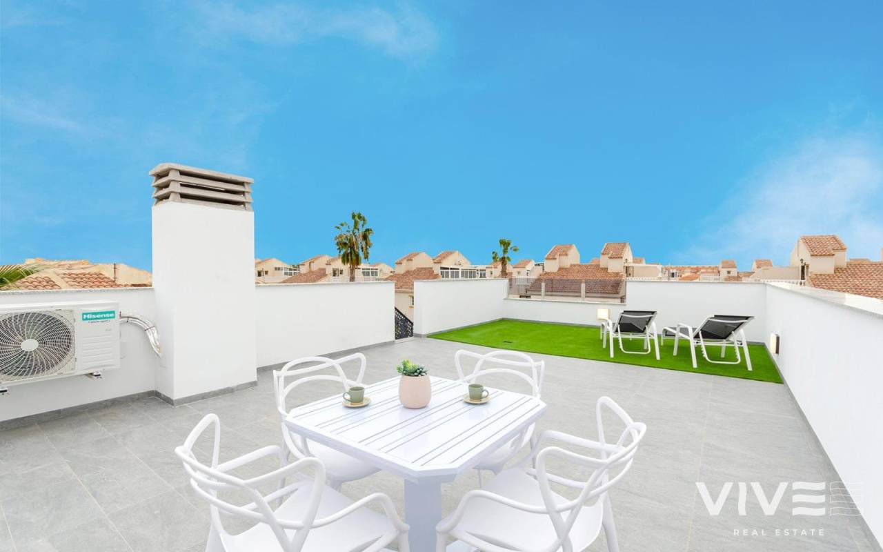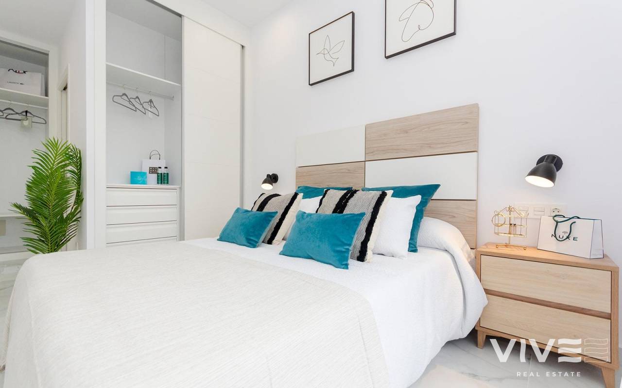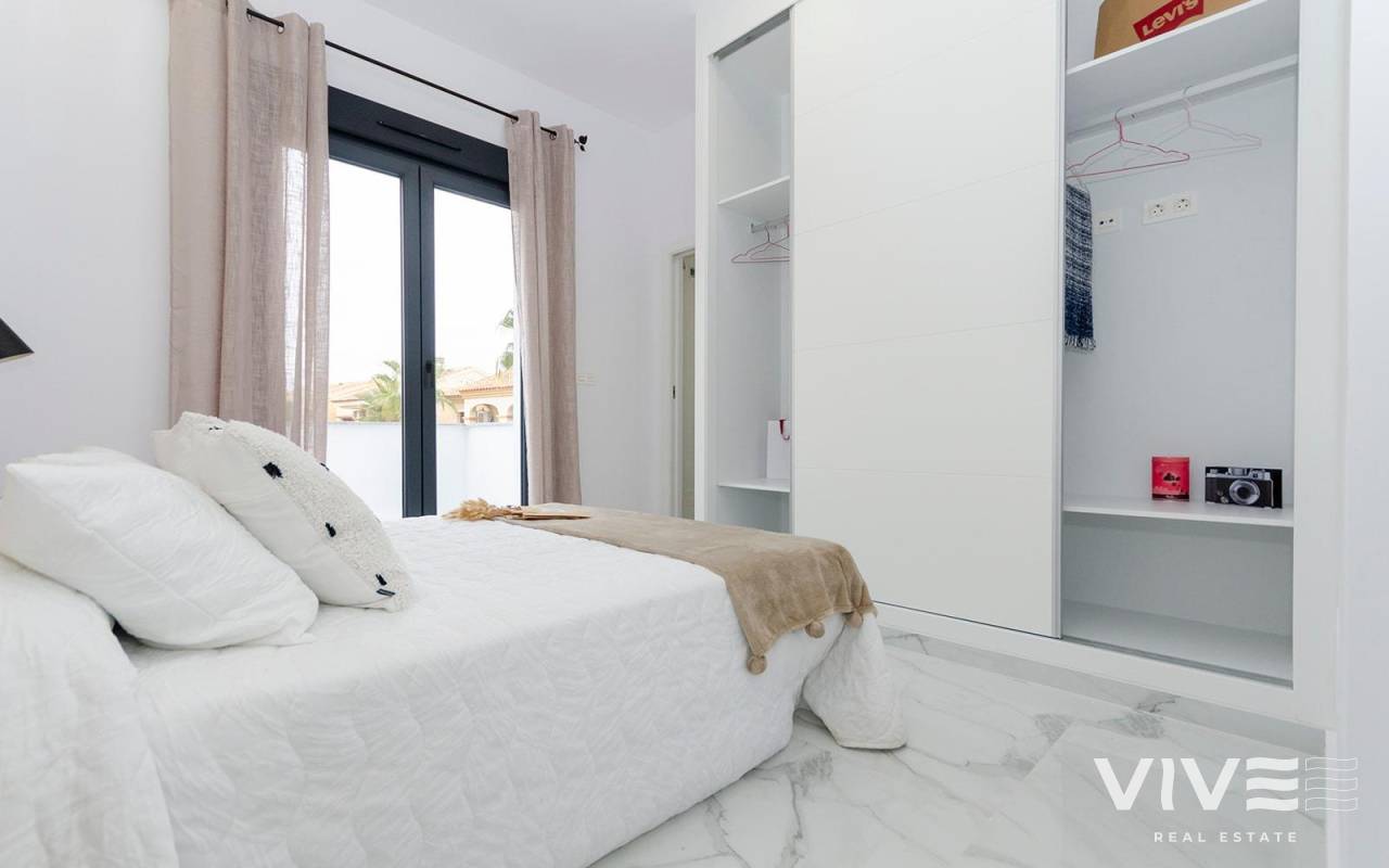 NEW BUILD VILLAS IN TORREVIEJA New Build villas in Torreta, Torrevieja. Beautiful New Build villas build over 2 floor with 3 bedrooms, 3 bathrooms, open plan kitchen with lounge area, fitted wardrobes, terrace and private solarium in some units. Villa comming with garden with private pool and parking space on the plot. Torrevieja is a Spanish town in the province of Alicante, on the Costa Blanca. It is known for its typically Mediterranean climate and coastline. It has boardwalks with resorts along its sandy beaches. The small Museum of the Sea and Salt houses exhibitions on the fishing and salt history of the city. In the interior, the Lagunas de La Mata-Torrevieja Natural Park has trails and two salty lagoons, one pink and the other green. Alicante airport located 40 minutes away and Murcia airport about 1 hour away.