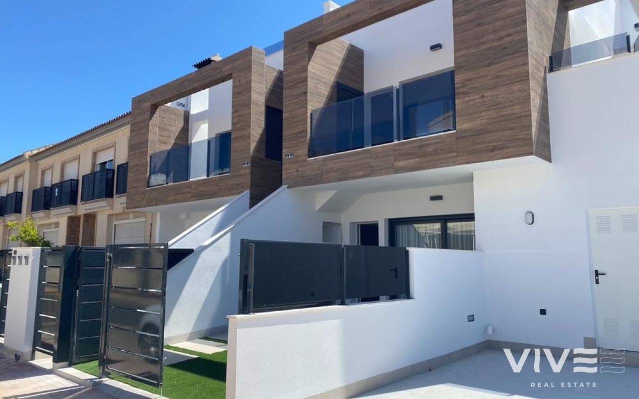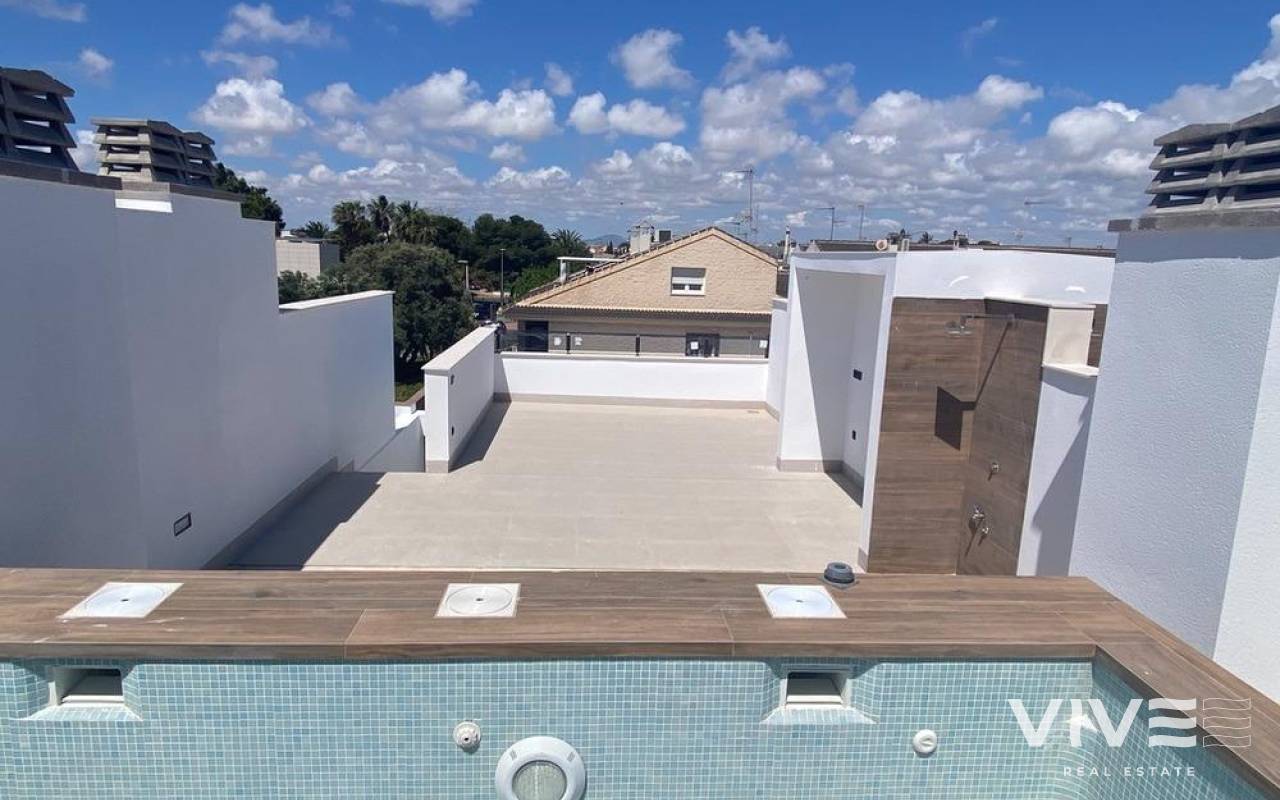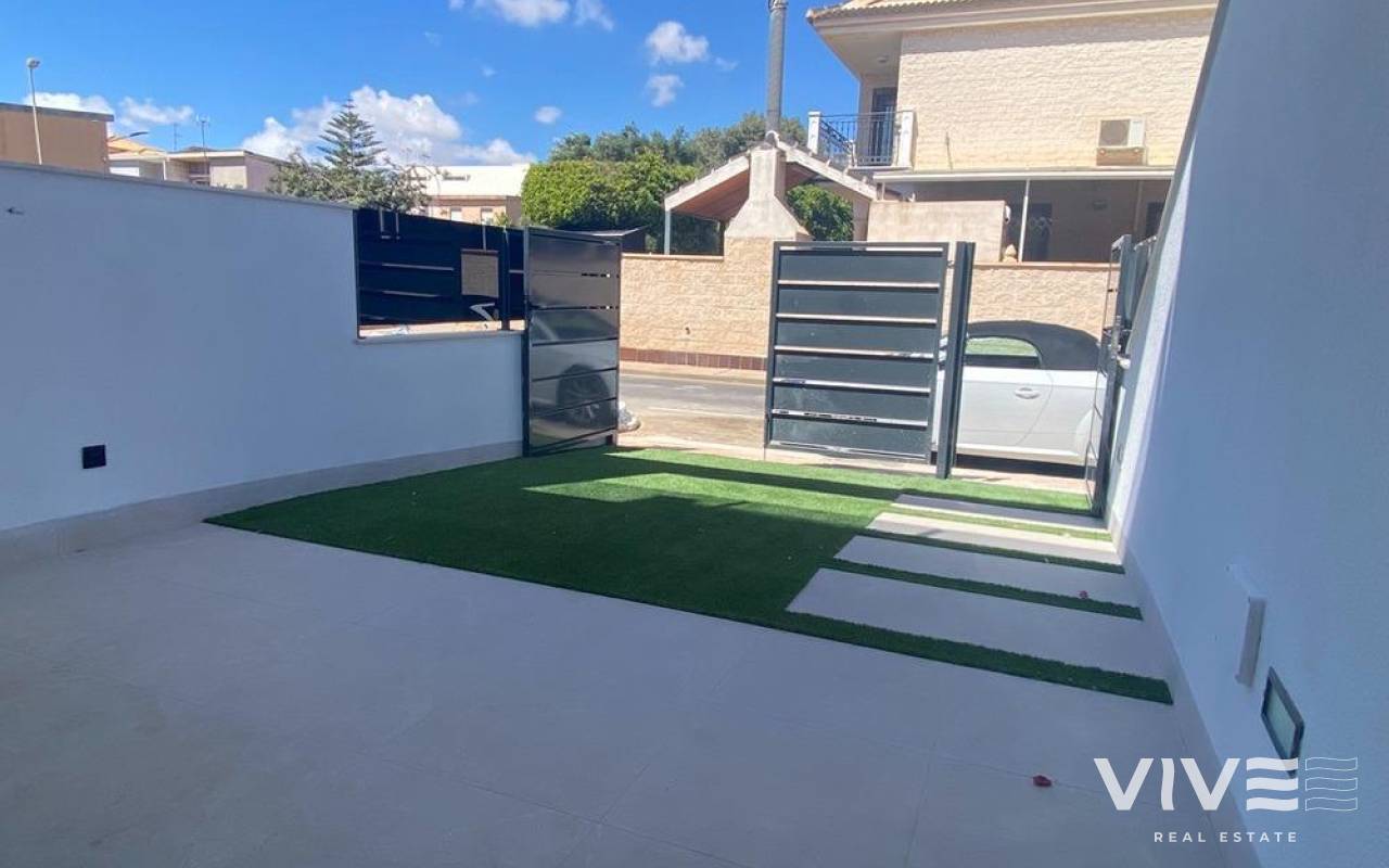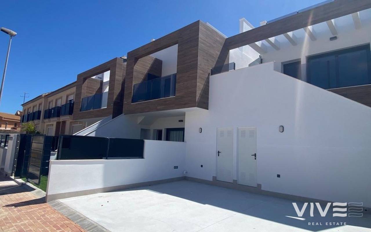 Newly built bungalows in Lo Pagán: Modern living close to the beach Prime location in Lo Pagán, San Pedro del Pinatar Discover the perfect coastal lifestyle with these newly built bungalows in Lo Pagán, a charming area of San Pedro del Pinatar. Located just 1.2 km from the beautiful Villa Nanitos Beach, you are a 15-minute walk from sandy beaches and the iconic Molino Quintín. This prime location is perfect for beach lovers and water sports enthusiasts, with yacht clubs and marinas nearby. Plus, all essential amenities such as supermarkets, bars and restaurants are just a few minutes' walk away. Features These stylish bungalows feature 2 bedrooms, 2 bathrooms, an open-plan kitchen and a living room. The bungalows have pre-installation for air conditioning, fitted wardrobes and modern interiors. The ground floor units have a large terrace with the option of adding a private pool (available at an additional cost), while the upper floor units have a private solarium with a pool included, perfect for relaxing under the Mediterranean sun. High-quality finishes Each bungalow includes a parking space, and all apartments have high-quality finishes. Features include Bosch kitchen appliances, electric shutters, pre-installation for ducted air conditioning, fully equipped bathrooms and LED lighting both inside and outside. Ideal for year-round living Lo Pagán offers a peaceful lifestyle with a welcoming and established community. Residents can enjoy activities throughout the year thanks to the region's mild winter climate. The area has indoor swimming pools, sports facilities and a wide variety of social events. The natural mud baths and the calm waters of the Mar Menor add to its appeal, making it a privileged destination for wellness and relaxation. Nearby attractions Dos Mares Shopping Centre: 5 minutes by car Murcia Airport (Corvera): 30 minutes by car Alicante Airport: 1 hour by car Golf courses and marinas are within easy driving distance, making it an excellent location for both leisure and convenience.