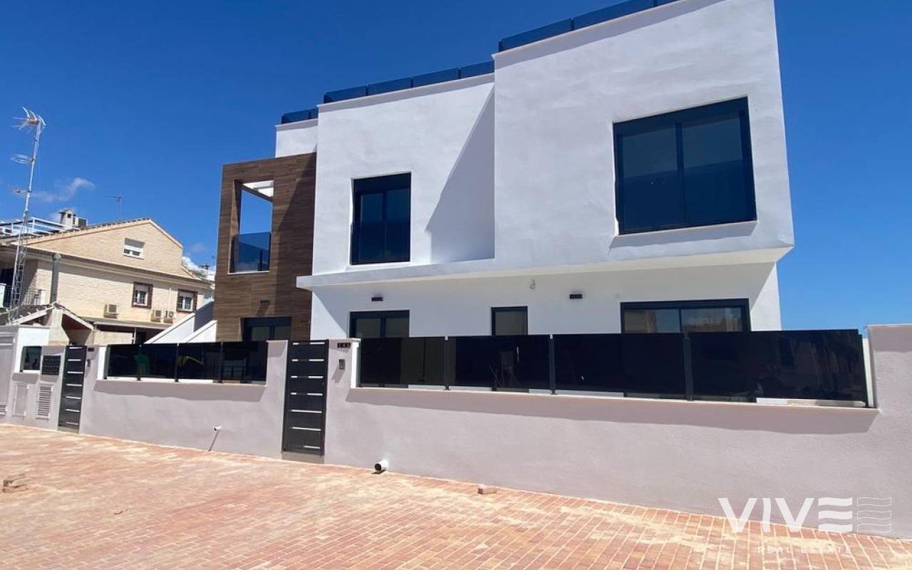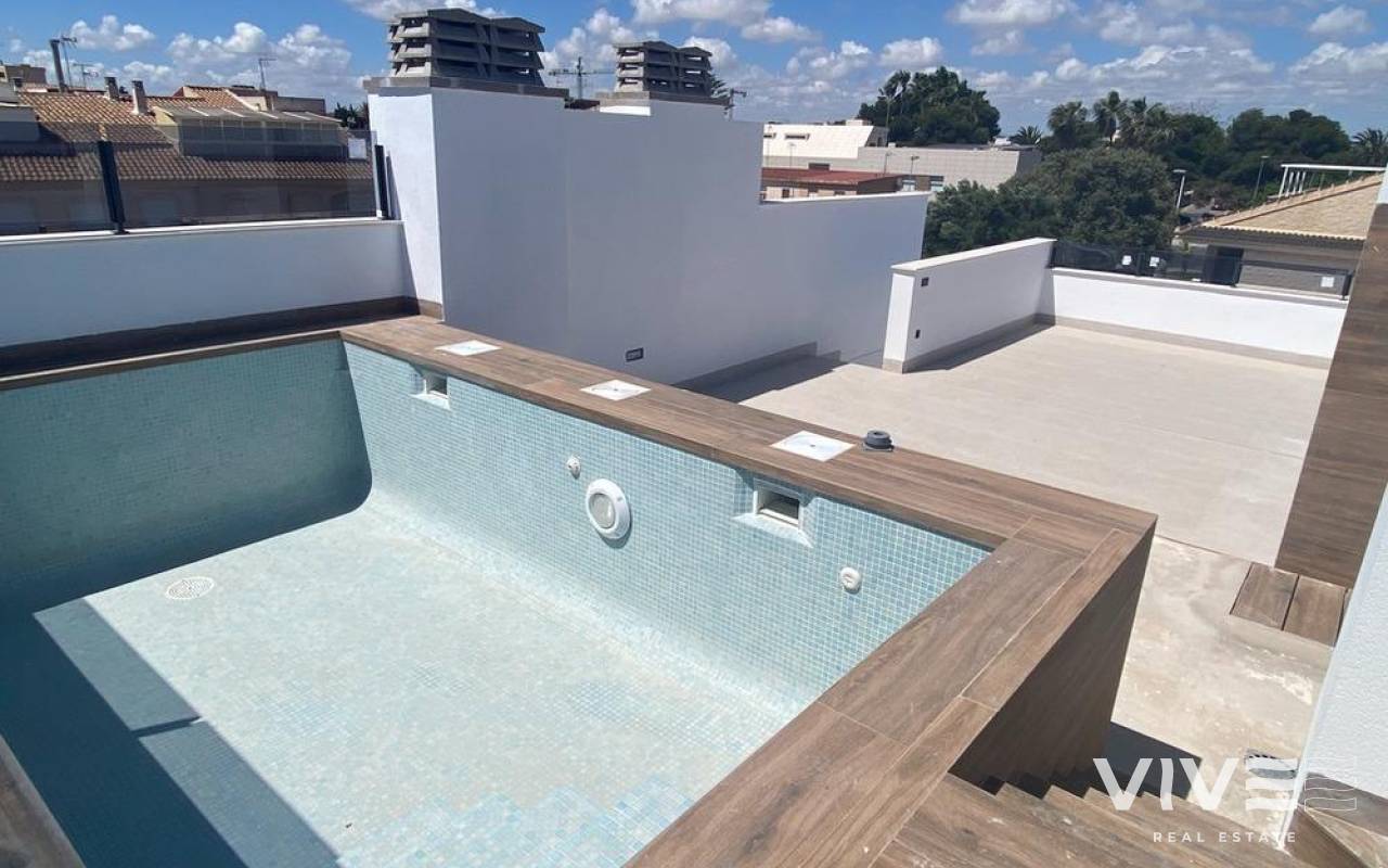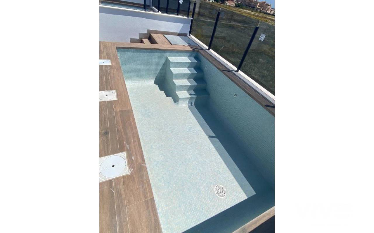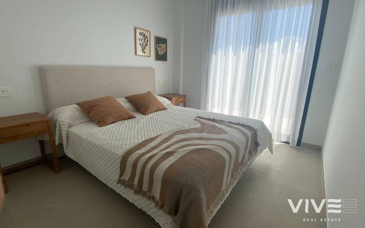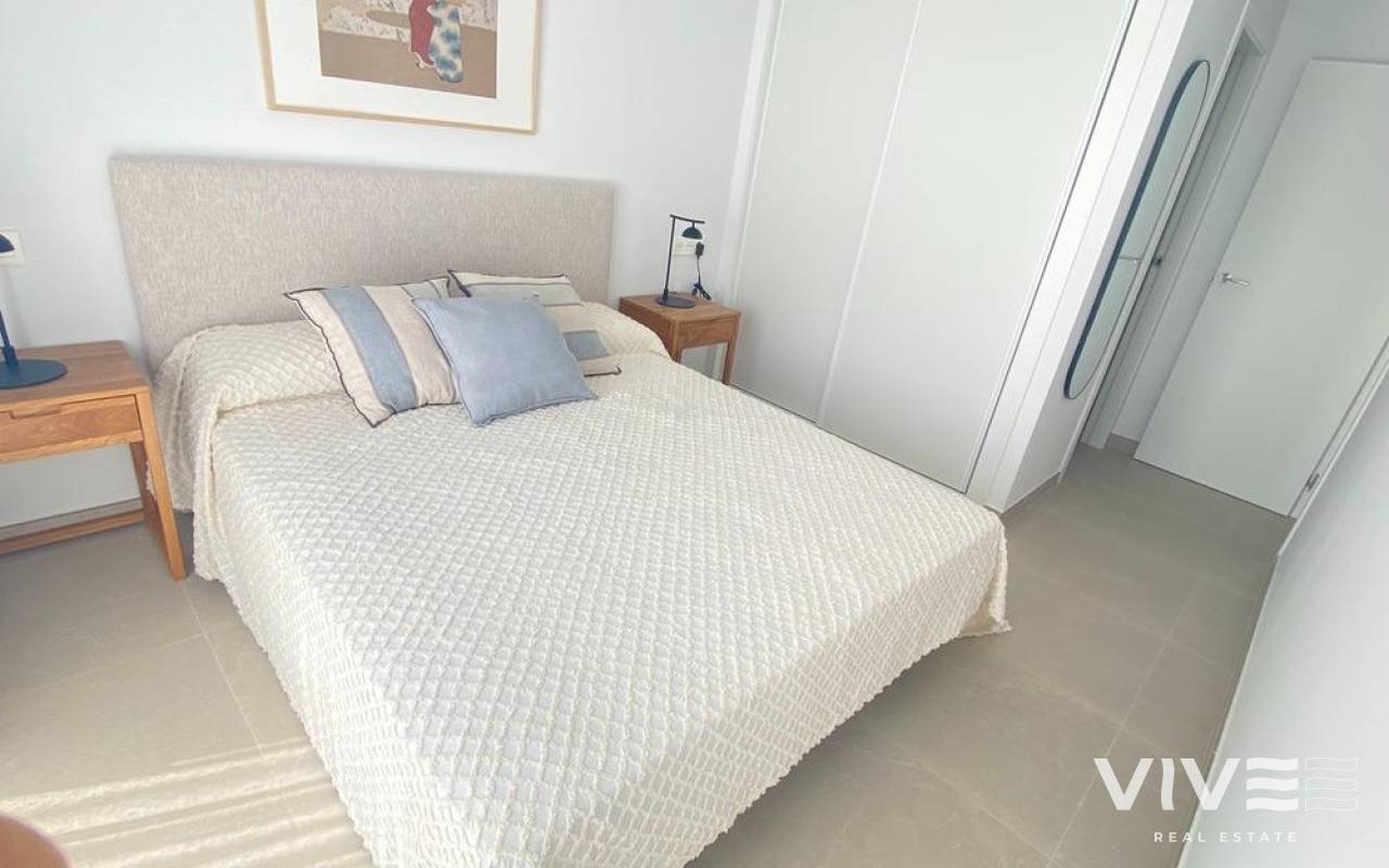 Newly built bungalows in Lo Pagán: Modern living close to the beach Prime location in Lo Pagán, San Pedro del Pinatar Discover the perfect coastal lifestyle with these newly built bungalows in Lo Pagán, a charming area of San Pedro del Pinatar. Located just 1.2 km from the beautiful Villa Nanitos Beach, you are a 15-minute walk from sandy beaches and the iconic Molino Quintín. This prime location is perfect for beach lovers and water sports enthusiasts, with yacht clubs and marinas nearby. Plus, all essential amenities such as supermarkets, bars and restaurants are just a few minutes' walk away. Features These stylish bungalows feature 2 bedrooms, 2 bathrooms, an open-plan kitchen and a living room. The bungalows have pre-installation for air conditioning, fitted wardrobes and modern interiors. The ground floor units have a large terrace with the option of adding a private pool (available at an additional cost), while the upper floor units have a private solarium with a pool included, perfect for relaxing under the Mediterranean sun. High-quality finishes Each bungalow includes a parking space, and all apartments have high-quality finishes. Features include Bosch kitchen appliances, electric shutters, pre-installation for ducted air conditioning, fully equipped bathrooms and LED lighting both inside and outside. Ideal for year-round living Lo Pagán offers a peaceful lifestyle with a welcoming and established community. Residents can enjoy activities throughout the year thanks to the region's mild winter climate. The area has indoor swimming pools, sports facilities and a wide variety of social events. The natural mud baths and the calm waters of the Mar Menor add to its appeal, making it a privileged destination for wellness and relaxation. Nearby attractions Dos Mares Shopping Centre: 5 minutes by car Murcia Airport (Corvera): 30 minutes by car Alicante Airport: 1 hour by car Golf courses and marinas are within easy driving distance, making it an excellent location for both leisure and convenience.