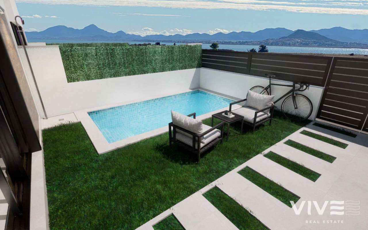 Newly Built Villas with Private Pool in Los Alcázares, Costa Cálida Exclusive Modern Villas Just 700 Metres from the Sea Discover this exclusive residential development of 9 new build villas in Los Alcázares, one of the most sought-after locations on the Costa Cálida due to its proximity to the sea, relaxed atmosphere and excellent amenities. Each villa has a private pool, separate covered garage and has been designed to offer comfort, functionality and contemporary style. Duplex Design with Solarium and Ideal Orientation The properties are distributed over two floors and have 3 bedrooms and 2 bathrooms, a fully equipped open-plan kitchen, a spacious living-dining room, a terrace and garden on the ground floor, a terrace on the first floor and a private solarium on the roof with a summer kitchen. Thanks to their different orientations, you can enjoy the sun all day long, all year round. High-quality fittings These villas are designed with top quality materials and offer: Private swimming pool with outdoor shower Kitchen equipped with appliances: fridge, oven, built-in microwave, ceramic hob, extractor hood and integrated dishwasher Built-in wardrobes with drawers Fully fitted bathrooms with mirror cabinet and shower screens Pre-installation for air conditioning Installation of 2 solar panels Summer kitchen on the solarium Covered parking space on the plot Unbeatable location on the Costa Cálida Located just 700 metres from the beaches of the Mar Menor, these homes allow you to enjoy a unique natural environment with calm and warm waters. Los Alcázares combines a relaxed lifestyle with all amenities close at hand: supermarkets, restaurants, sports facilities and health centres. Ideal for both permanent residence and holidays. Distances to points of interest Mar Menor beach: 0.7 km Golf courses (Roda, La Serena, Mar Menor Golf): between 3 and 10 km Murcia International Airport: 30 km Cartagena: 22 km Dos Mares shopping centre: 13 km Los Alcázares marina: 2 km Your haven of sunshine and tranquillity in the Mediterranean These villas offer the perfect combination of modern design, privacy, comfort and a privileged location. Contact us today and schedule your visit to discover your next home by the sea.