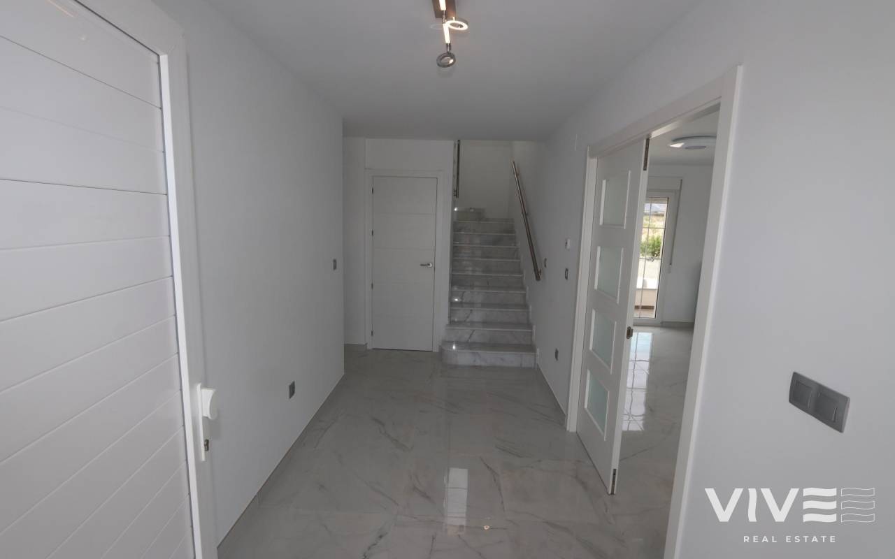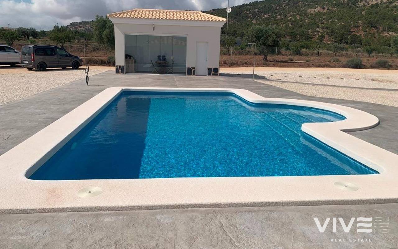 NEW BUILD VILLAS IN PINOSO You can choose Villas with traditional Spanish touches or super modern finishing, bright and clean. Different legal building plots available (rustic with minimum 10.000 m2), some walking distance to town, some totally private and our most popular ones are within 5-10 mins drive to a town. We have a plot for every taste, all with amazing views and all have mains water + electric included in the price and high speed internet available. From the biggest and best builder in the area and use top quality materials for a perfect finish. All houses include 2m stamped concrete terrace around the pool (colour and pattern to choose), 1m around the house, gated entrance, 3.000 m2 fencing, pre-installed ducted aircon, standard kitchen, security door, german tilt and turn windows (or sliding if prefered), built-in fireplace and chimney, pre-installation for tv and internet, gravel driveway plus a few meters around the house, septic tank. Bathrooms include a shower column, shower tray or bath, sink units (various colours to choose from) with sinks, taps and mirrors, plus a big selection of wall tiles. Wide selection of ceramic floor tiles, different colours, wood effect, etc. Kitchens include cabinets with standard doors and handles, as per plans provided, stainless steel sink and tap, pre-installation for oven, dishwasher, extractor. Various granite worktops to choose from included in the budget, other stone worktops available as extras. White goods not included. Marble staircase (cream, white, or grey) and railings included, plus railings for the front porch. Big fixed glass window on the staircase for extra light. Choice of tiles and steps design for swimming pool. Choice of the granite for the houses' exterior steps and window sils. You can customise the house to suit, most internal changes are free of charge, the houses can be extended and we can even build your own design. Upgrade to bigger pool, single or double garage, guest house, etc. at an extra cost. The beautiful and thriving town of Pinoso is approximately 45 minutes inland from Alicante and the white beaches of Costa Blanca and close to the Murcia, Alicante border It has a population of just under 8,000. Pinoso, also known as El Pinos is named after the pine trees that cover the areas mountain ranges. Pinoso provides a Spanish rural lifestyle, no traffic lights, hardly any traffic, practically the only jams are caused by the tractors taking the grapes to the Bodega. The fields are planted with vines, almonds and olives. In February the fields are filled with pink almond blossom. Pinoso has many bars, restaurants and shops, a new 24 hour medical centre, dentists, two primary schools and 1 secondary school, a theatre. There's an excellent Sports Centre with outdoor swimming pools, tennis courts, football pitches and gymnasium, library and many other facilities including a beautiful picnic area among the pines, complete with barbecues, seating areas and running water.
