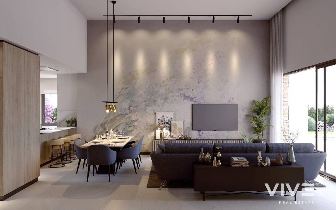 Contemporary Villas with Private Pool at La Finca Golf Resort, Algorfa Exclusive Homes in a Prestigious Golf Community Located within the renowned La Finca Golf Resort in Algorfa, Costa Blanca South, these brand new villas offer the perfect blend of modern design, comfort, and Mediterranean lifestyle. Surrounded by nature and tranquility, this residential setting provides a peaceful environment while still being close to all essential services and leisure options. Elegant Design on a Single Level Each villa is distributed on one floor, featuring 3 spacious bedrooms with built-in wardrobes and a walk-in closet in the master suite. The 2 fully equipped bathrooms include suspended furniture, mirrors, walk-in showers with glass screens, and underfloor heating for maximum comfort. The open-plan kitchen with breakfast bar seamlessly integrates with the living and dining area, creating a bright and functional space. A separate laundry area adds convenience to daily living. Outdoor Living with Private Pool and Garden Large sliding glass doors connect the living room to the terrace and garden, where you will find a built-in pergola and a private swimming pool, the ideal setting to enjoy warm Mediterranean evenings. Each home also benefits from a semi-finished basement of 171 m2 with natural ventilation, offering endless possibilities for customization such as a gym, cinema room, or guest suite. Prime Location on the Costa Blanca La Finca Golf Resort is one of the most prestigious golf courses in the region, offering residents a lifestyle surrounded by nature, sports, and relaxation. The area of Algorfa is known for its peaceful charm while being just a short drive from beaches, shopping centers, and cultural attractions. Key distances from the villas: La Finca Golf Clubhouse: walking distance Beaches of Guardamar del Segura: 20 km Zenia Boulevard Shopping Center: 15 km Alicante Airport: 40 km Murcia Airport: 55 km Torrevieja: 20 km Mediterranean Lifestyle at Its Best These villas combine the tranquility of a natural environment with the convenience of modern living, making them ideal as a permanent residence, holiday retreat, or investment. With high-quality finishes, private outdoor spaces, and a prime location near golf and beaches, they offer everything you need for a privileged life on the Costa Blanca. Contact us today for more information or to arrange a visit and discover your new villa at La Finca Golf Resort in Algorfa.