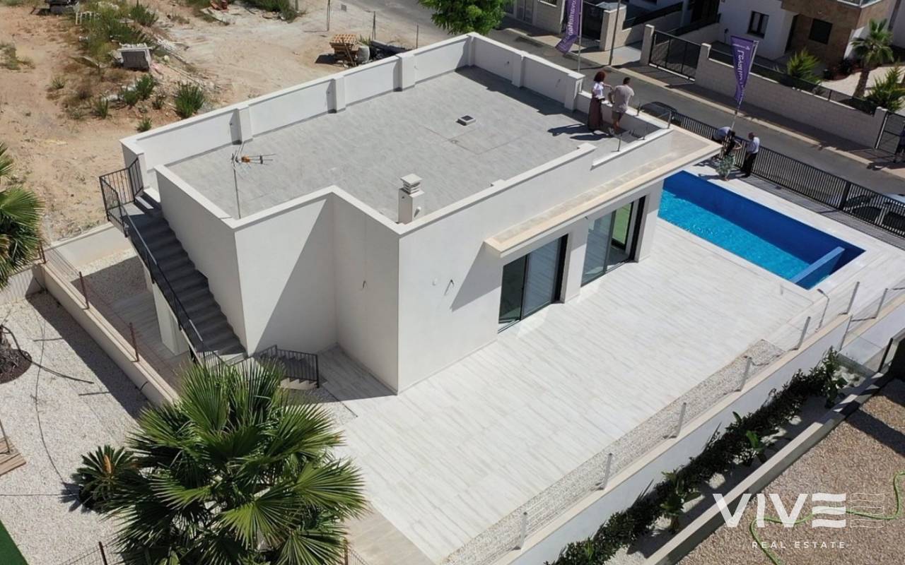 BRAND NEW VILLAS ON ONE LEVEL IN POLOP !!! VILLA thought and designed to make the most of the spaces, on a single floor with a minimum plot of 400 m2, independent plot, closed perimeter area, private pool, parking area, motorized access, garden finished with gravel and ornamental plants. The VILLA is distributed in ONE SINGLE FLOOR plus SOLARIUM distributed in open kitchen, living room, 3 bedrooms, 2 bathrooms and a large terrace. Polop is a typical Spanish town 8 km from Benidorm and its beaches and 4 km from La Nucía, considered the city of sports. Mount Ponoig behind these houses not only creates a very favorable microclimate in the area, but also gives you the chance to go on beautiful mountain excursions.