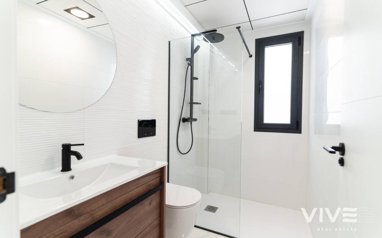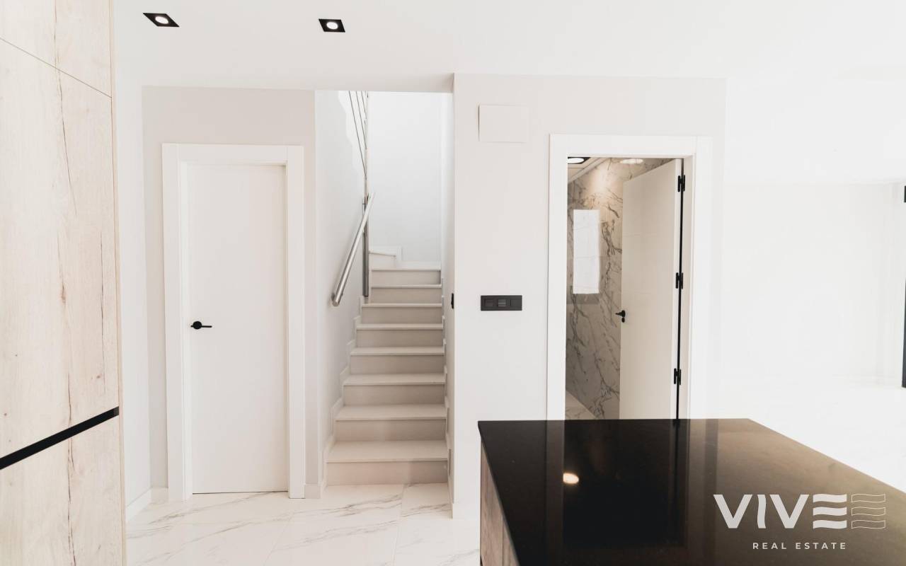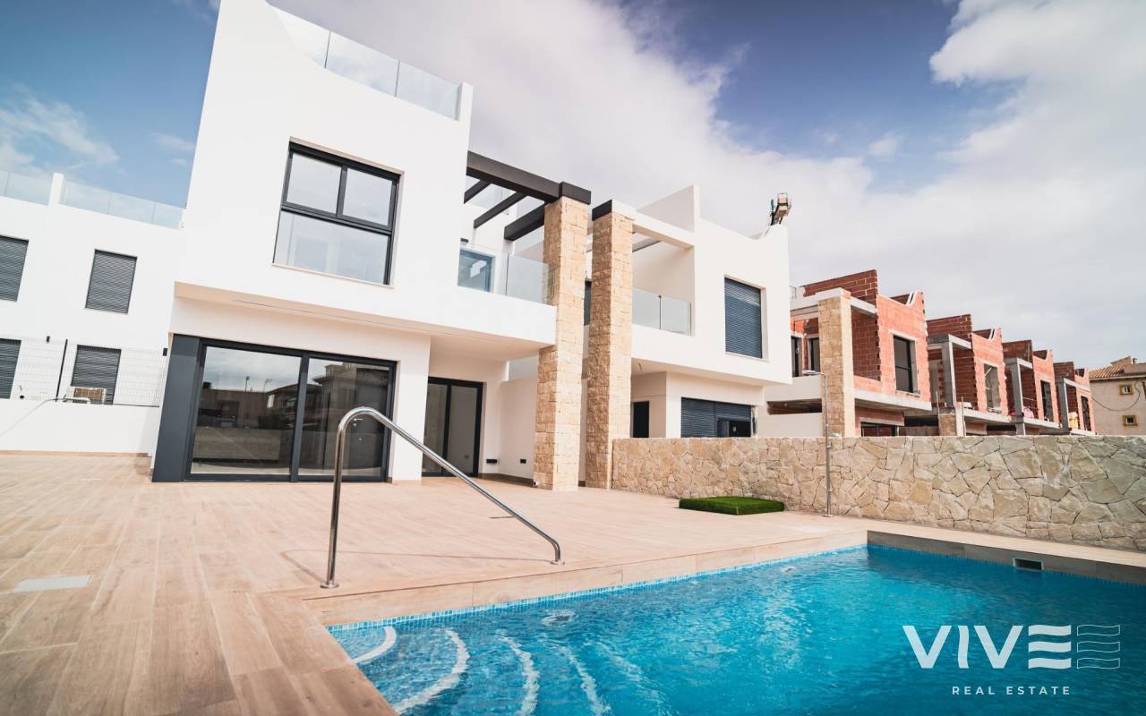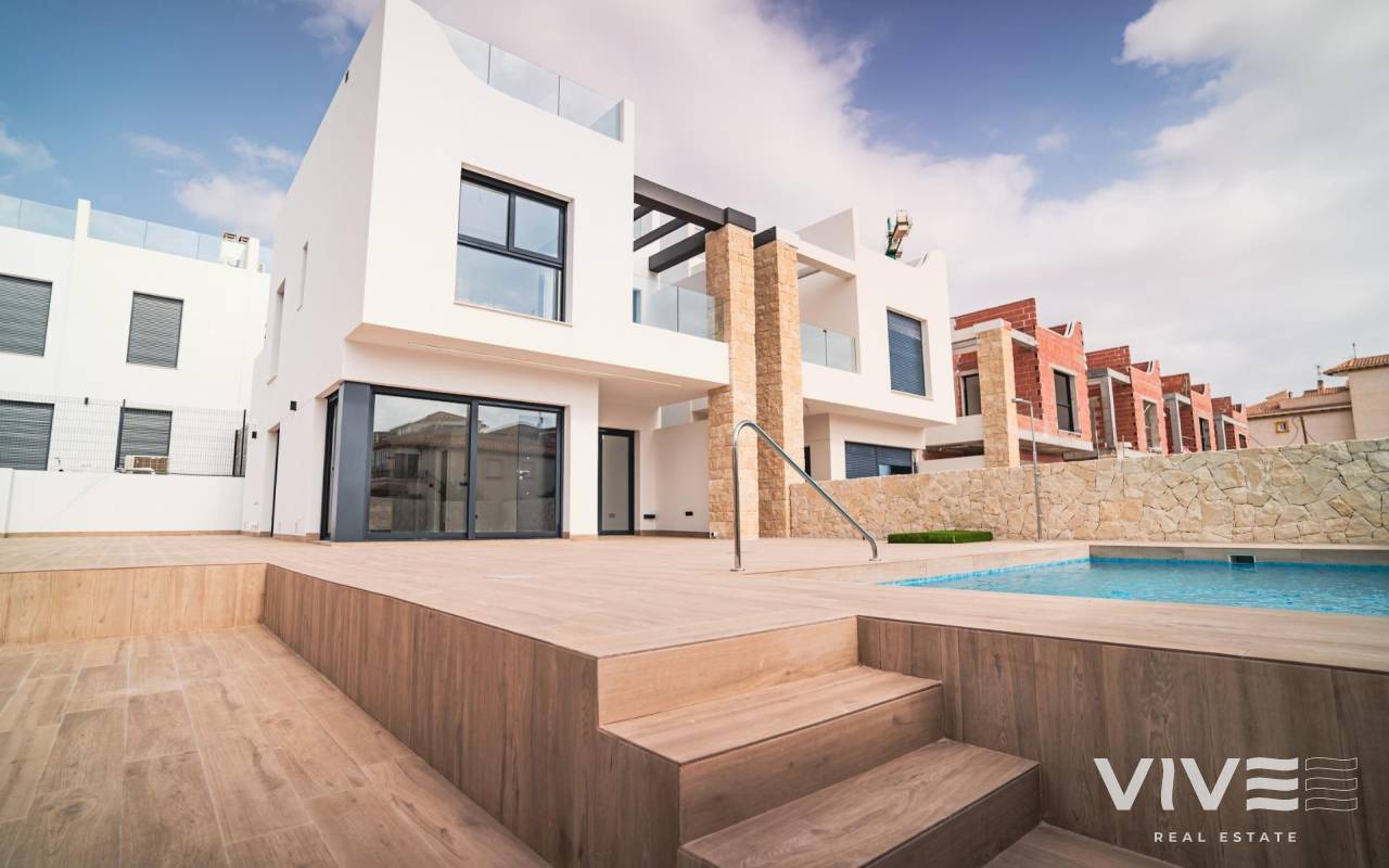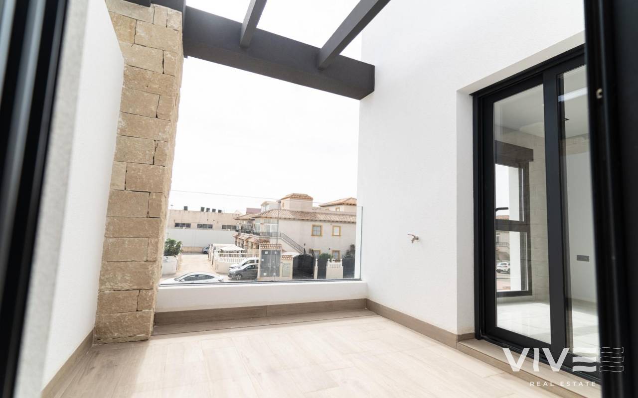 NEW BUILD RESIDENTIAL COMPLEX IN PUNTA PRIMA New Built residential complex of bungalow apartments and 7 detached villas in Punta Prima. New Build villas are distributed over two floors, plus the sunny roof terrace. On the ground floor there is a bright and spacious living room with its open plan kitchen, 1 bedroom with fitted wardrobe and 1 bathroom. On the first floor you can find other 3 bedrooms with fitted wardrobes and 2 bathrooms, from wich one en-suite with the main bedroom. From the main bedroom you can access a terrace. Stairs up you reach private solarium. The urbanization will offer nice green areas with a playground for children, a gym and two communal pools. Complex located a few meters from the centre of Punta Prima where you will find all the amenities you may need. In the surroundings you will find a wide range of nice restaurants, cafes, supermarkets, pharmacies and all the amenities you may need. Punta Prima, located just 5 km from Torrevieja, is characterized by good communication and health infrastructures, the proximity to Alicante airport, and the number of services open throughout the year. Just 10 km away we can find the golf courses of Villamartín, Campoamor, Las Ramblas, Las Colinas and Lo Romero, as well as the commercial centres of La Zenia and Habaneras.